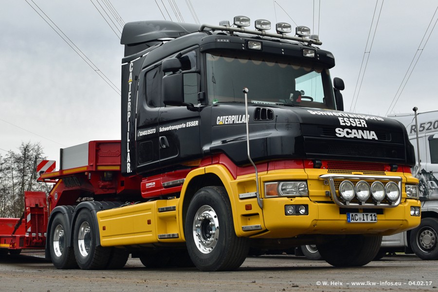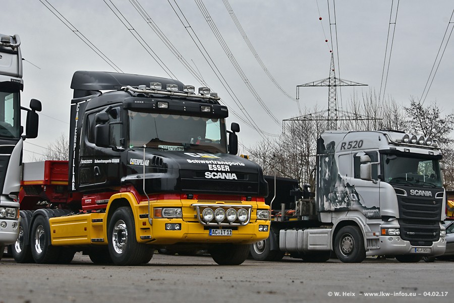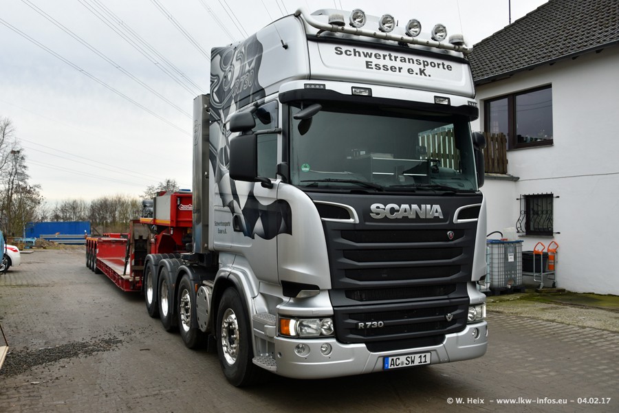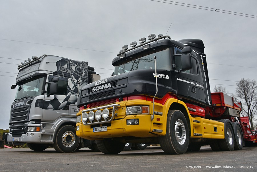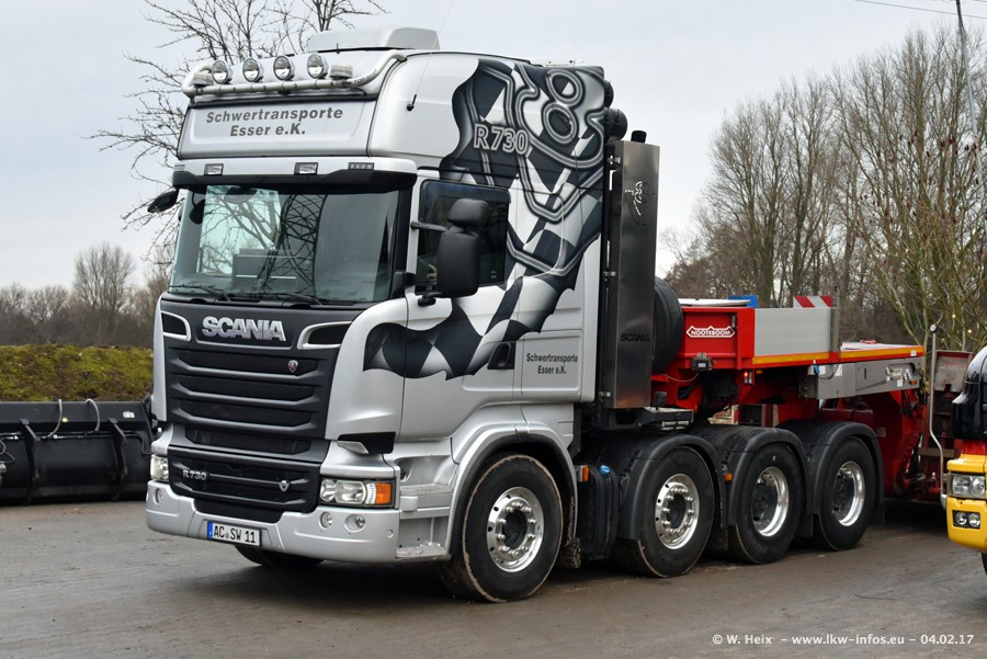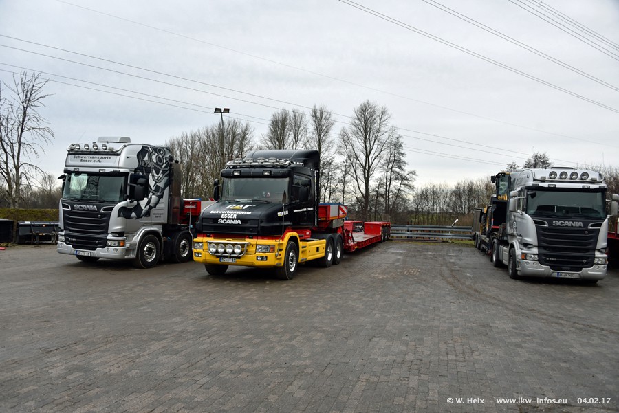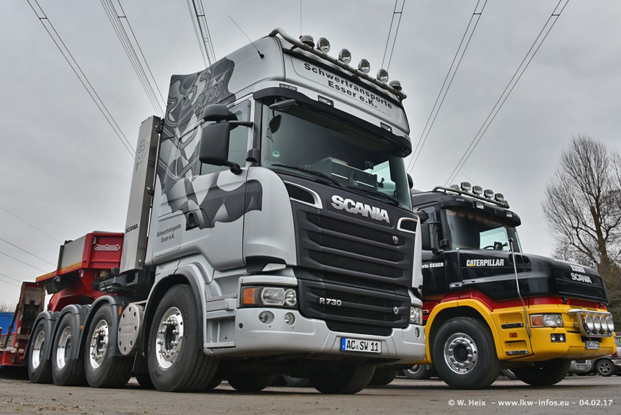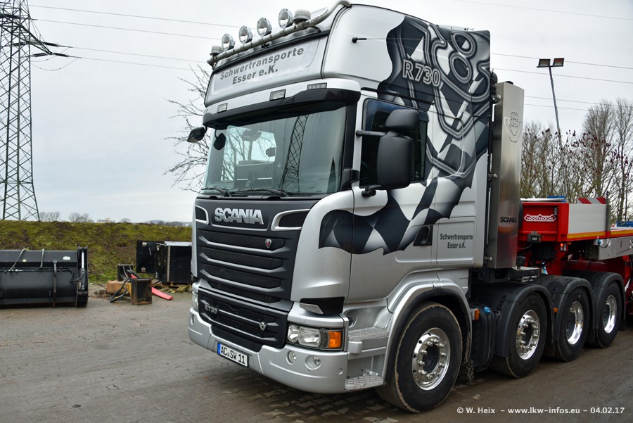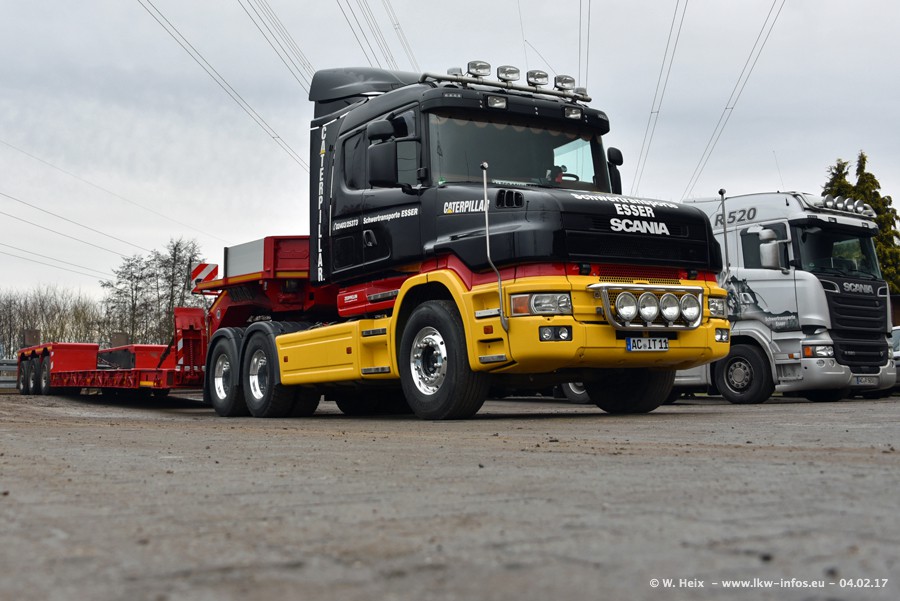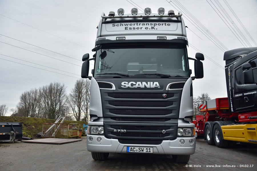 Dies war mein erster Besuch bei der Firma Esser Schwertransporte in Würselen. Der Furhpark besteht aus 7 LKW: 1 DAF, 2 Volvo 4 Scania. Leider waren ein Scania und der Volvo FH16 750 10x4 in der Werkstatt. Bilder vom Volvo gibt es aber im Teil 2 zu sehen und nach dem nächsten Besuch bei Esser... Der Scania T 164 G 580 V8 ist Baujahr 2001 und wurde komplett neu aufgebaut (innen und außen). Dieser LKW wird noch regelmässig eingesetzt und nicht verkauft!