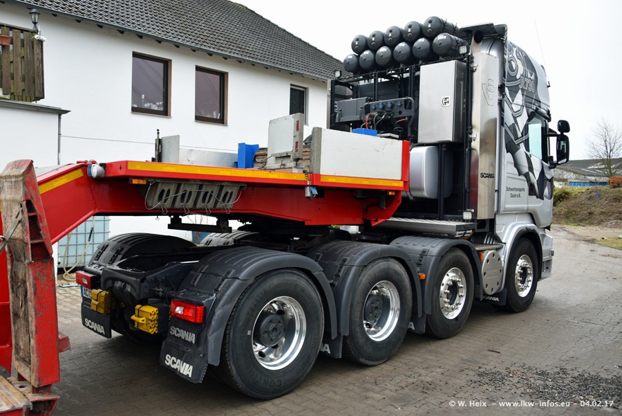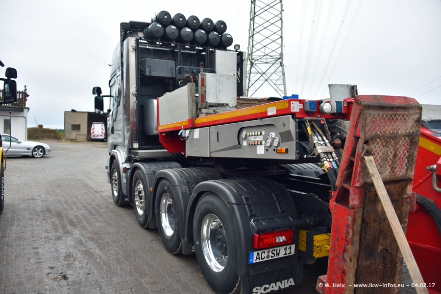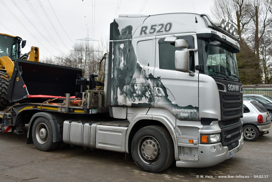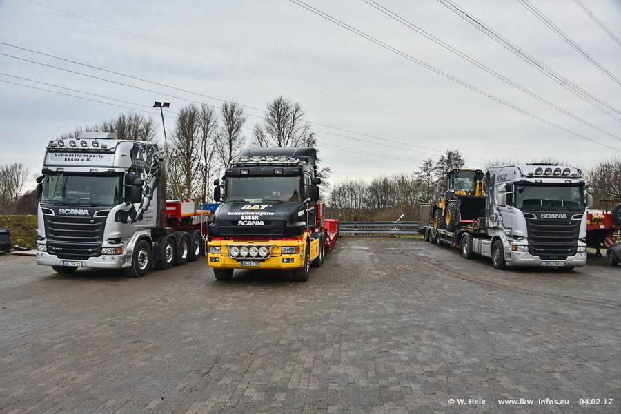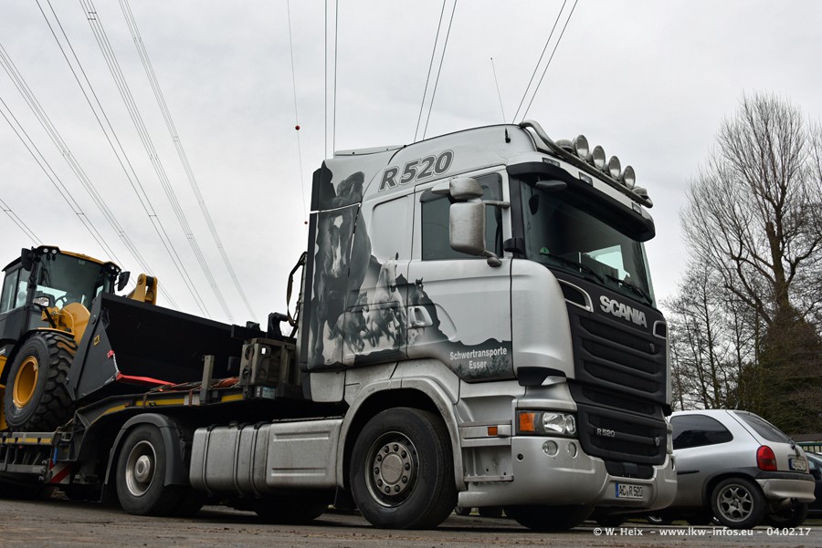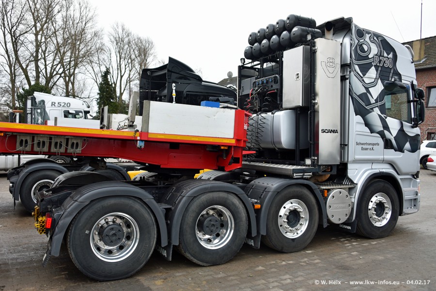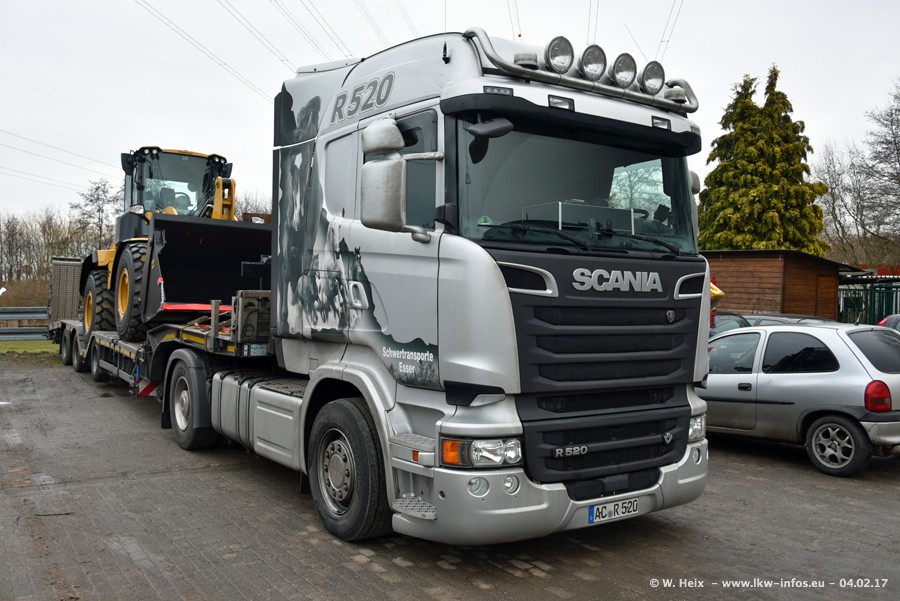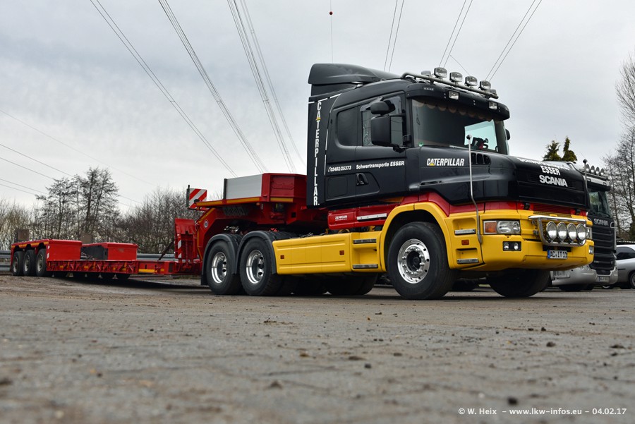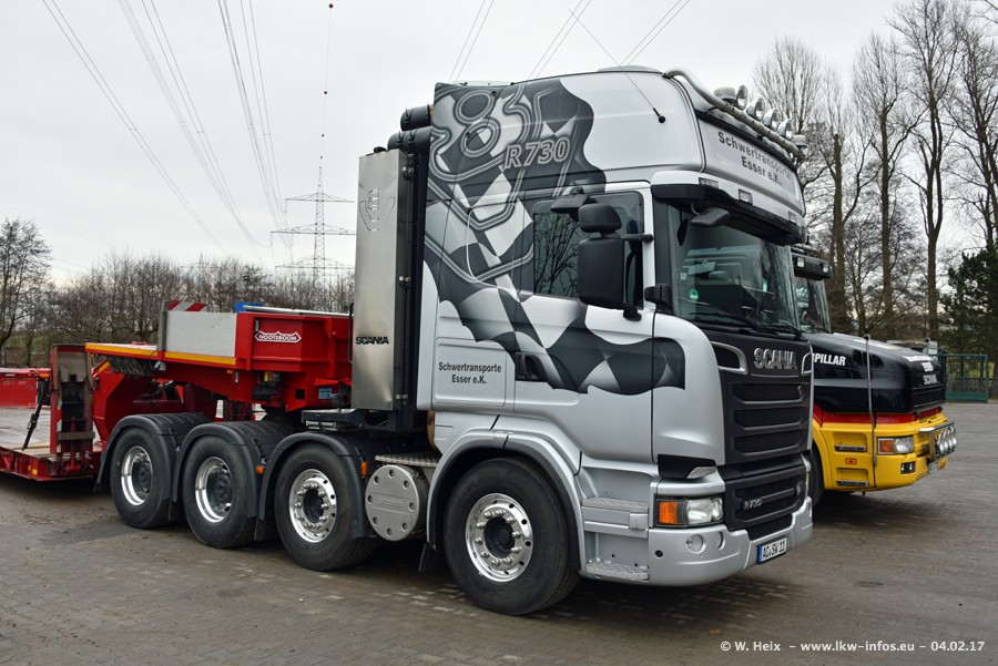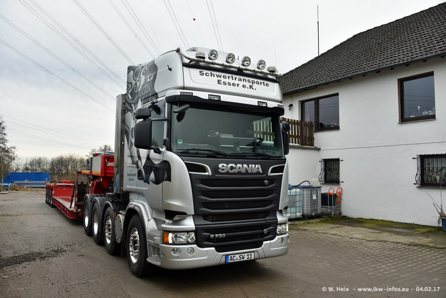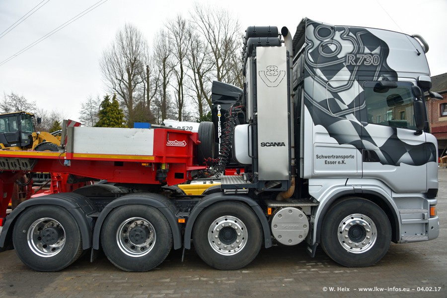 Dies war mein erster Besuch bei der Firma Esser Schwertransporte in Würselen. Der Furhpark besteht aus 7 LKW: 1 DAF, 2 Volvo 4 Scania. Leider waren ein Scania und der Volvo FH16 750 10x4 in der Werkstatt. Bilder vom Volvo gibt es aber im Teil 2 zu sehen und nach dem nächsten Besuch bei Esser... Der Scania T 164 G 580 V8 ist Baujahr 2001 und wurde komplett neu aufgebaut (innen und außen). Dieser LKW wird noch regelmässig eingesetzt und nicht verkauft!