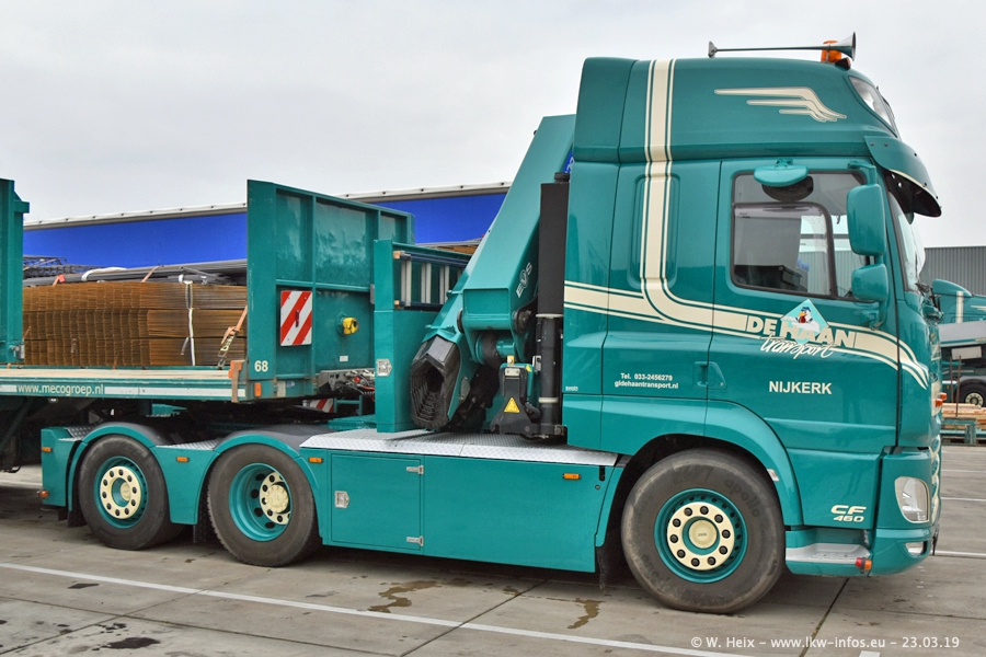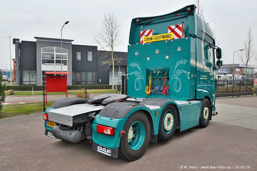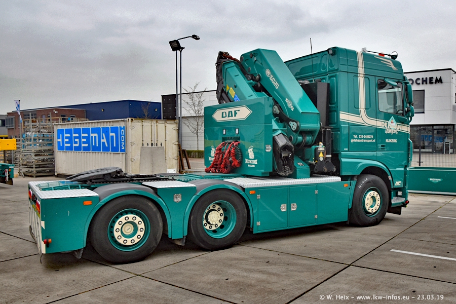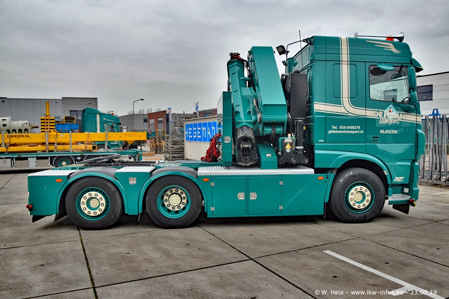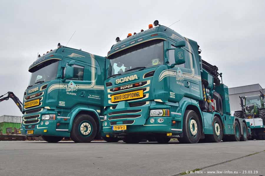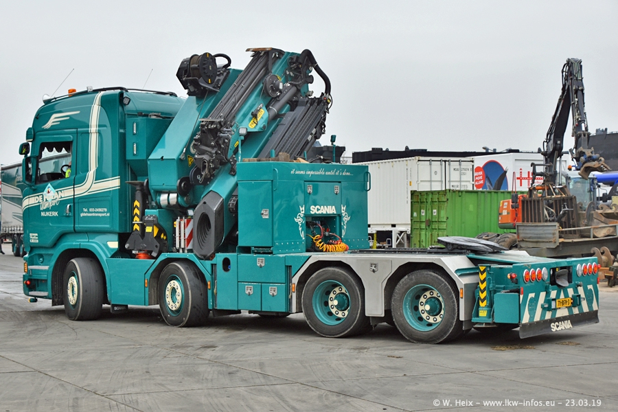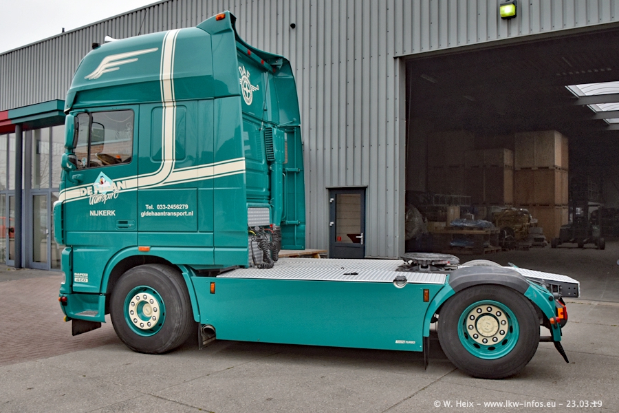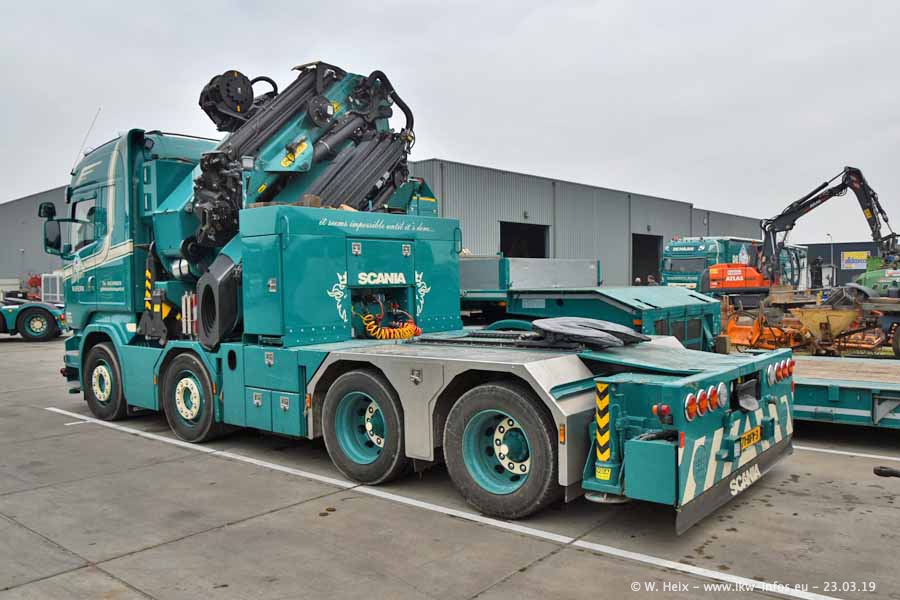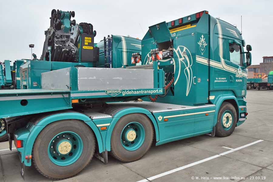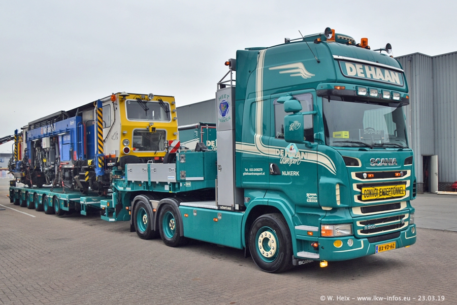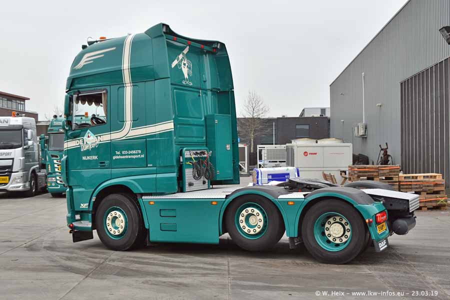 Mein erster Besuch bei der Firma de Haan war im Januar 2016. Inzwischen sind also über 3 Jahre vergangen und es hat sich viel verändert. Gab es 2013 noch einige Fahrzeuge im Design der Firma van Maanen, deren Spezialtansport-Bereich nach der Insolvenz von van Maanen übernommen wurde, sind diese weitgehend raus aus dem Fuhrpark. Einige wenige, wie z.B. der Scania R 500 V8 8x4 wurden damals unlackiert und sind noch vorhanden. Es gibt seit Mitte 2018 die ersten SCANIA R 410 NextGen und viele neue DAF XF Euro 6.