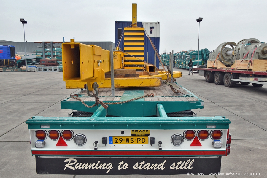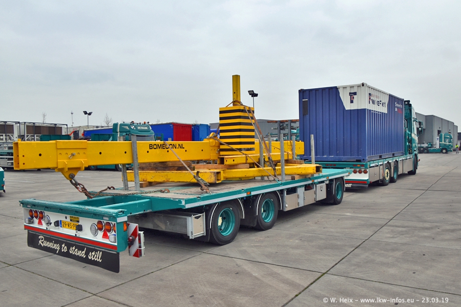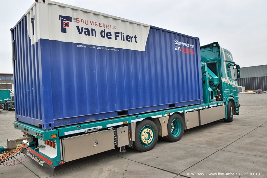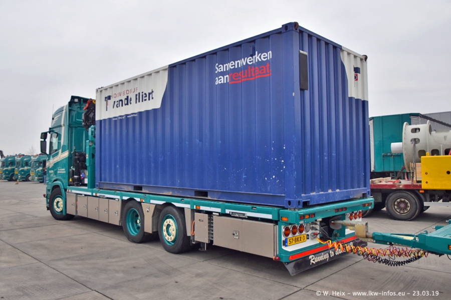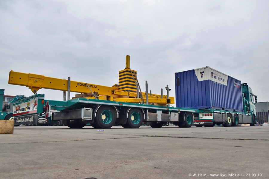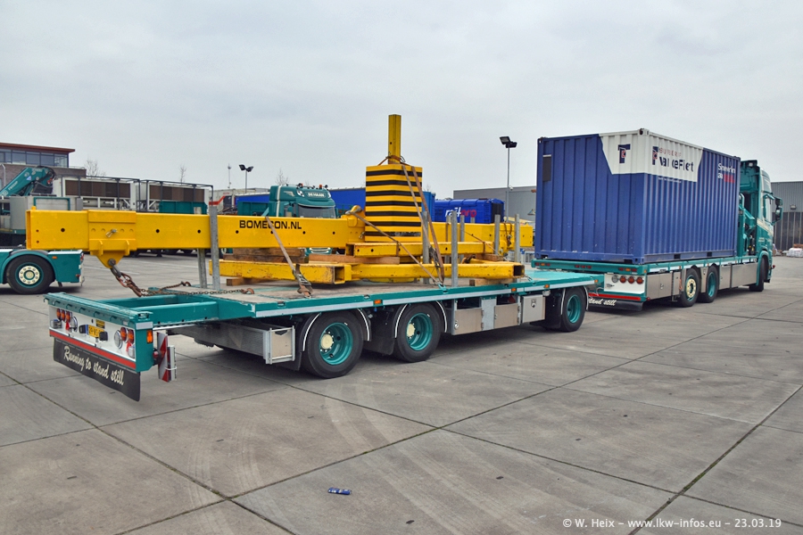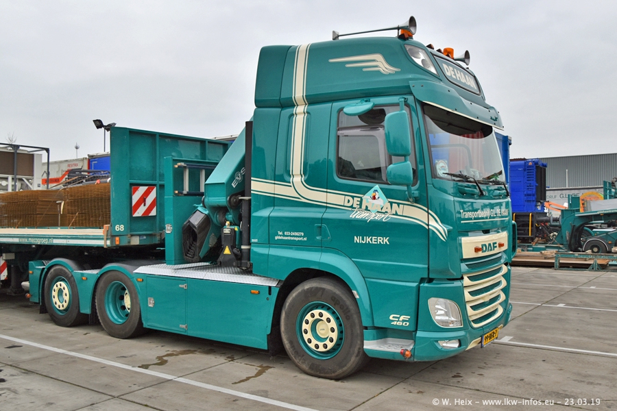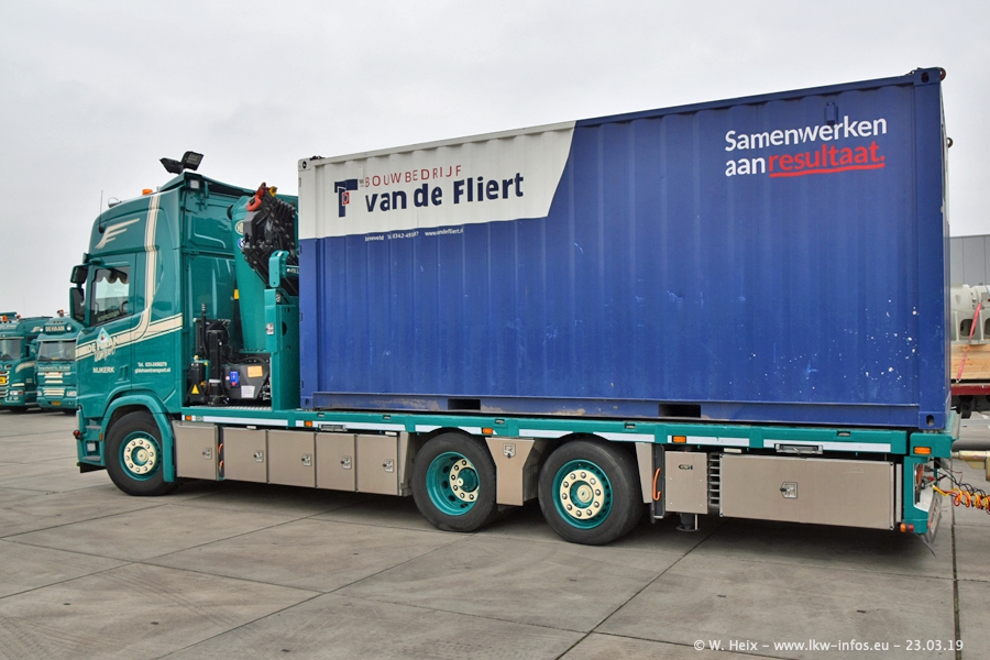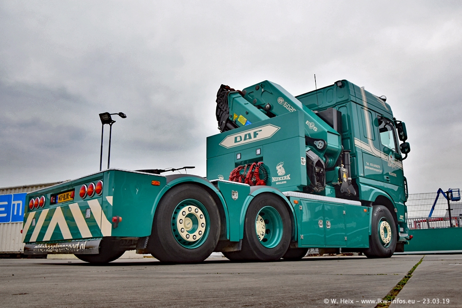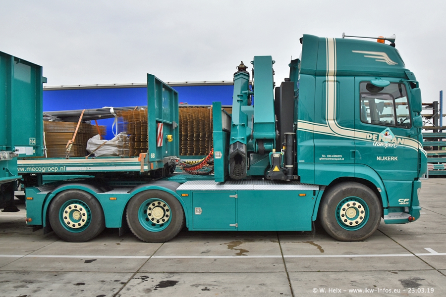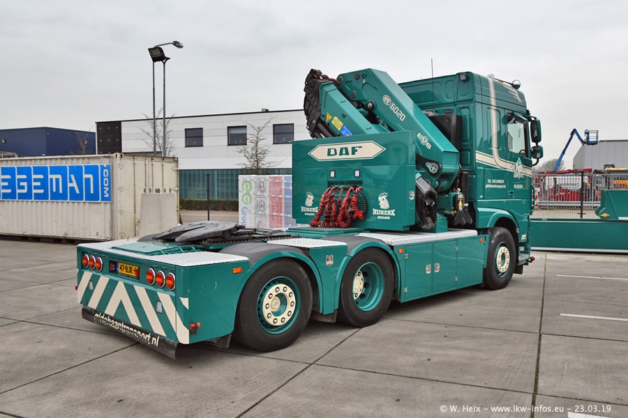 Mein erster Besuch bei der Firma de Haan war im Januar 2016. Inzwischen sind also über 3 Jahre vergangen und es hat sich viel verändert. Gab es 2013 noch einige Fahrzeuge im Design der Firma van Maanen, deren Spezialtansport-Bereich nach der Insolvenz von van Maanen übernommen wurde, sind diese weitgehend raus aus dem Fuhrpark. Einige wenige, wie z.B. der Scania R 500 V8 8x4 wurden damals unlackiert und sind noch vorhanden. Es gibt seit Mitte 2018 die ersten SCANIA R 410 NextGen und viele neue DAF XF Euro 6.