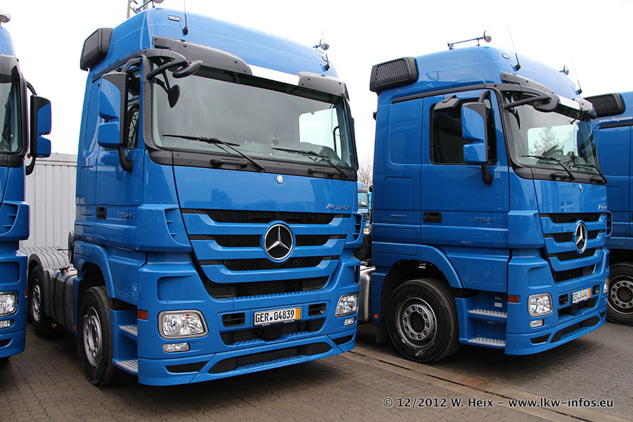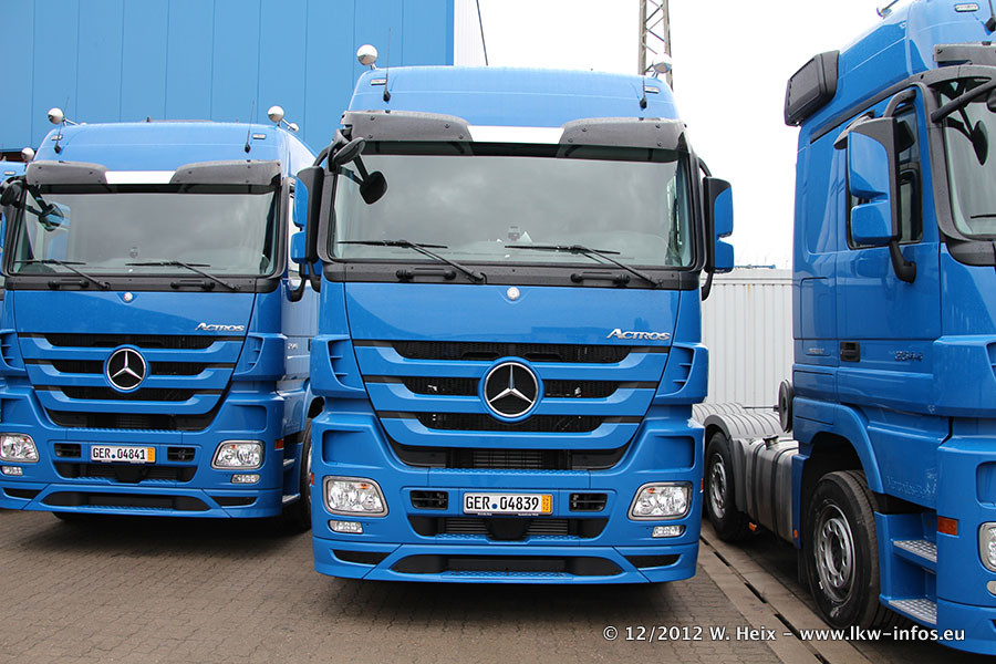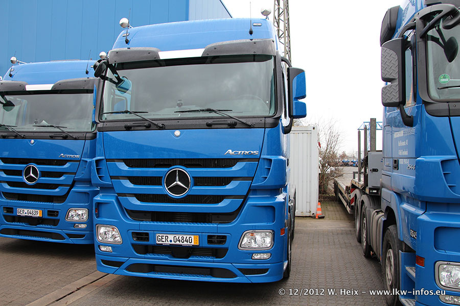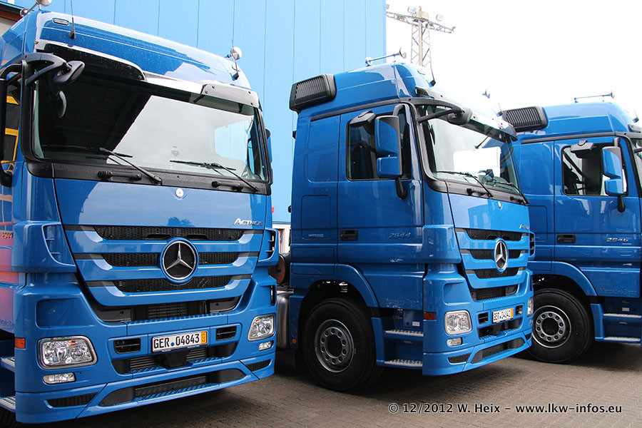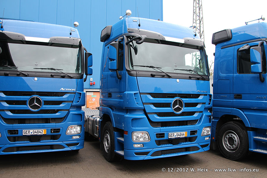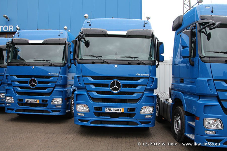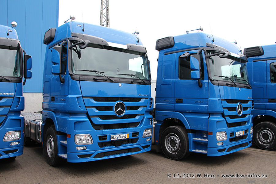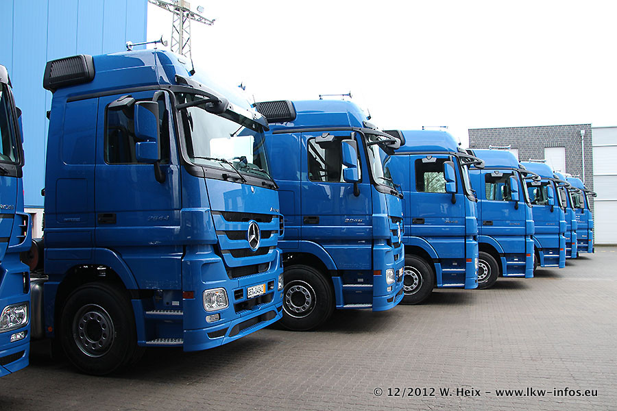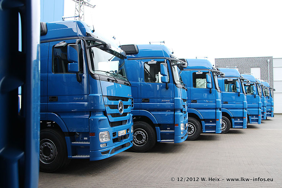 Vorgestern sind sechs neue MB Actros 3 (2544 und 2646) im Werk in Wörth abgeholt worden. Diese ersetzen ab Januar 2013 einige ältere Zugmaschinen.