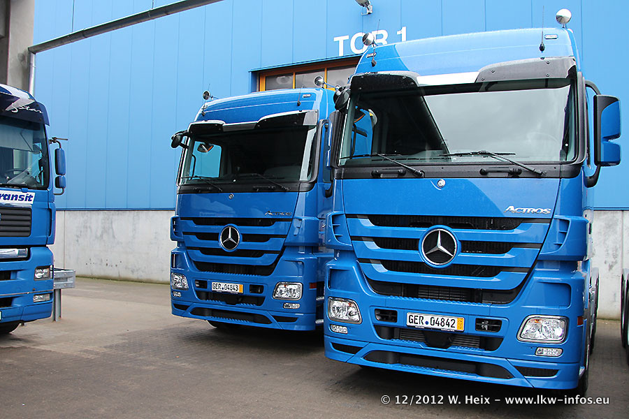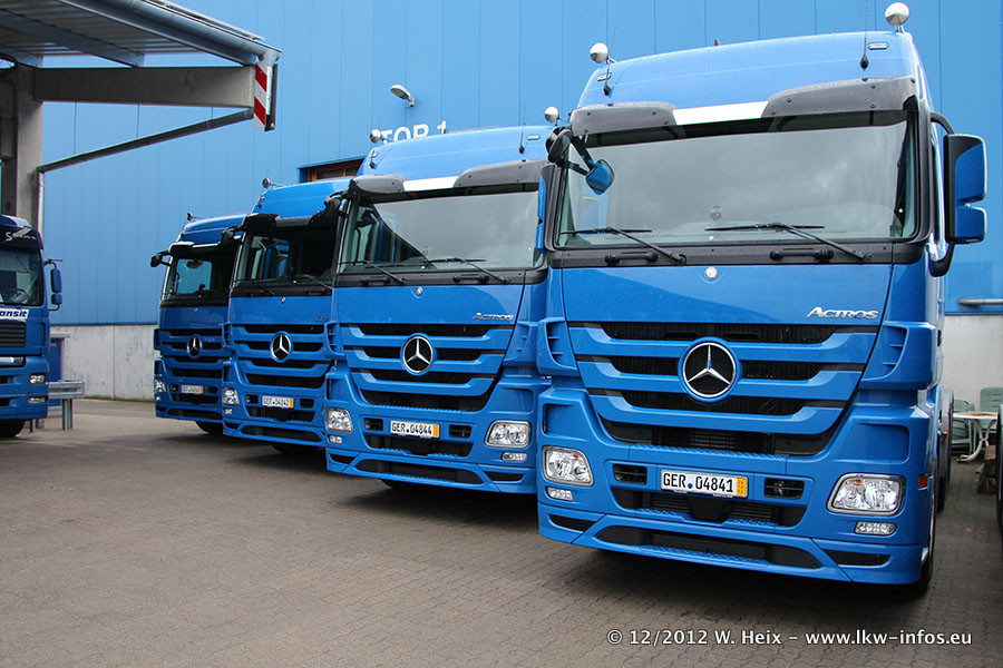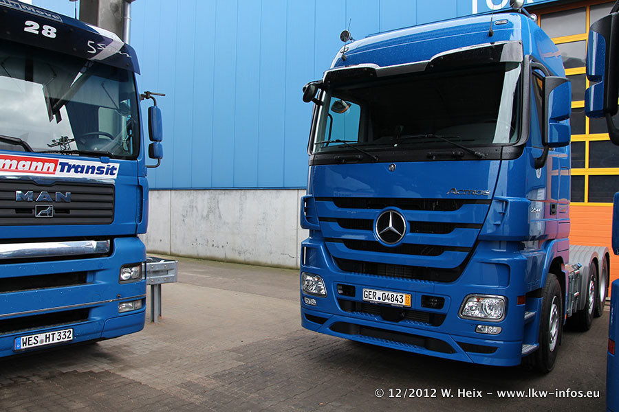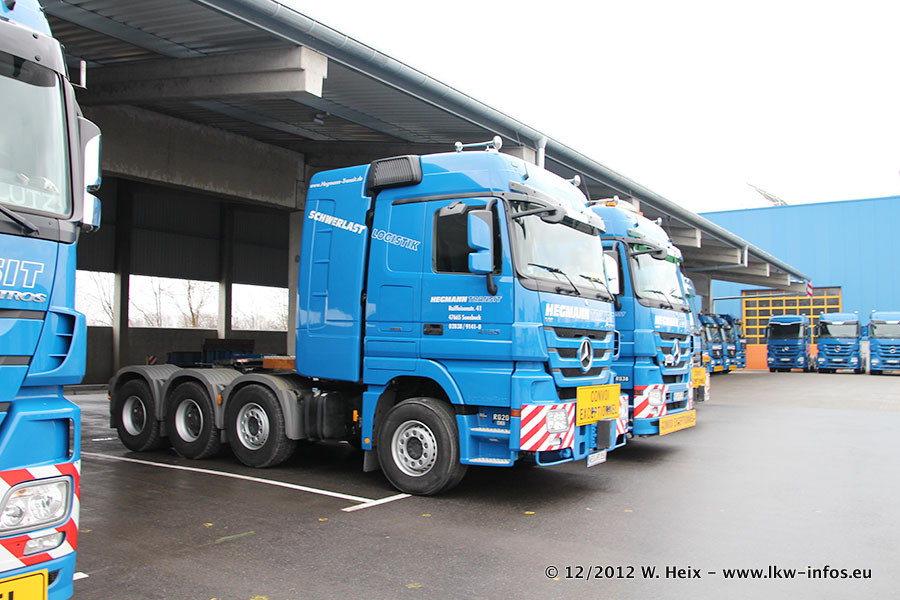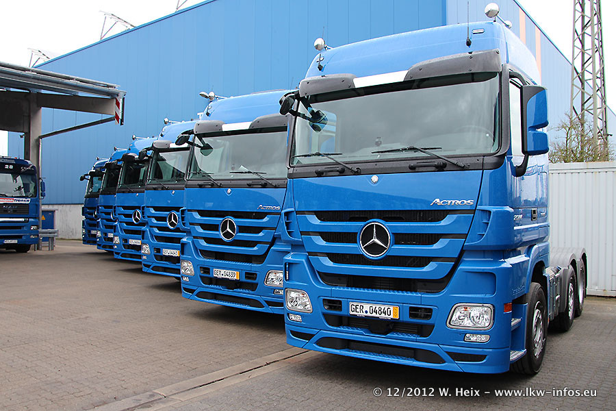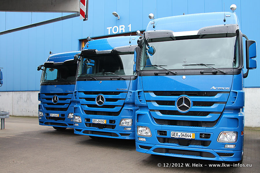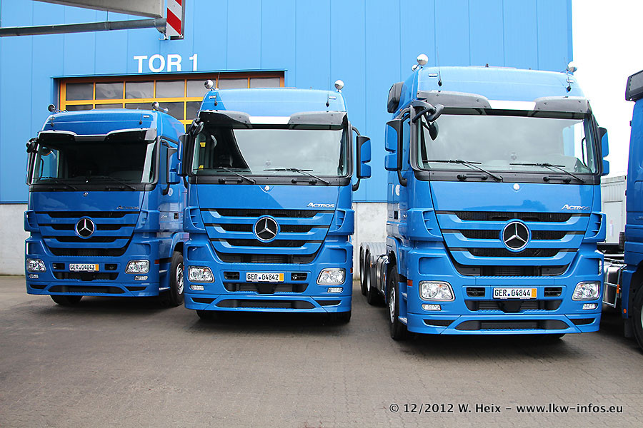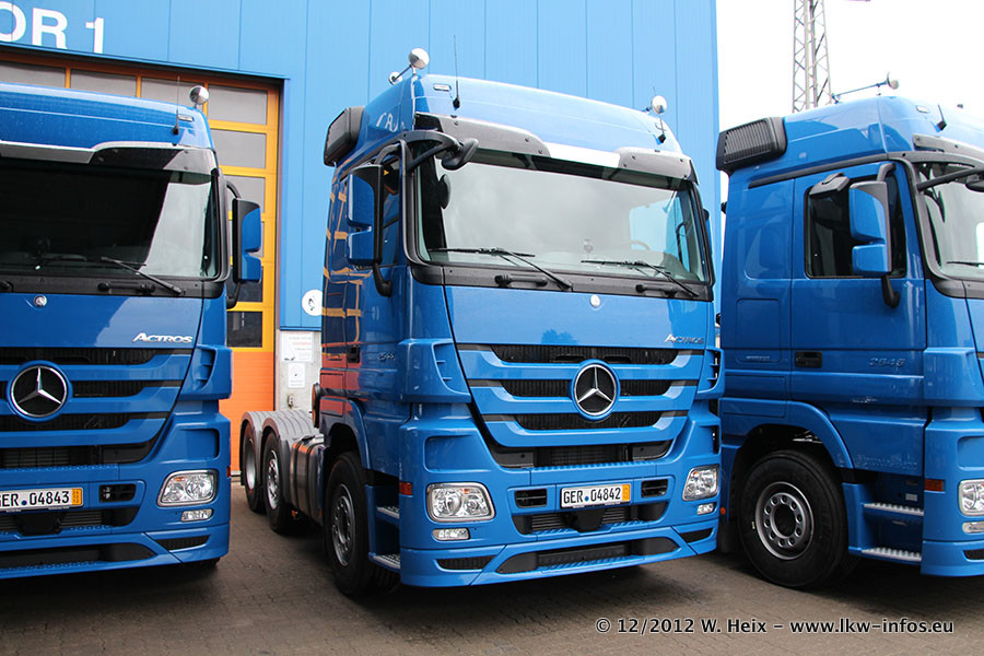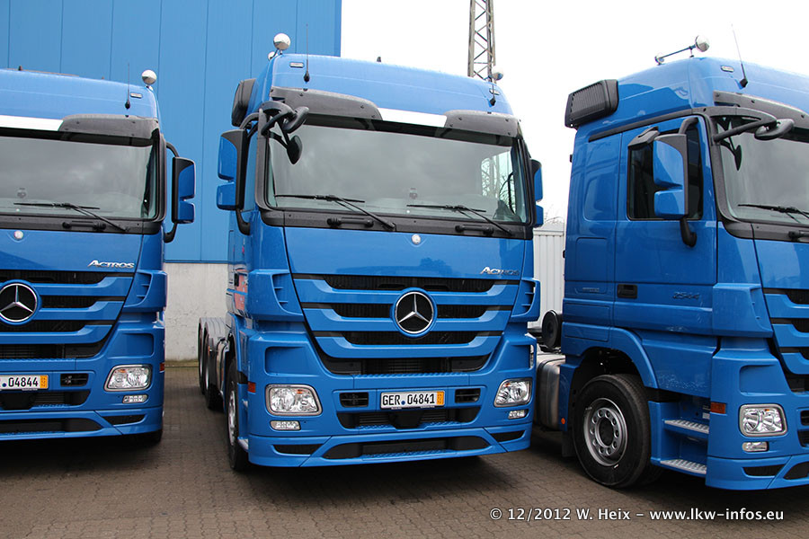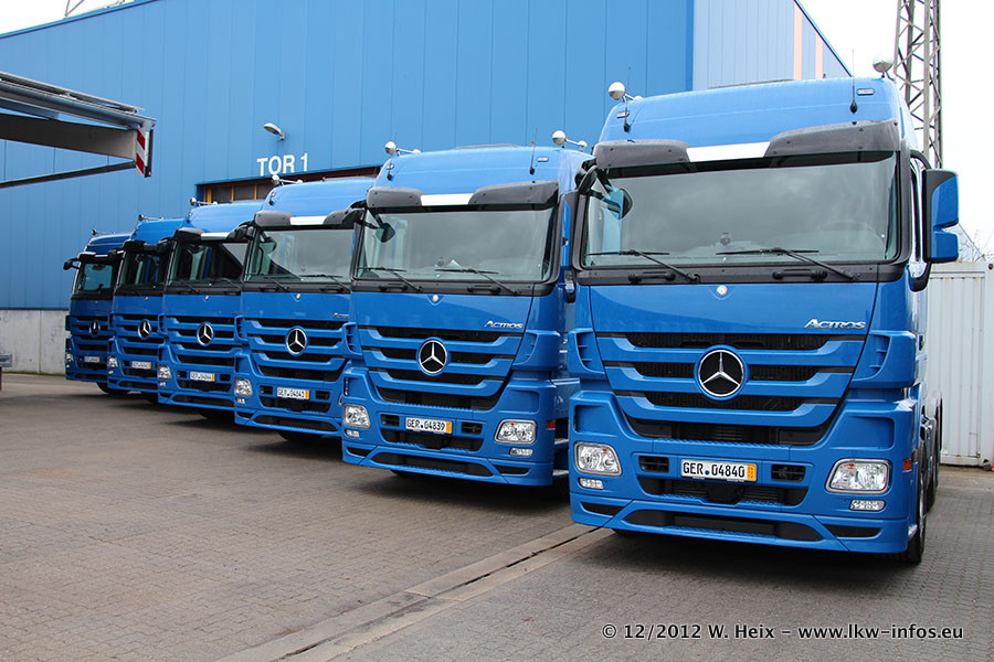 Vorgestern sind sechs neue MB Actros 3 (2544 und 2646) im Werk in Wörth abgeholt worden. Diese ersetzen ab Januar 2013 einige ältere Zugmaschinen.