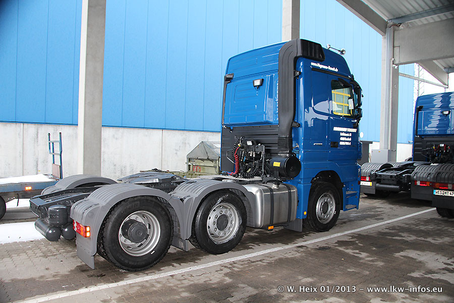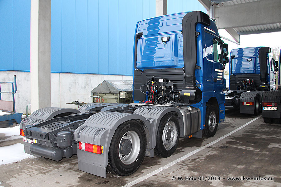 Die neuen MB Actros 3 Zugmaschinen sind fertig beschriftet. In Kürze werden diese dann eingesetzt. Die beiden MB Actros MP2 1844 sind bereits verkauft und zwei weitere Actros MP2 werden in den nächsten Tagen den Fuhrpark verlassen. Die Bilder in der Galerie zeigen außerdem einige schöne Transport-Kombinationen.