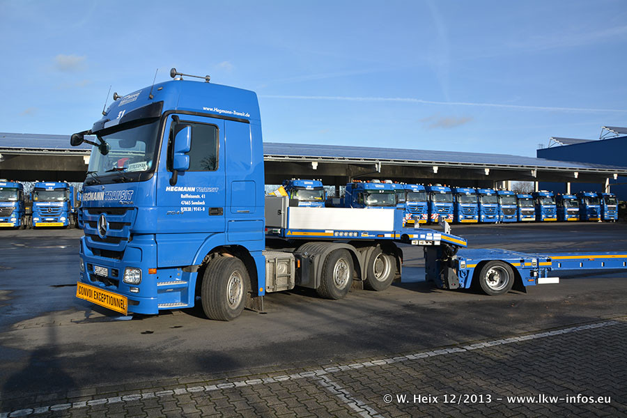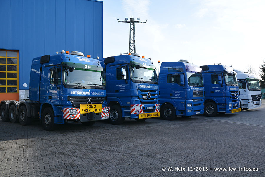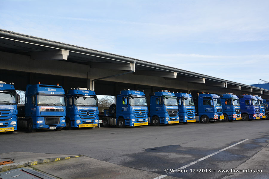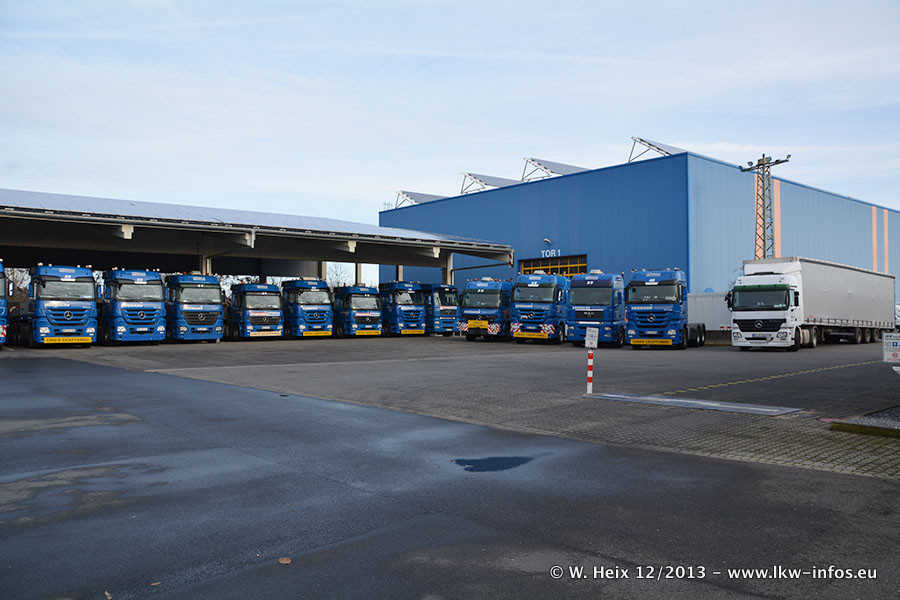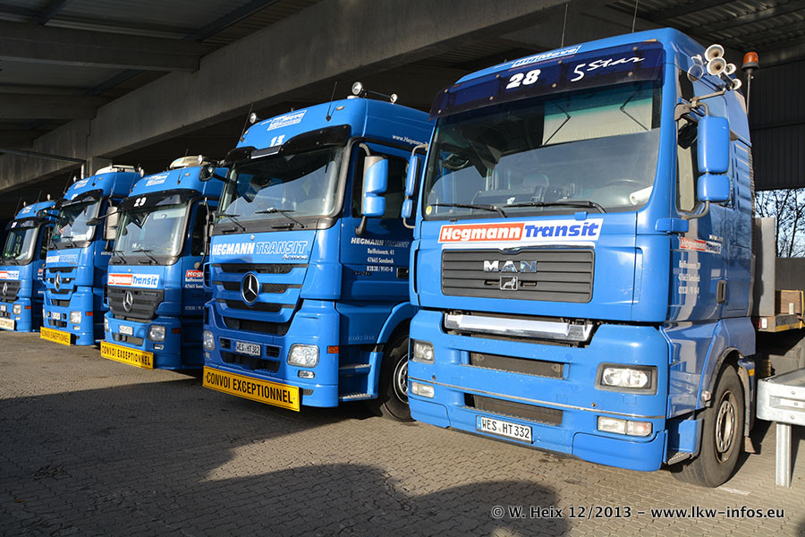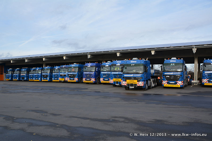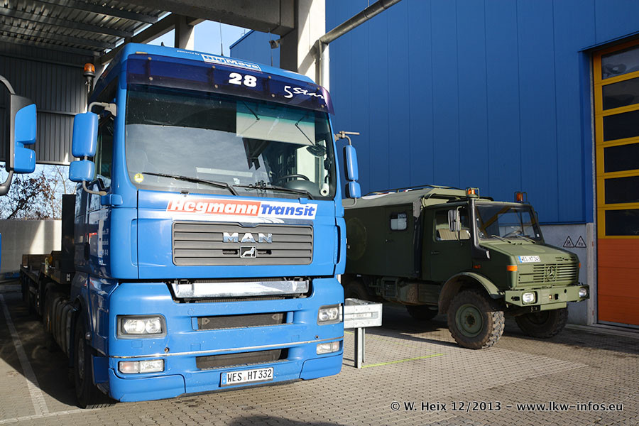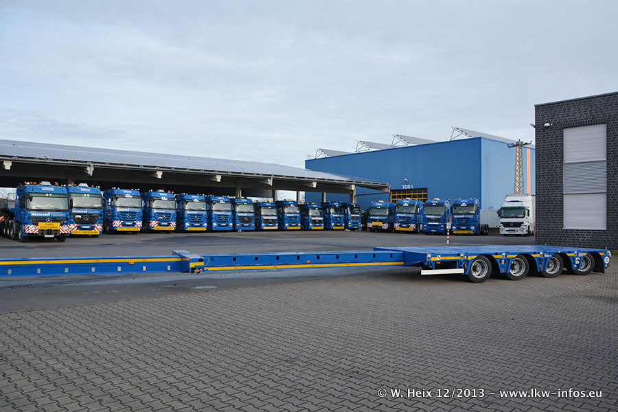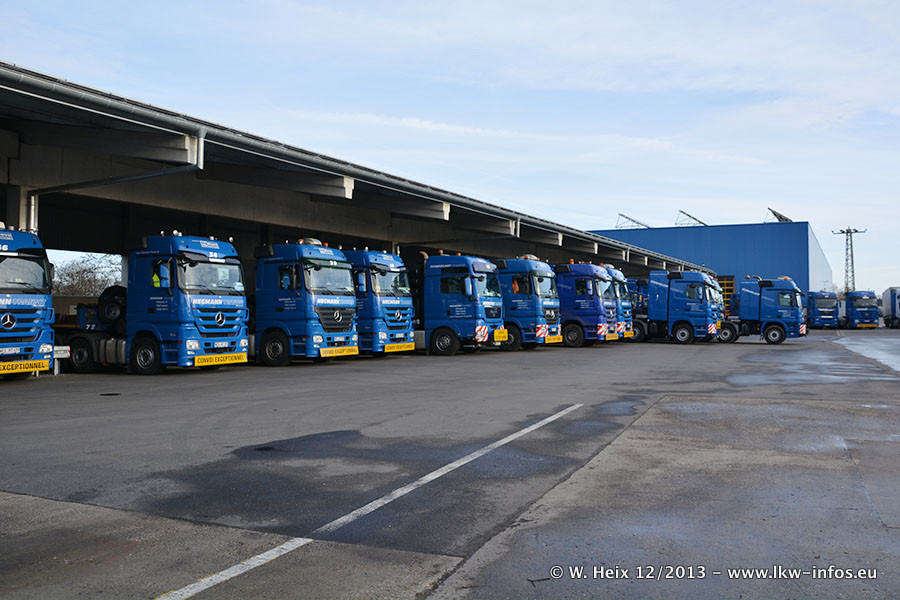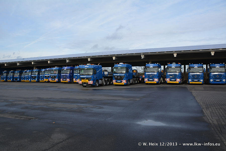 Am 20.12. sind noch zwei neue Auflieger von Doll aus der Panther-Baureihe gekommen. Allerdings konnte ich nur einen davon fotografieren, da der andere in einer der Hallen stand. Die Bilder zeigen den fast kompletten Fuhrpark, der inzwischen aus 34 Zugmaschinen besteht. Lediglich ein LKW war in der Werkstatt und nicht auf dem Hof. Neu ist auch die gebraucht gekaufte Zugmaschine von Bollnäs inkl. einiger Schwerlastanhänger. Das Fahrzeug, das sonst nur in Häfen oder großen Industriebetrieben zu finden ist, wird für interne Transporte auf dem Firmenhof gebraucht. Der weiße MB Actros MP2 1941 wird auch erstmals gezeigt. Diese gebraucht gekaufte Zugmaschine ist seit über einem Jahr im Fuhrpark aber normalerweise eben nie auf dem Hof. Der zuletzt gekaufte MB Actros 3 4160 SLT ist inzwischen angemeldet und trägt jetzt die Nr. 44. Der MAN TGA 41.530 mit der Nr. 35 bleibt im Fuhrpark. Dieser sollte eigentlich durch den neuen Actros SLT ersetzt werden.