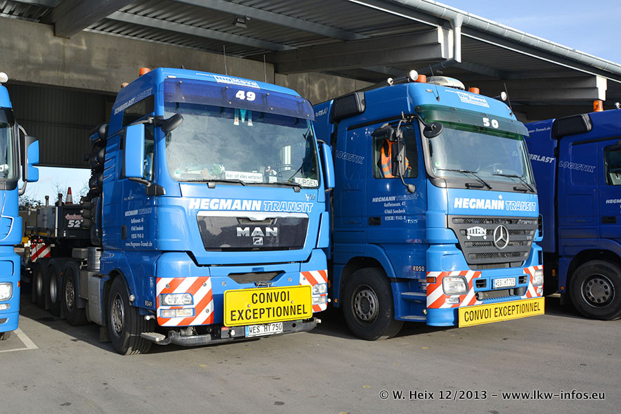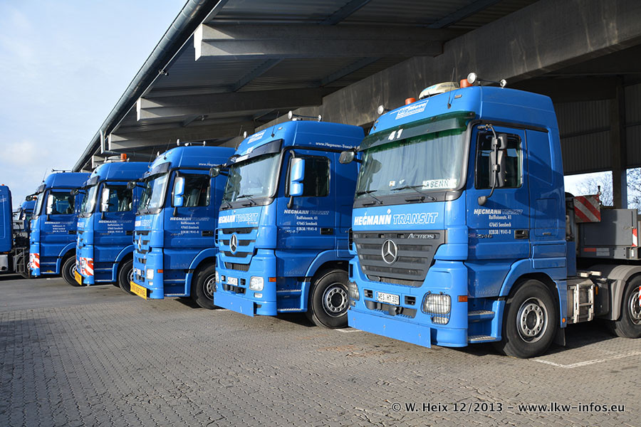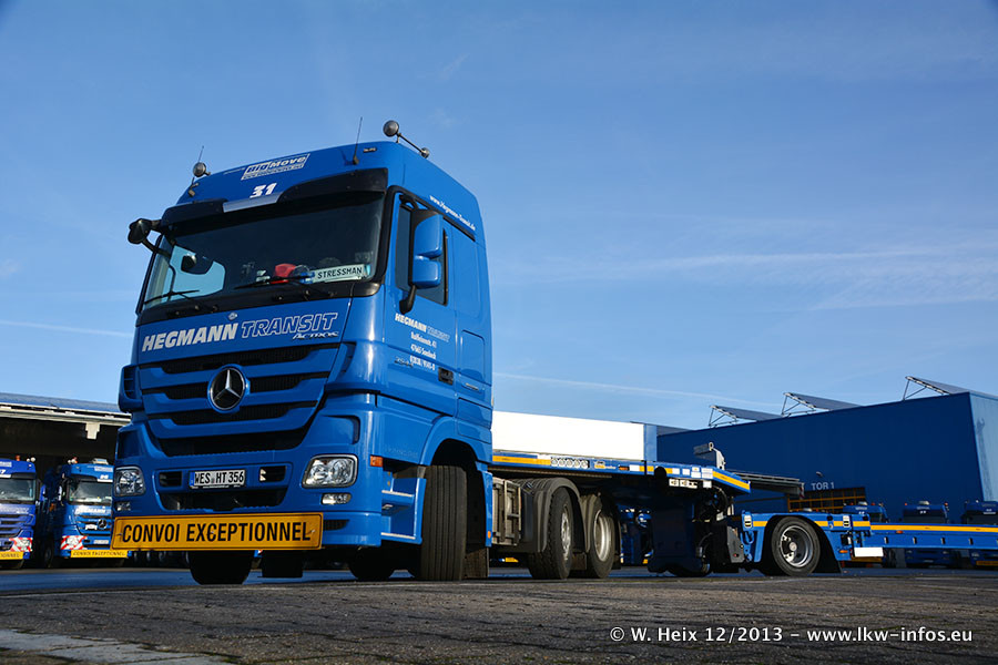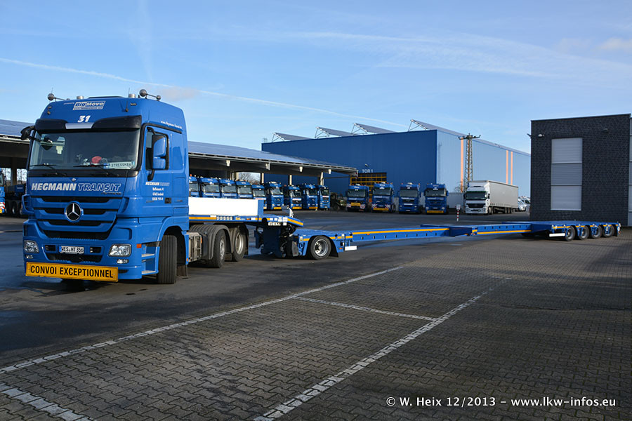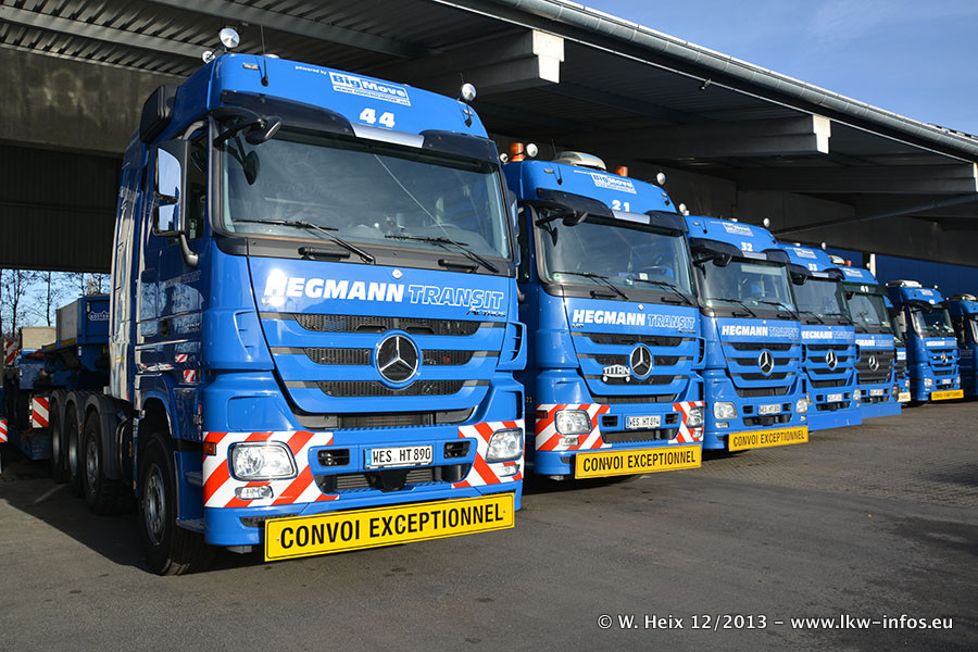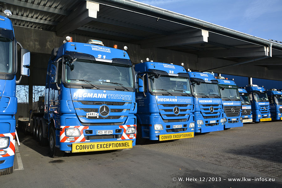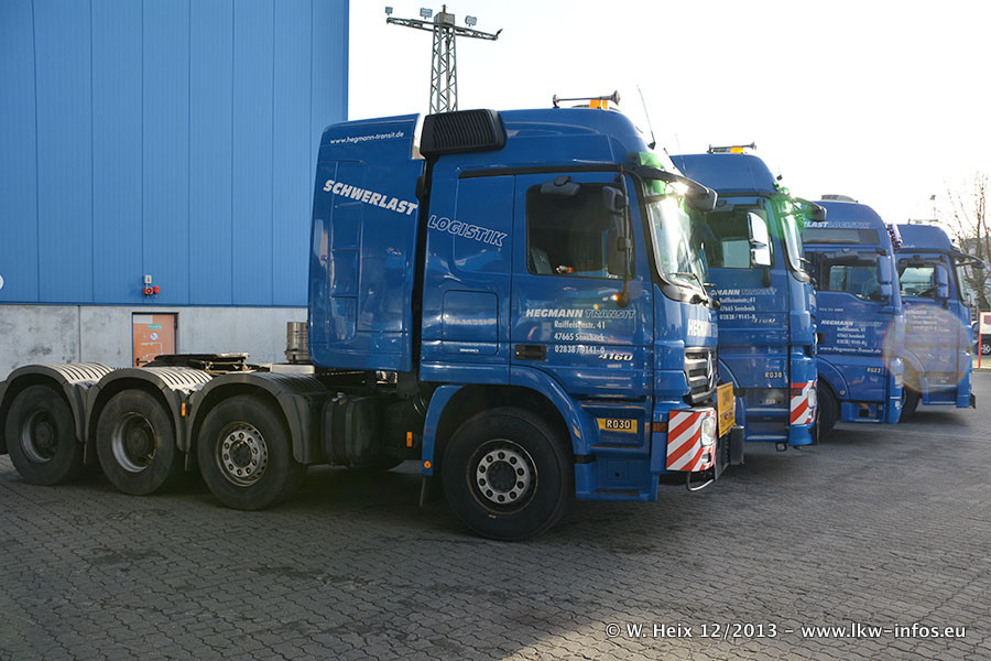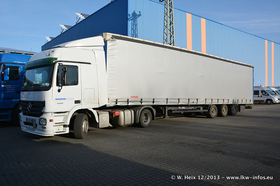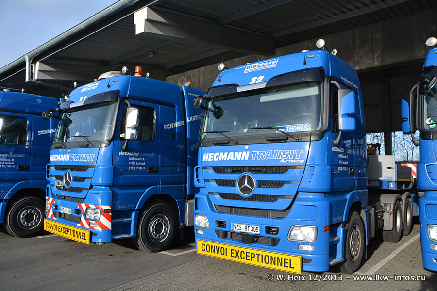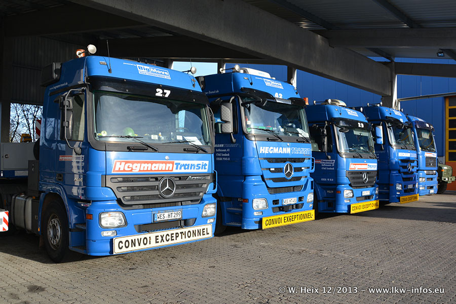 Am 20.12. sind noch zwei neue Auflieger von Doll aus der Panther-Baureihe gekommen. Allerdings konnte ich nur einen davon fotografieren, da der andere in einer der Hallen stand. Die Bilder zeigen den fast kompletten Fuhrpark, der inzwischen aus 34 Zugmaschinen besteht. Lediglich ein LKW war in der Werkstatt und nicht auf dem Hof. Neu ist auch die gebraucht gekaufte Zugmaschine von Bollnäs inkl. einiger Schwerlastanhänger. Das Fahrzeug, das sonst nur in Häfen oder großen Industriebetrieben zu finden ist, wird für interne Transporte auf dem Firmenhof gebraucht. Der weiße MB Actros MP2 1941 wird auch erstmals gezeigt. Diese gebraucht gekaufte Zugmaschine ist seit über einem Jahr im Fuhrpark aber normalerweise eben nie auf dem Hof. Der zuletzt gekaufte MB Actros 3 4160 SLT ist inzwischen angemeldet und trägt jetzt die Nr. 44. Der MAN TGA 41.530 mit der Nr. 35 bleibt im Fuhrpark. Dieser sollte eigentlich durch den neuen Actros SLT ersetzt werden.