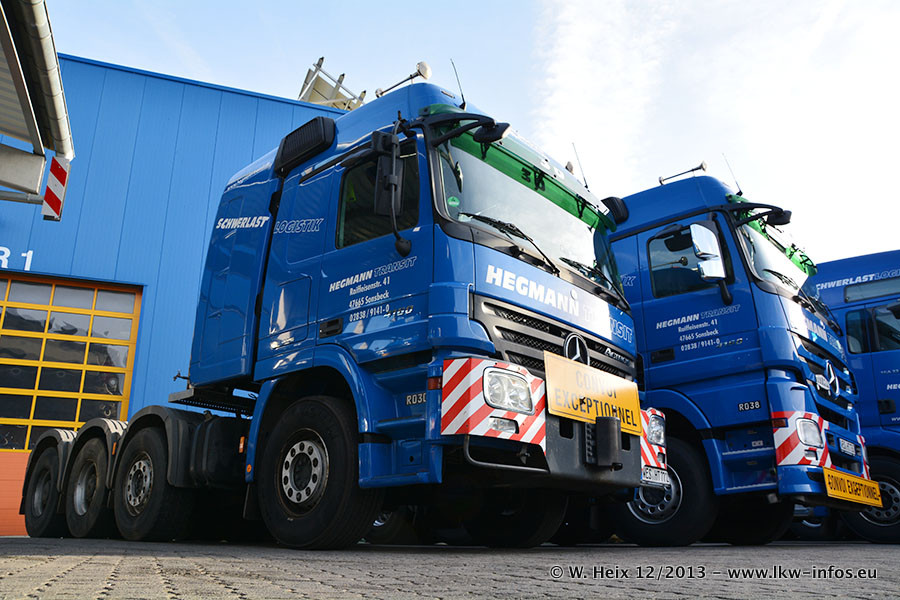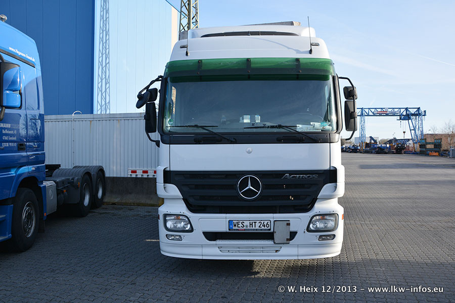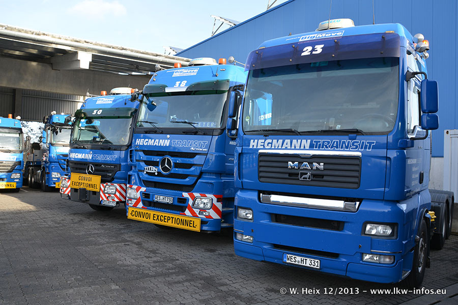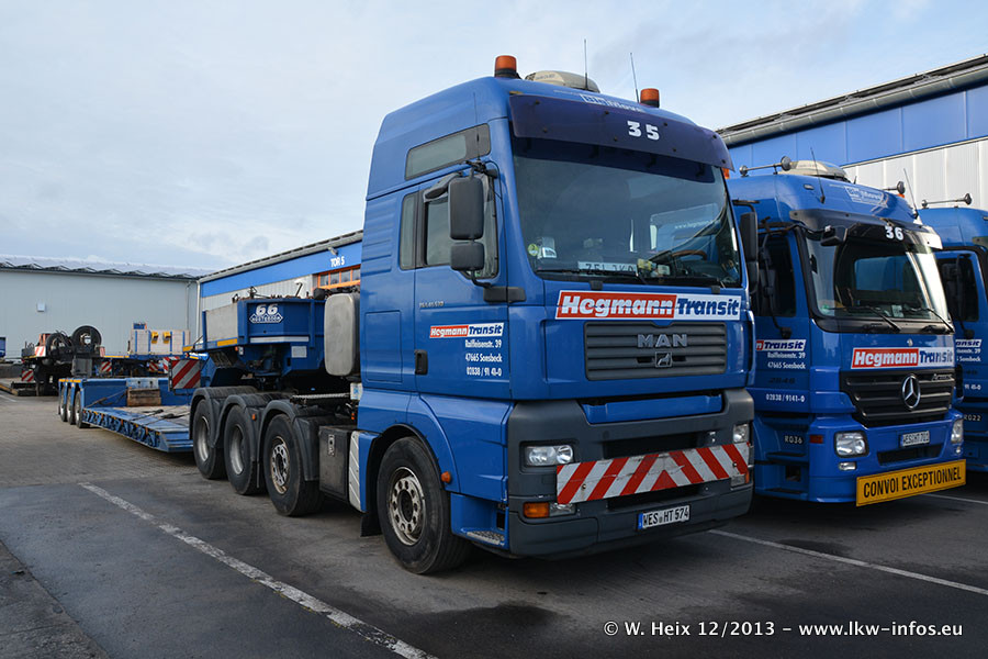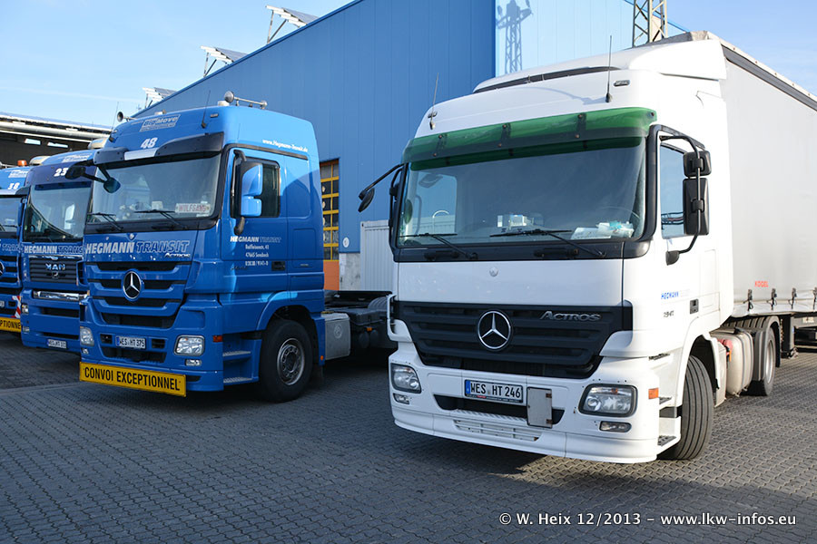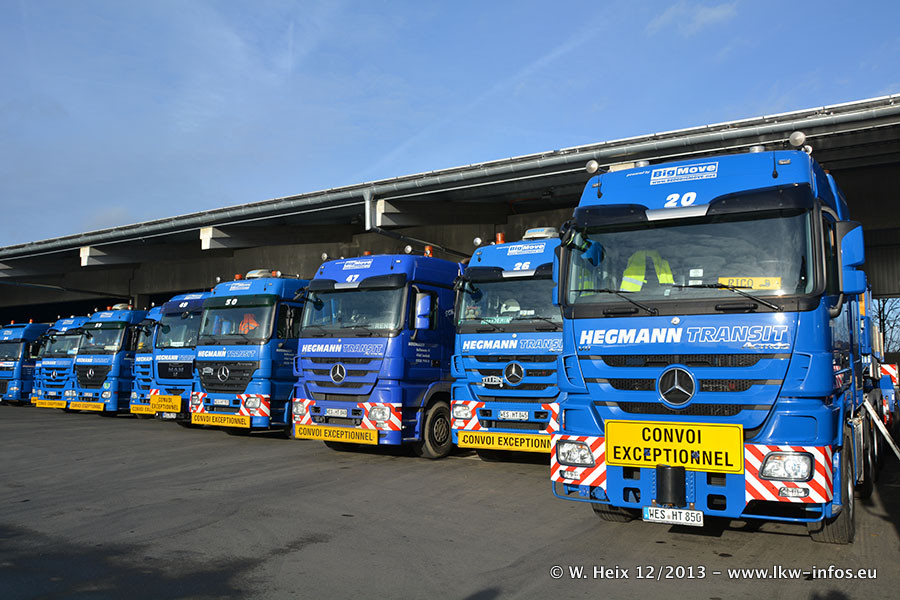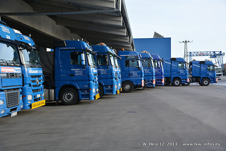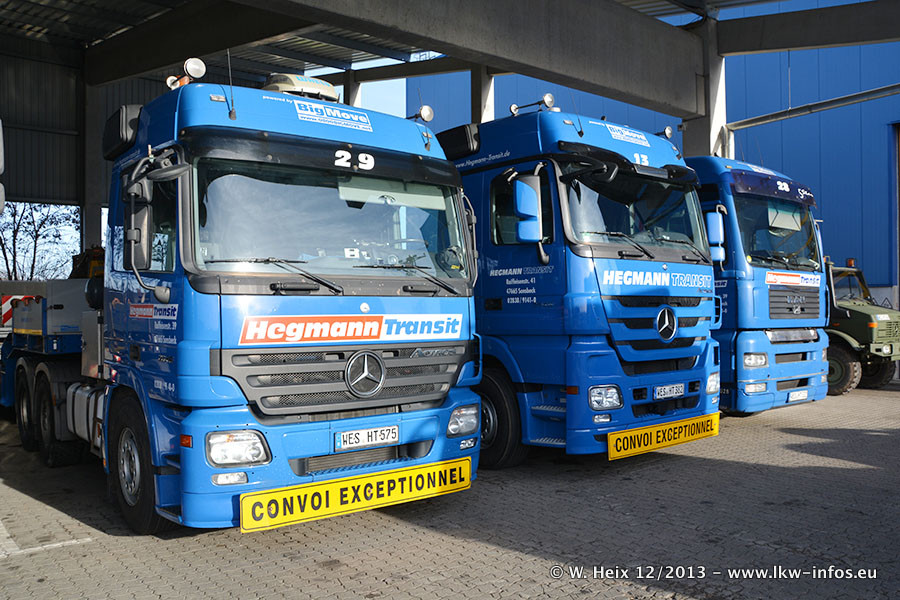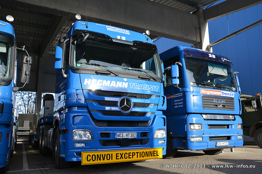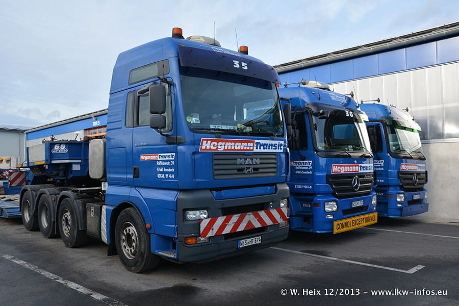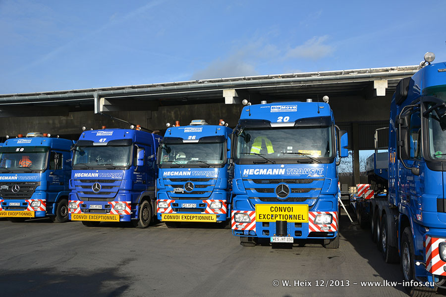 Am 20.12. sind noch zwei neue Auflieger von Doll aus der Panther-Baureihe gekommen. Allerdings konnte ich nur einen davon fotografieren, da der andere in einer der Hallen stand. Die Bilder zeigen den fast kompletten Fuhrpark, der inzwischen aus 34 Zugmaschinen besteht. Lediglich ein LKW war in der Werkstatt und nicht auf dem Hof. Neu ist auch die gebraucht gekaufte Zugmaschine von Bollnäs inkl. einiger Schwerlastanhänger. Das Fahrzeug, das sonst nur in Häfen oder großen Industriebetrieben zu finden ist, wird für interne Transporte auf dem Firmenhof gebraucht. Der weiße MB Actros MP2 1941 wird auch erstmals gezeigt. Diese gebraucht gekaufte Zugmaschine ist seit über einem Jahr im Fuhrpark aber normalerweise eben nie auf dem Hof. Der zuletzt gekaufte MB Actros 3 4160 SLT ist inzwischen angemeldet und trägt jetzt die Nr. 44. Der MAN TGA 41.530 mit der Nr. 35 bleibt im Fuhrpark. Dieser sollte eigentlich durch den neuen Actros SLT ersetzt werden.