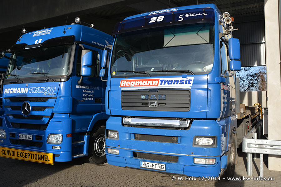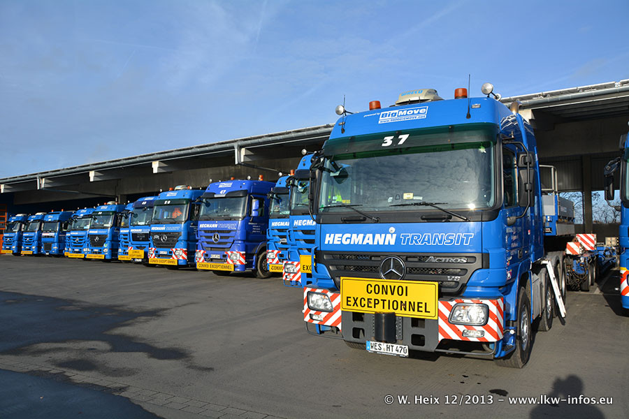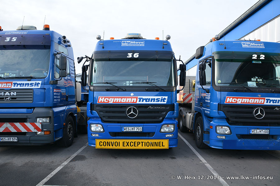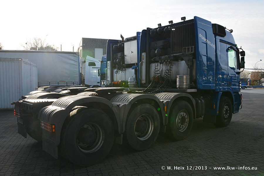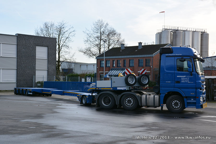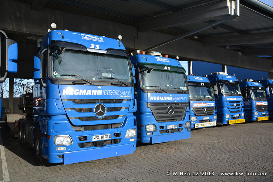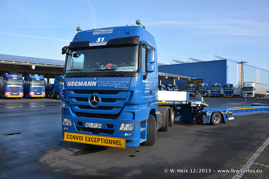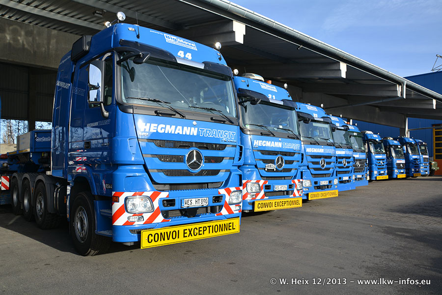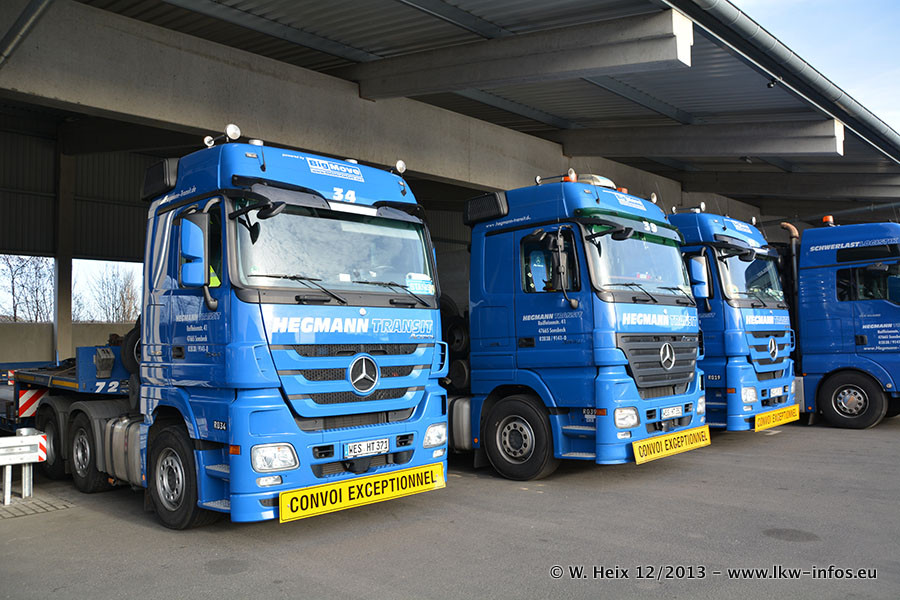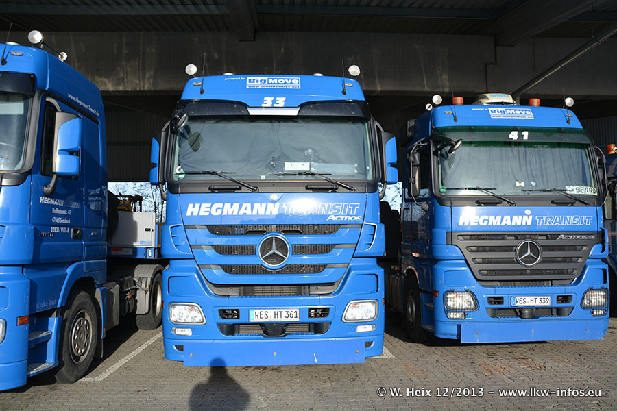 Am 20.12. sind noch zwei neue Auflieger von Doll aus der Panther-Baureihe gekommen. Allerdings konnte ich nur einen davon fotografieren, da der andere in einer der Hallen stand. Die Bilder zeigen den fast kompletten Fuhrpark, der inzwischen aus 34 Zugmaschinen besteht. Lediglich ein LKW war in der Werkstatt und nicht auf dem Hof. Neu ist auch die gebraucht gekaufte Zugmaschine von Bollnäs inkl. einiger Schwerlastanhänger. Das Fahrzeug, das sonst nur in Häfen oder großen Industriebetrieben zu finden ist, wird für interne Transporte auf dem Firmenhof gebraucht. Der weiße MB Actros MP2 1941 wird auch erstmals gezeigt. Diese gebraucht gekaufte Zugmaschine ist seit über einem Jahr im Fuhrpark aber normalerweise eben nie auf dem Hof. Der zuletzt gekaufte MB Actros 3 4160 SLT ist inzwischen angemeldet und trägt jetzt die Nr. 44. Der MAN TGA 41.530 mit der Nr. 35 bleibt im Fuhrpark. Dieser sollte eigentlich durch den neuen Actros SLT ersetzt werden.