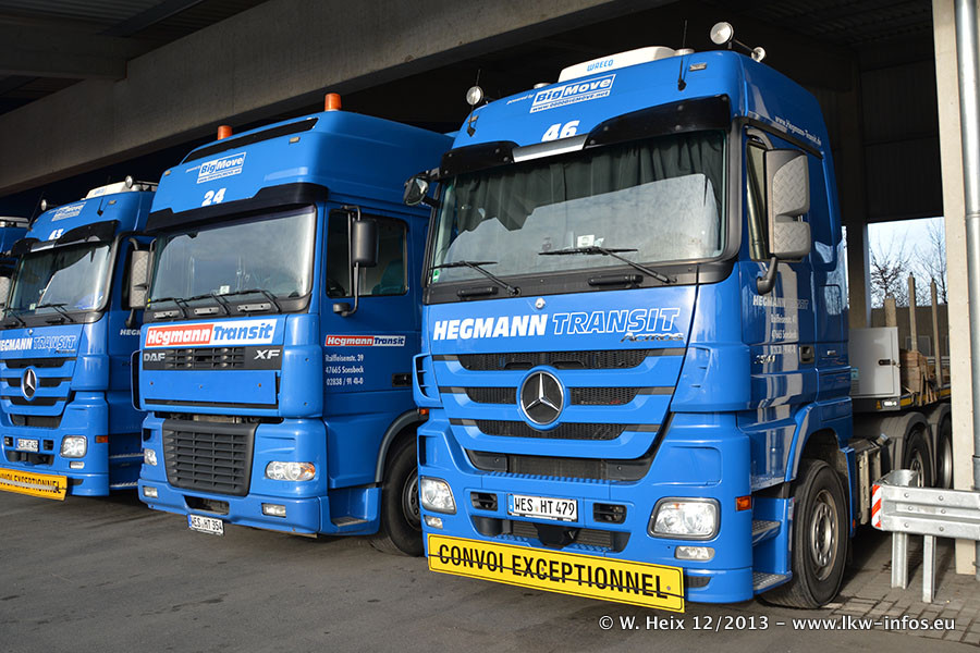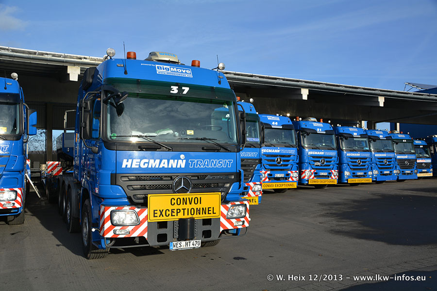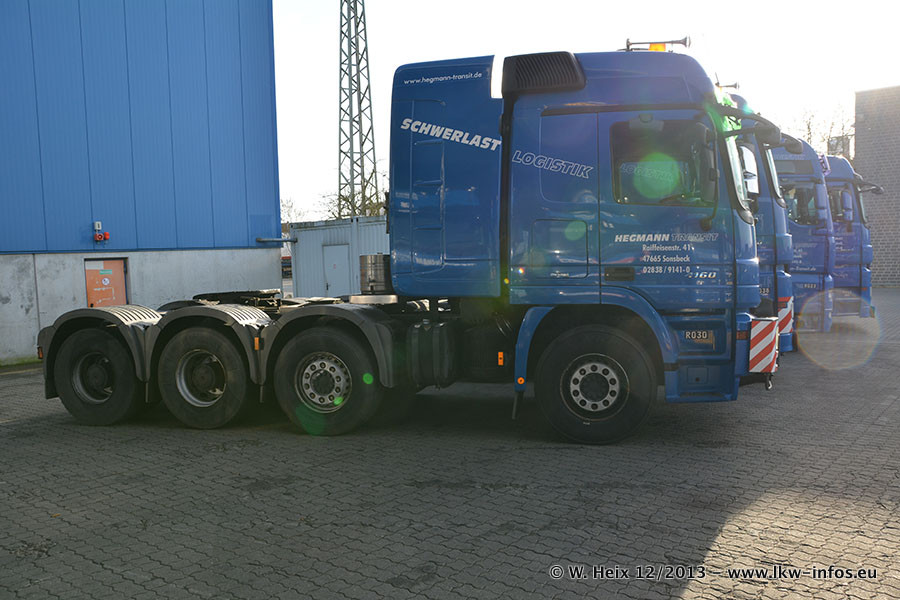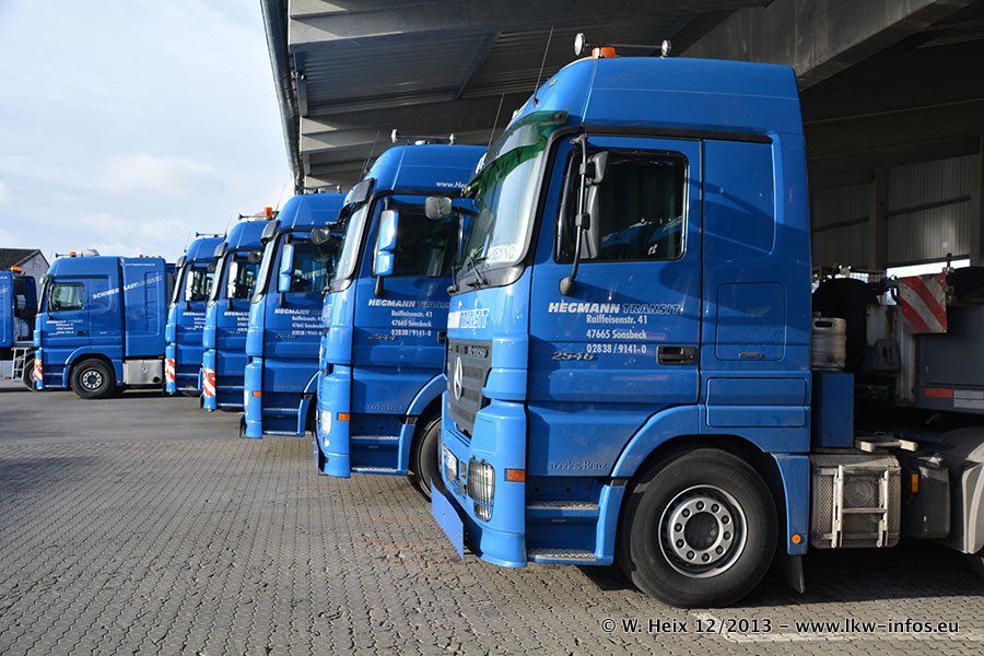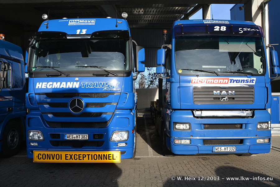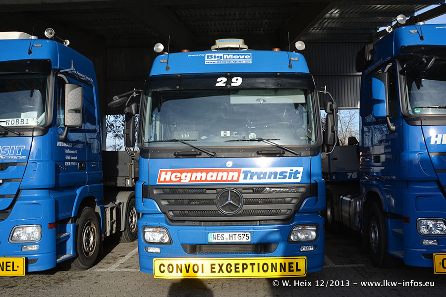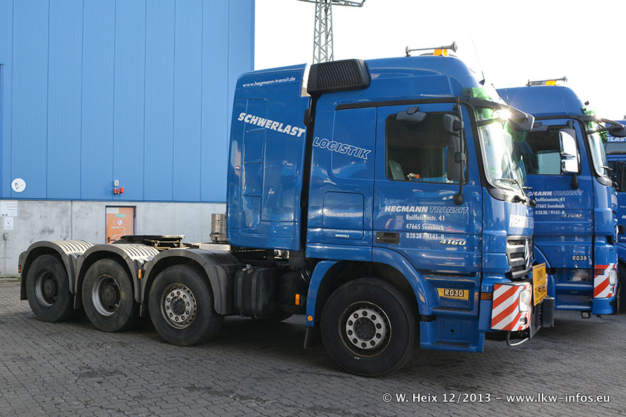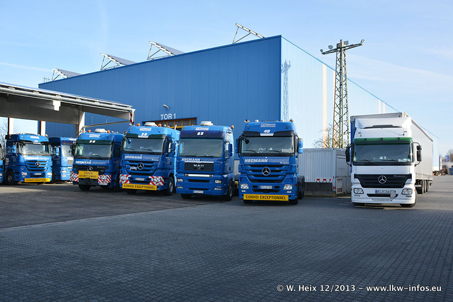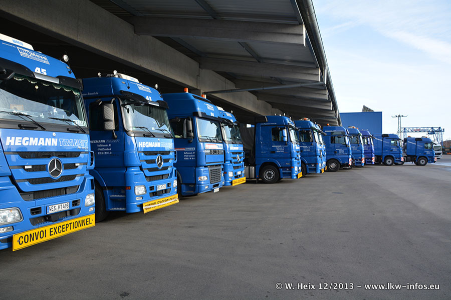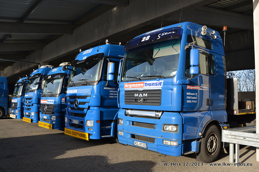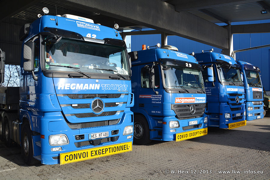 Am 20.12. sind noch zwei neue Auflieger von Doll aus der Panther-Baureihe gekommen. Allerdings konnte ich nur einen davon fotografieren, da der andere in einer der Hallen stand. Die Bilder zeigen den fast kompletten Fuhrpark, der inzwischen aus 34 Zugmaschinen besteht. Lediglich ein LKW war in der Werkstatt und nicht auf dem Hof. Neu ist auch die gebraucht gekaufte Zugmaschine von Bollnäs inkl. einiger Schwerlastanhänger. Das Fahrzeug, das sonst nur in Häfen oder großen Industriebetrieben zu finden ist, wird für interne Transporte auf dem Firmenhof gebraucht. Der weiße MB Actros MP2 1941 wird auch erstmals gezeigt. Diese gebraucht gekaufte Zugmaschine ist seit über einem Jahr im Fuhrpark aber normalerweise eben nie auf dem Hof. Der zuletzt gekaufte MB Actros 3 4160 SLT ist inzwischen angemeldet und trägt jetzt die Nr. 44. Der MAN TGA 41.530 mit der Nr. 35 bleibt im Fuhrpark. Dieser sollte eigentlich durch den neuen Actros SLT ersetzt werden.