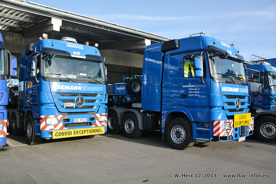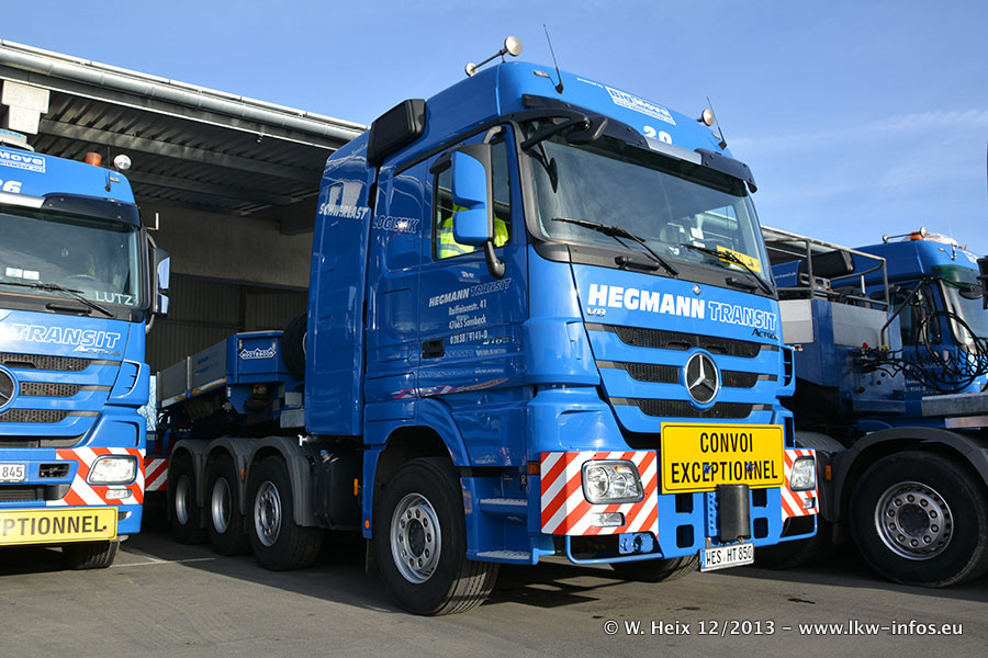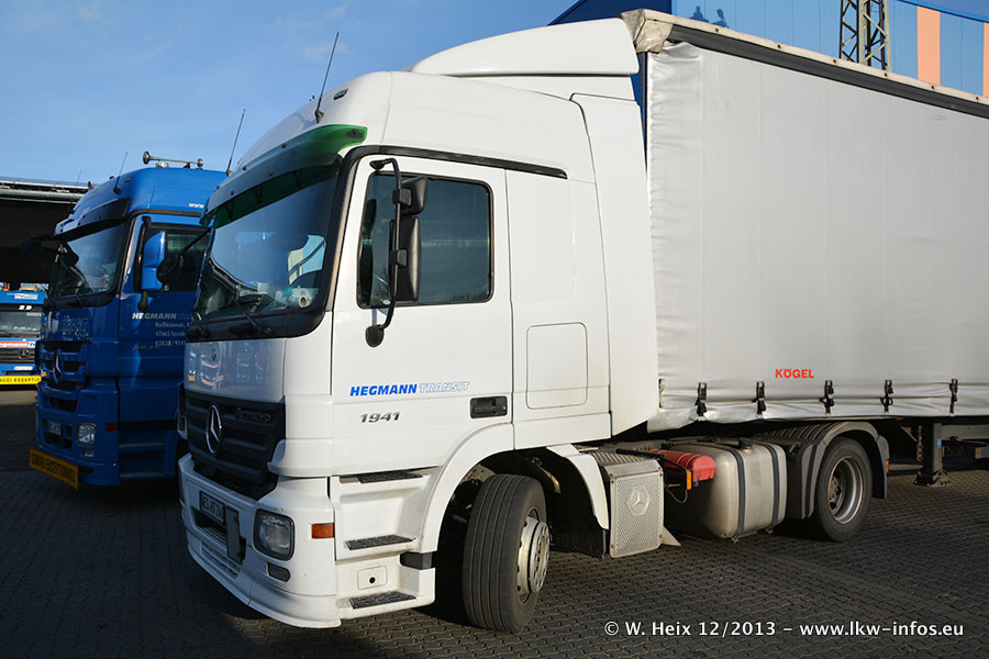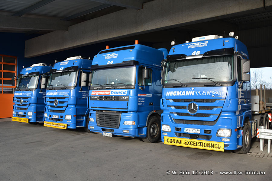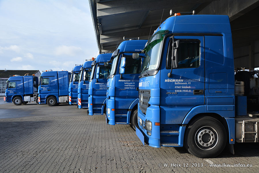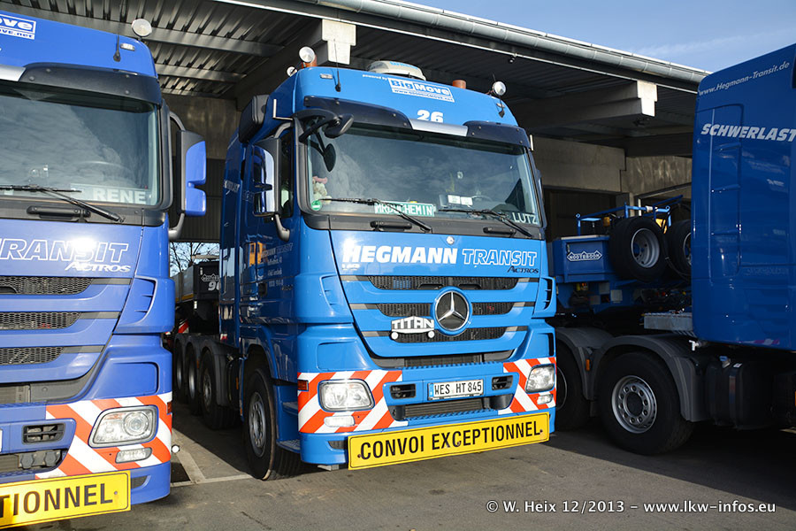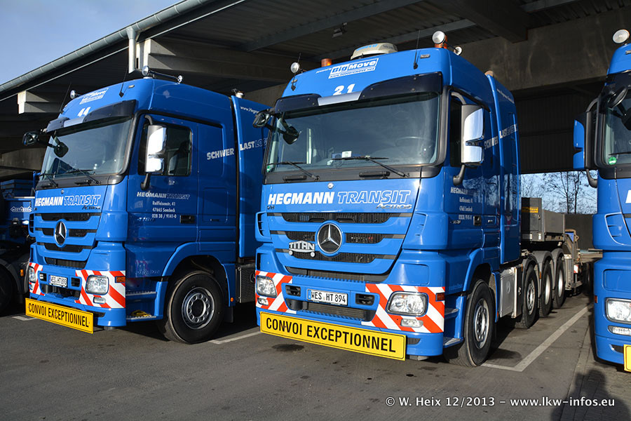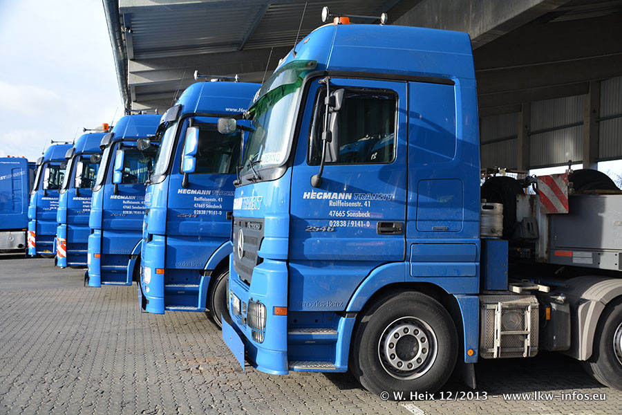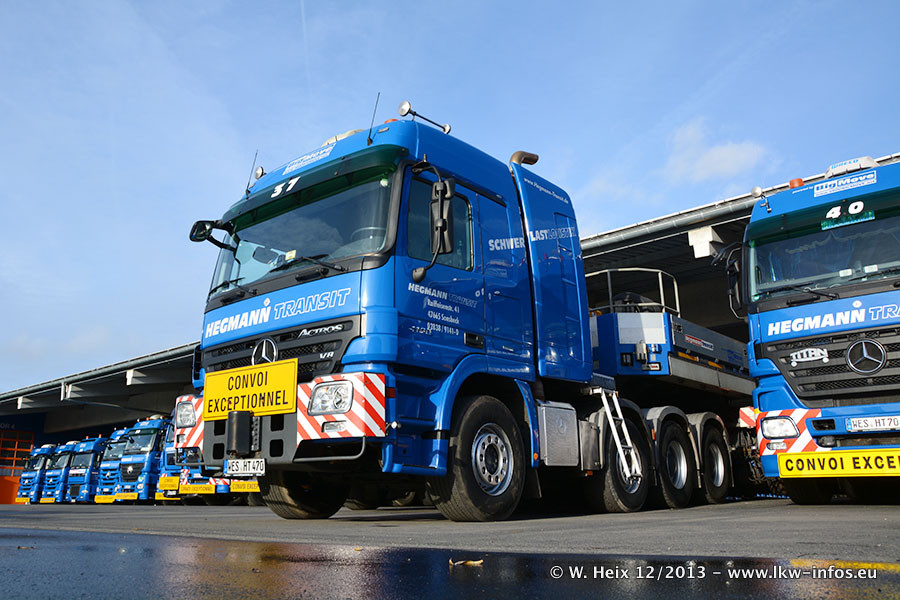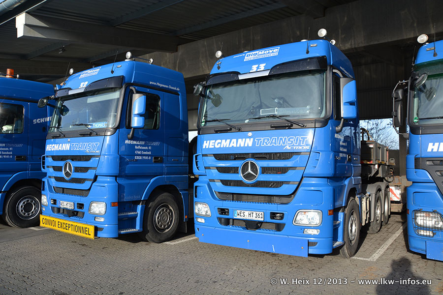Am 20.12. sind noch zwei neue Auflieger von Doll aus der Panther-Baureihe gekommen. Allerdings konnte ich nur einen davon fotografieren, da der andere in einer der Hallen stand. Die Bilder zeigen den fast kompletten Fuhrpark, der inzwischen aus 34 Zugmaschinen besteht. Lediglich ein LKW war in der Werkstatt und nicht auf dem Hof. Neu ist auch die gebraucht gekaufte Zugmaschine von Bollnäs inkl. einiger Schwerlastanhänger. Das Fahrzeug, das sonst nur in Häfen oder großen Industriebetrieben zu finden ist, wird für interne Transporte auf dem Firmenhof gebraucht. Der weiße MB Actros MP2 1941 wird auch erstmals gezeigt. Diese gebraucht gekaufte Zugmaschine ist seit über einem Jahr im Fuhrpark aber normalerweise eben nie auf dem Hof. Der zuletzt gekaufte MB Actros 3 4160 SLT ist inzwischen angemeldet und trägt jetzt die Nr. 44. Der MAN TGA 41.530 mit der Nr. 35 bleibt im Fuhrpark. Dieser sollte eigentlich durch den neuen Actros SLT ersetzt werden.