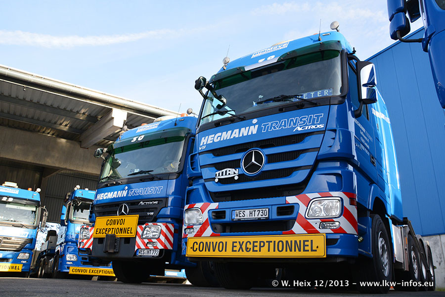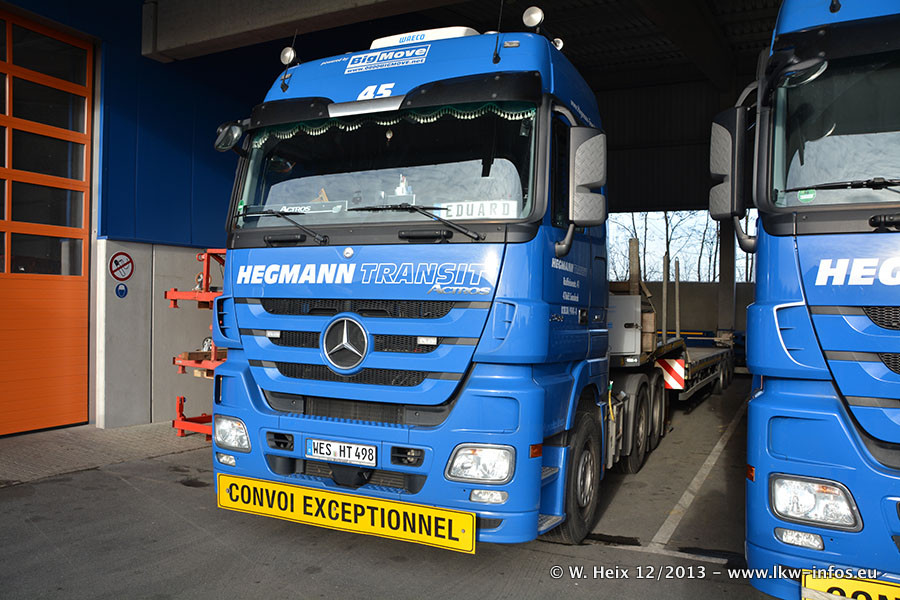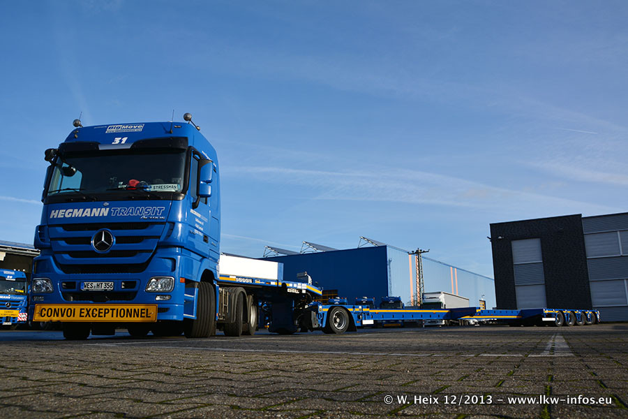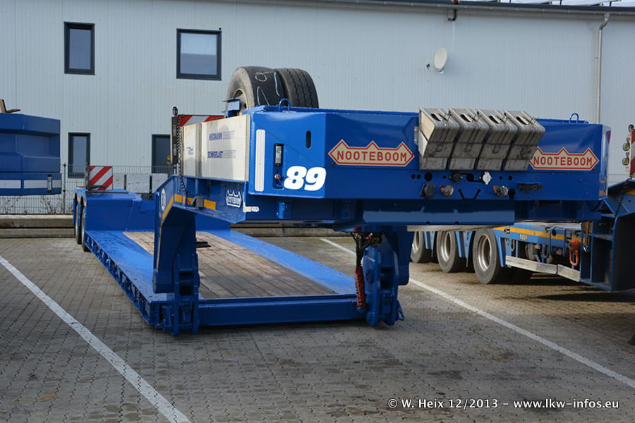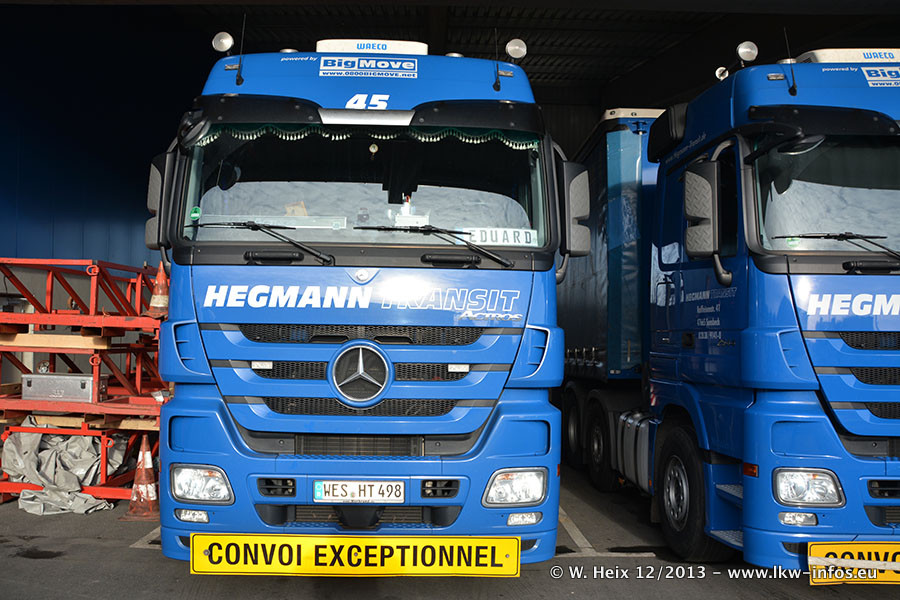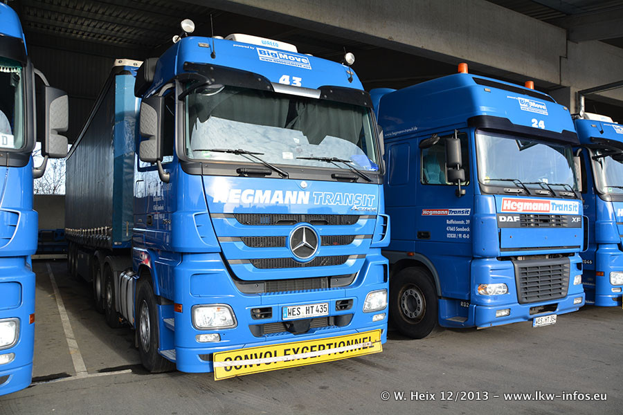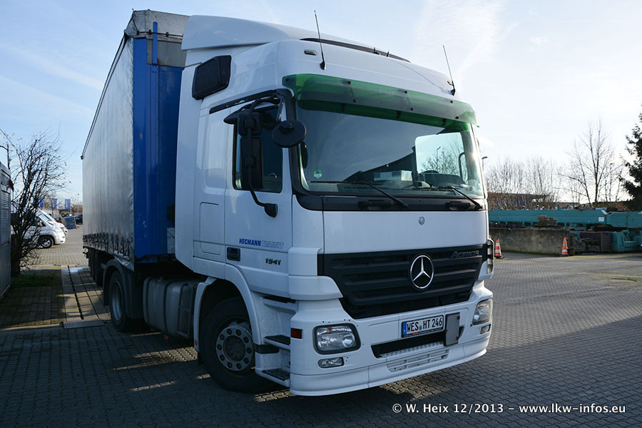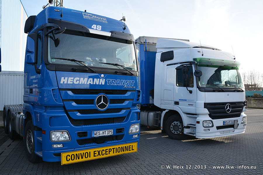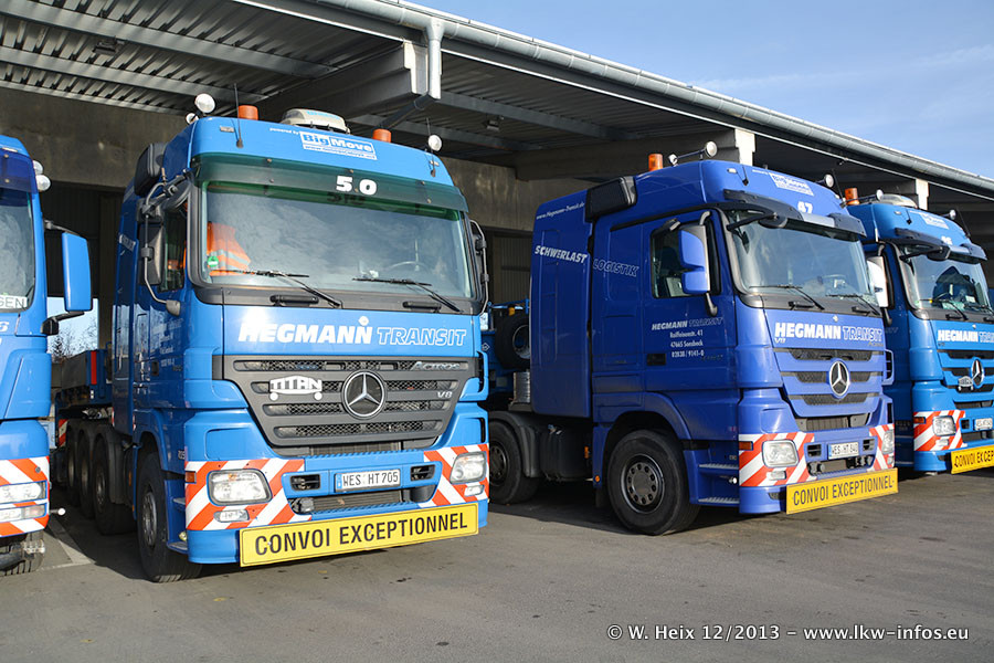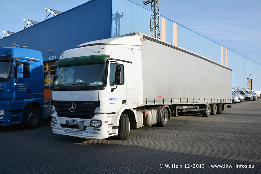 Am 20.12. sind noch zwei neue Auflieger von Doll aus der Panther-Baureihe gekommen. Allerdings konnte ich nur einen davon fotografieren, da der andere in einer der Hallen stand. Die Bilder zeigen den fast kompletten Fuhrpark, der inzwischen aus 34 Zugmaschinen besteht. Lediglich ein LKW war in der Werkstatt und nicht auf dem Hof. Neu ist auch die gebraucht gekaufte Zugmaschine von Bollnäs inkl. einiger Schwerlastanhänger. Das Fahrzeug, das sonst nur in Häfen oder großen Industriebetrieben zu finden ist, wird für interne Transporte auf dem Firmenhof gebraucht. Der weiße MB Actros MP2 1941 wird auch erstmals gezeigt. Diese gebraucht gekaufte Zugmaschine ist seit über einem Jahr im Fuhrpark aber normalerweise eben nie auf dem Hof. Der zuletzt gekaufte MB Actros 3 4160 SLT ist inzwischen angemeldet und trägt jetzt die Nr. 44. Der MAN TGA 41.530 mit der Nr. 35 bleibt im Fuhrpark. Dieser sollte eigentlich durch den neuen Actros SLT ersetzt werden.