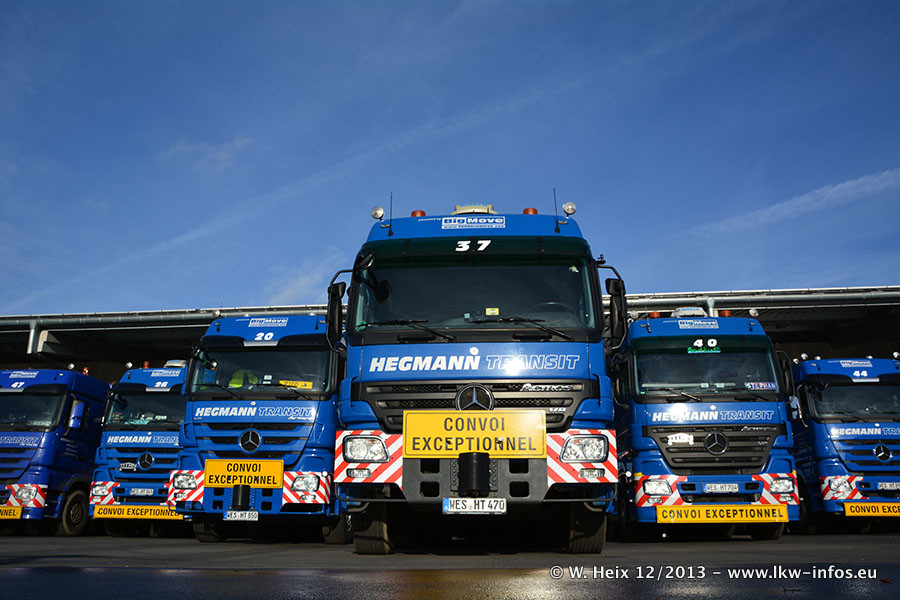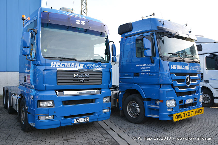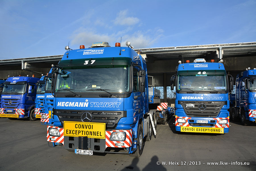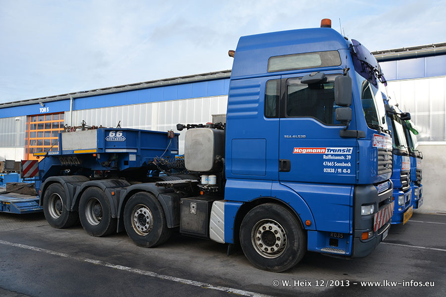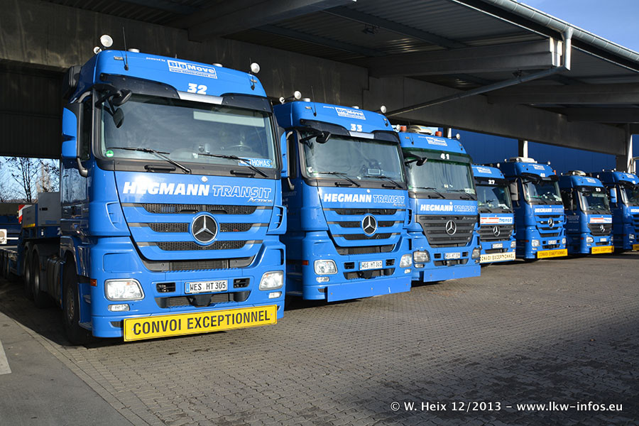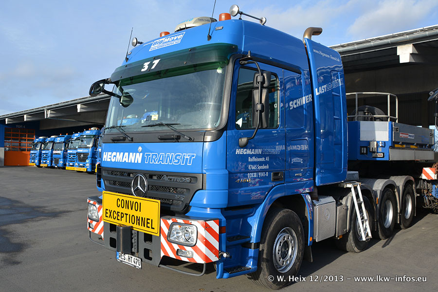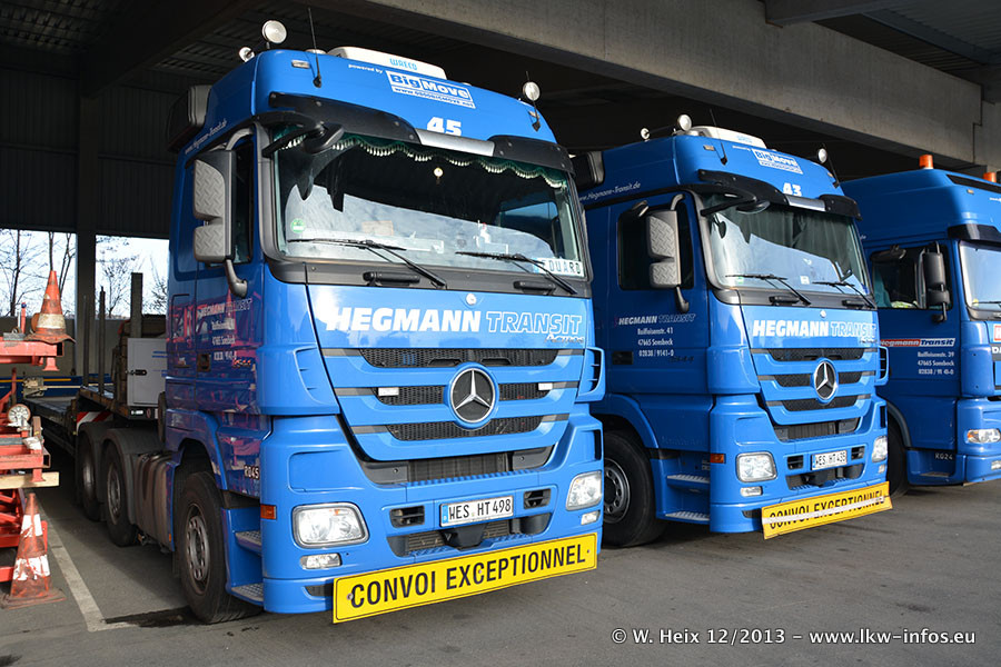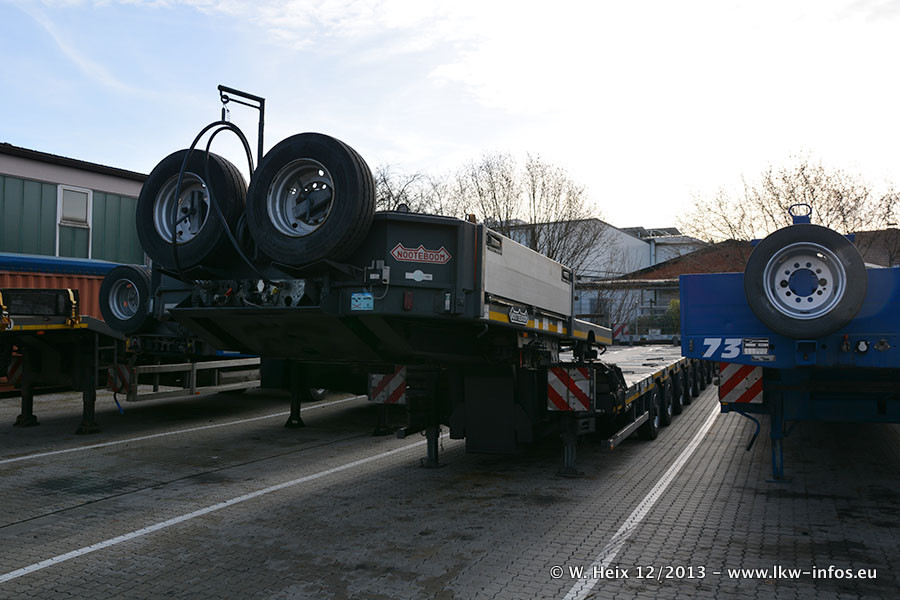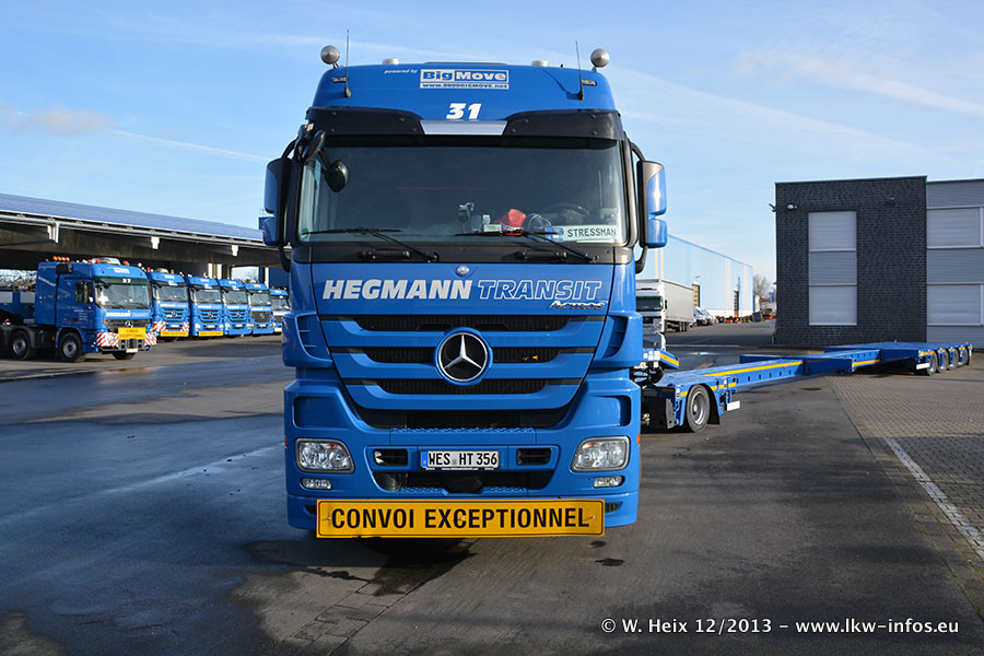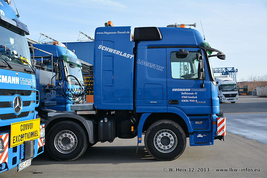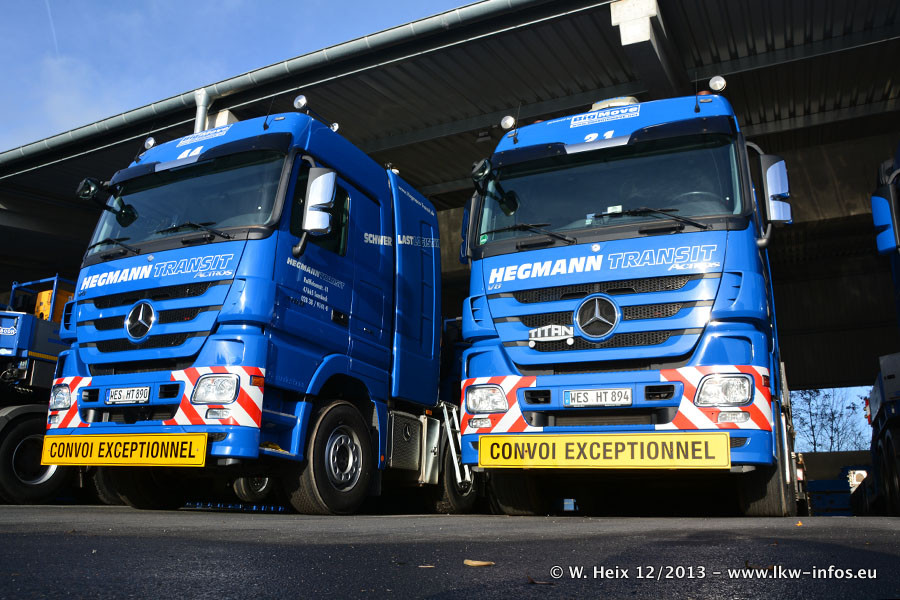 Am 20.12. sind noch zwei neue Auflieger von Doll aus der Panther-Baureihe gekommen. Allerdings konnte ich nur einen davon fotografieren, da der andere in einer der Hallen stand. Die Bilder zeigen den fast kompletten Fuhrpark, der inzwischen aus 34 Zugmaschinen besteht. Lediglich ein LKW war in der Werkstatt und nicht auf dem Hof. Neu ist auch die gebraucht gekaufte Zugmaschine von Bollnäs inkl. einiger Schwerlastanhänger. Das Fahrzeug, das sonst nur in Häfen oder großen Industriebetrieben zu finden ist, wird für interne Transporte auf dem Firmenhof gebraucht. Der weiße MB Actros MP2 1941 wird auch erstmals gezeigt. Diese gebraucht gekaufte Zugmaschine ist seit über einem Jahr im Fuhrpark aber normalerweise eben nie auf dem Hof. Der zuletzt gekaufte MB Actros 3 4160 SLT ist inzwischen angemeldet und trägt jetzt die Nr. 44. Der MAN TGA 41.530 mit der Nr. 35 bleibt im Fuhrpark. Dieser sollte eigentlich durch den neuen Actros SLT ersetzt werden.