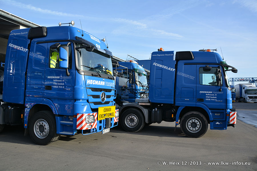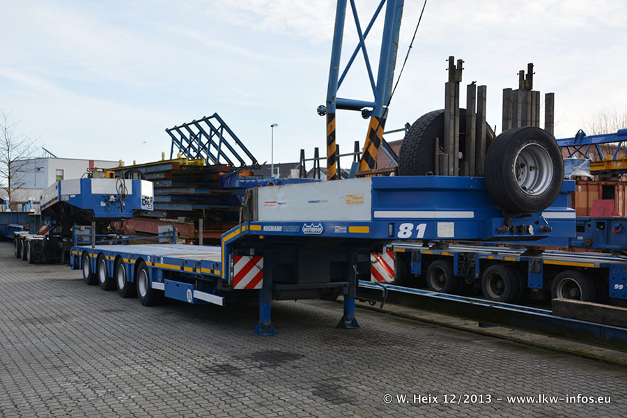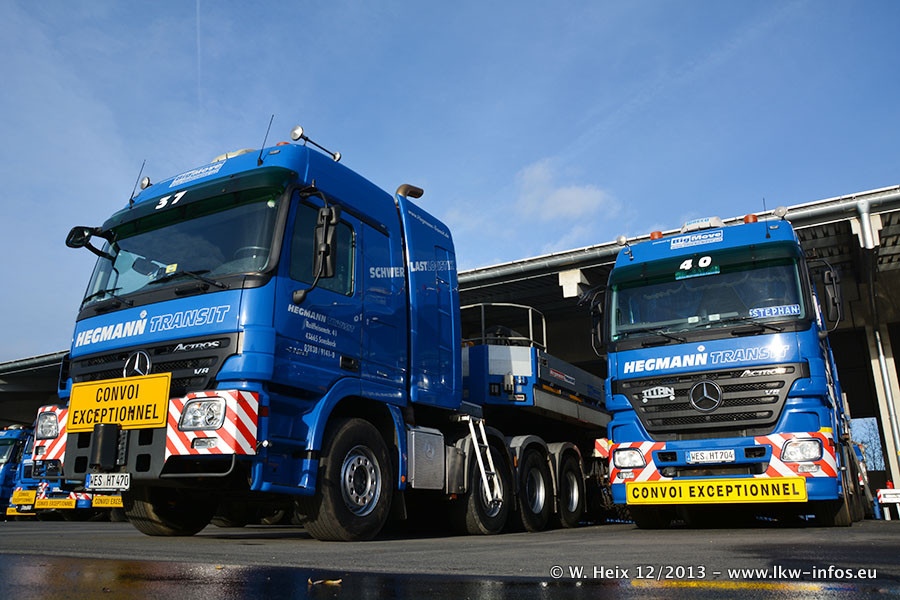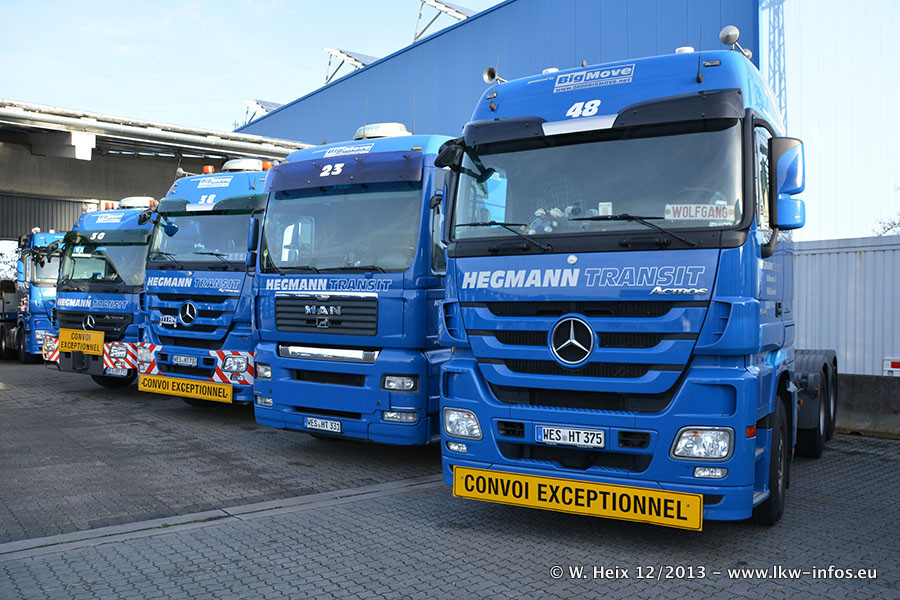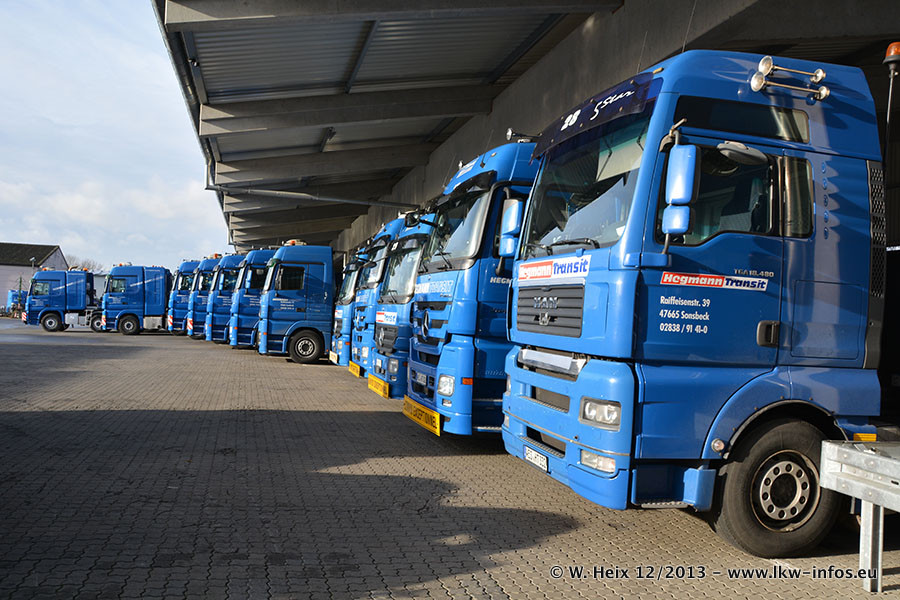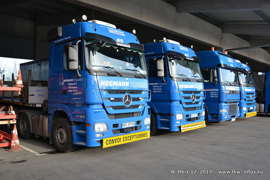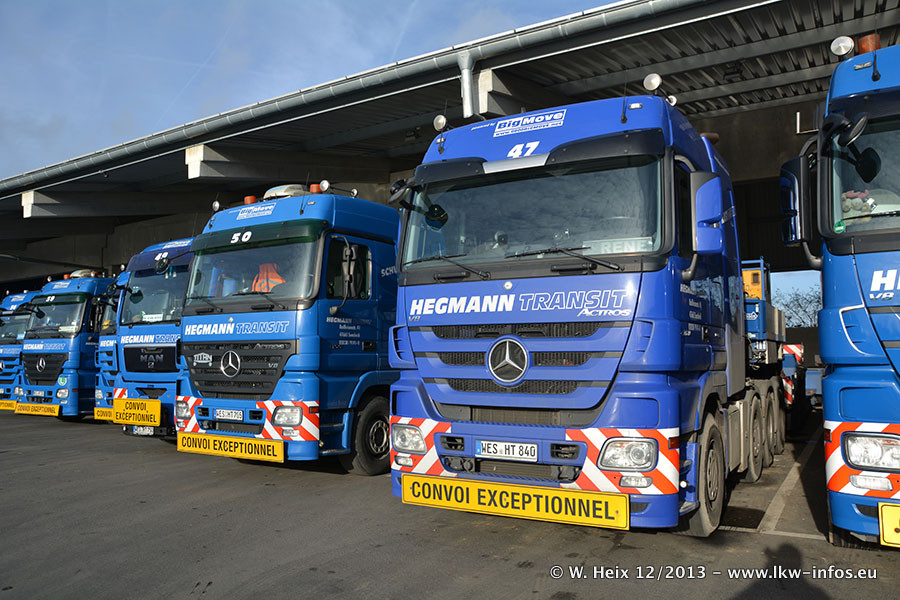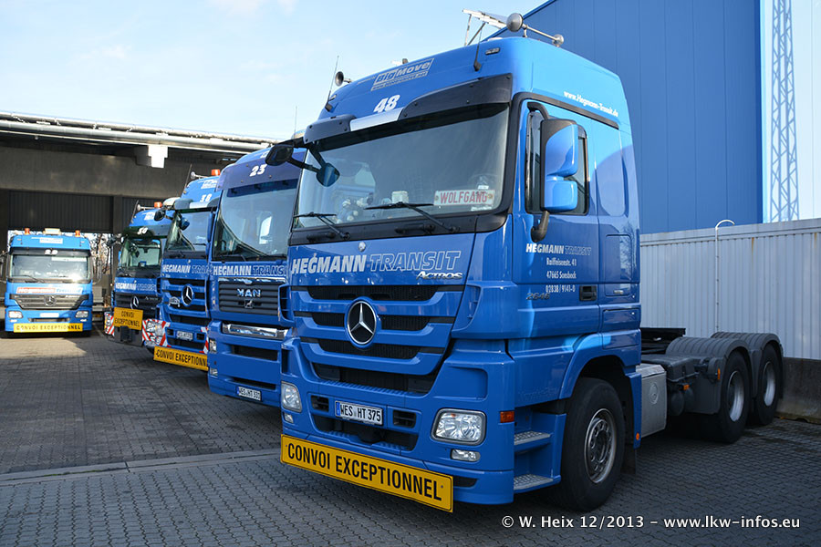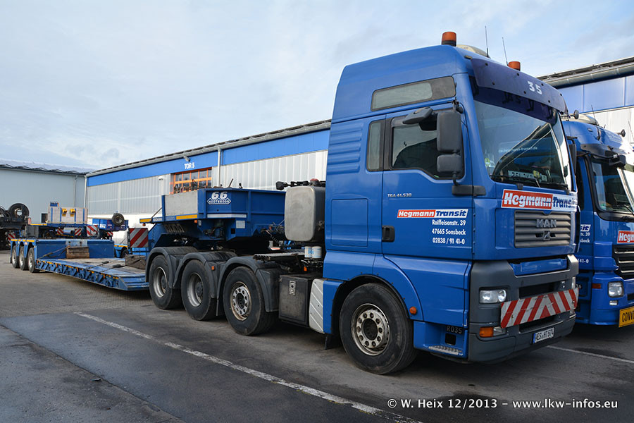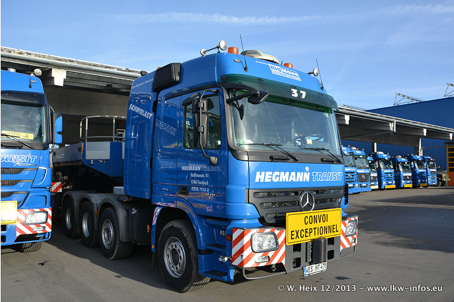 Am 20.12. sind noch zwei neue Auflieger von Doll aus der Panther-Baureihe gekommen. Allerdings konnte ich nur einen davon fotografieren, da der andere in einer der Hallen stand. Die Bilder zeigen den fast kompletten Fuhrpark, der inzwischen aus 34 Zugmaschinen besteht. Lediglich ein LKW war in der Werkstatt und nicht auf dem Hof. Neu ist auch die gebraucht gekaufte Zugmaschine von Bollnäs inkl. einiger Schwerlastanhänger. Das Fahrzeug, das sonst nur in Häfen oder großen Industriebetrieben zu finden ist, wird für interne Transporte auf dem Firmenhof gebraucht. Der weiße MB Actros MP2 1941 wird auch erstmals gezeigt. Diese gebraucht gekaufte Zugmaschine ist seit über einem Jahr im Fuhrpark aber normalerweise eben nie auf dem Hof. Der zuletzt gekaufte MB Actros 3 4160 SLT ist inzwischen angemeldet und trägt jetzt die Nr. 44. Der MAN TGA 41.530 mit der Nr. 35 bleibt im Fuhrpark. Dieser sollte eigentlich durch den neuen Actros SLT ersetzt werden.