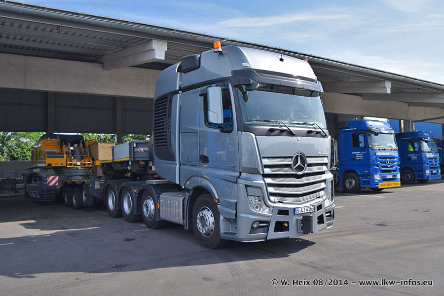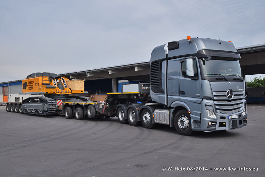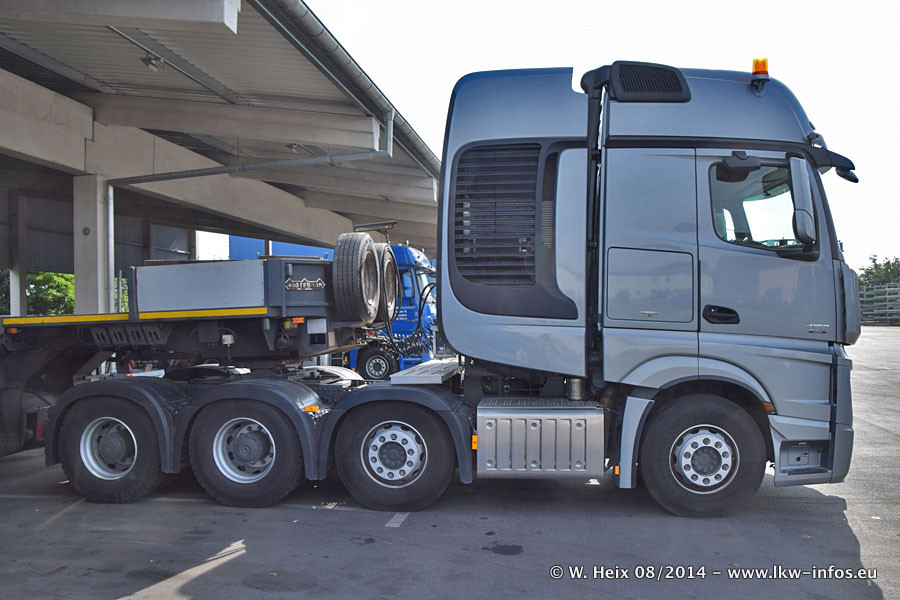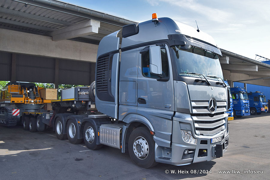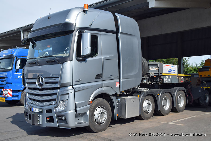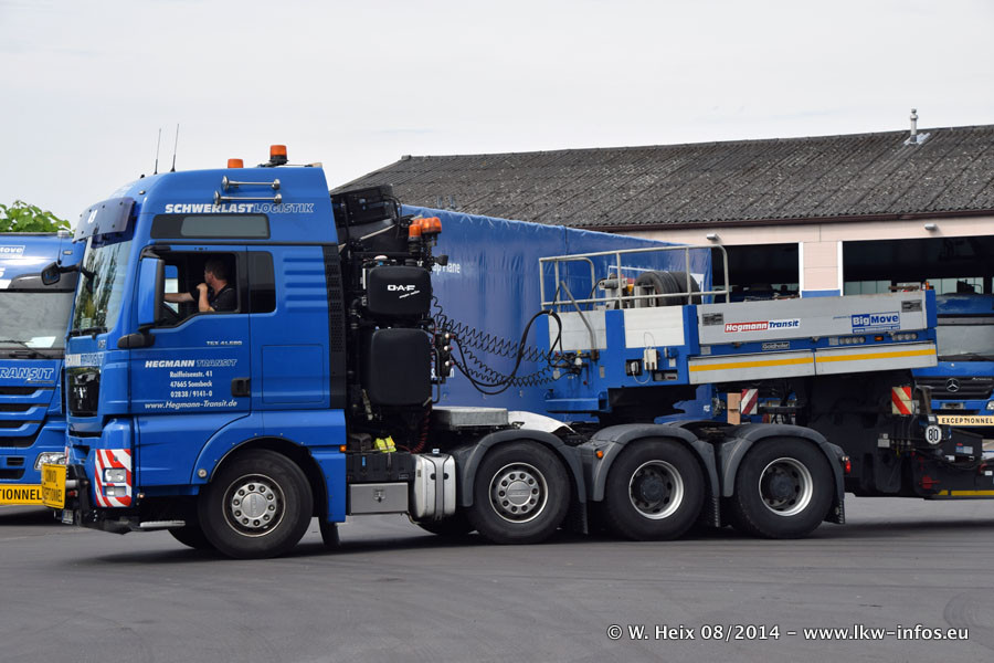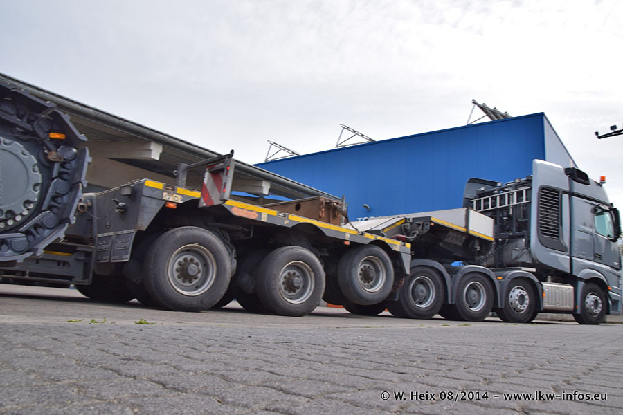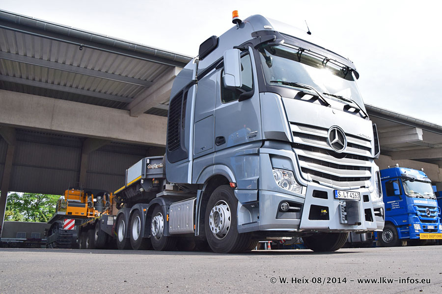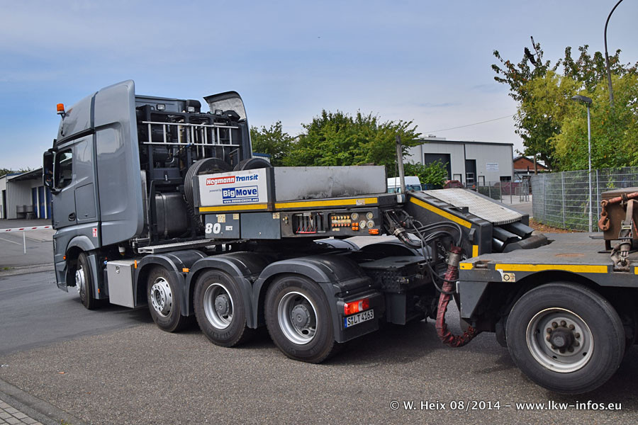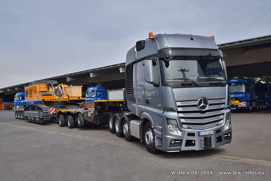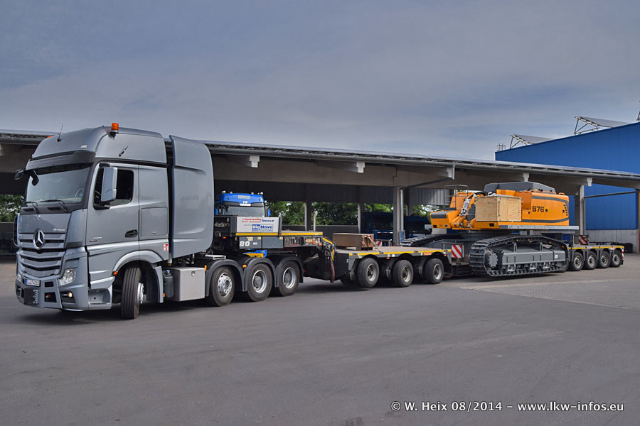 Da Hegmann Transit den neuen Mercedes-Benz Actros 4163 SLT zum Testen auf dem Hof stehen hatte, ergab sich spontan während der Woche ein kleines Fotoshooting. Zum Vergleich hatten wir auch mal den MAN TGX 41.680 von Hegmann Transit daneben gestellt. Bisher gibt es nur diesen einen 4163 SLT, der zur Zeit den interessierten Schwerlastfirmen nach und nach zum Testen zur Verfügung gestellt wird. Entsprechend umfangreich ist auch meine Bilderserie. Neu im Fuhrpark ist auch ein Planenauflieger auf Basis eines Semi-Tiefladers von Doll (Panther-Baureihe), mit dem Waggons unter Plane transportiert werden sollen. Der Auflieger war gerade fertig beschriftet und wird erst noch eine Testfahrt machen, bevor der zum Einsatz kommt.