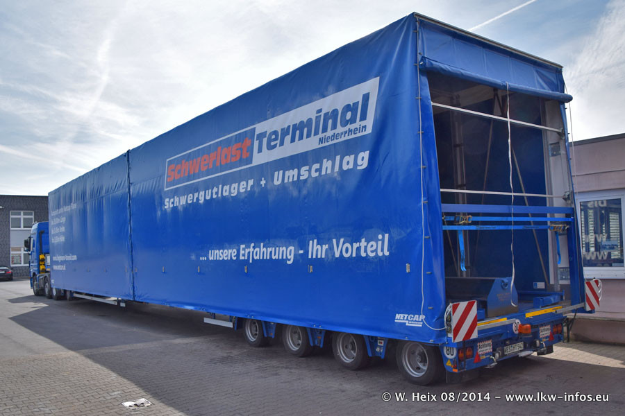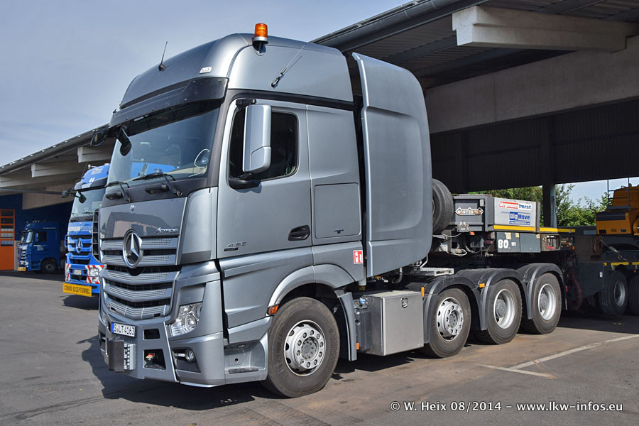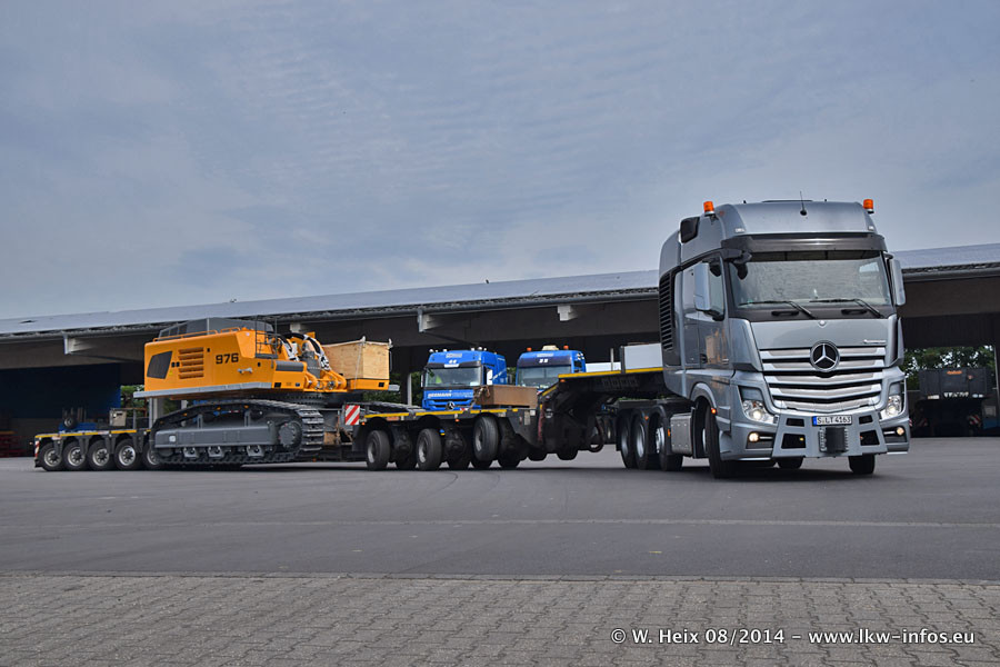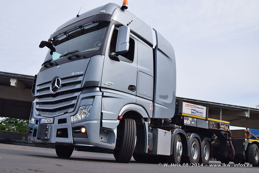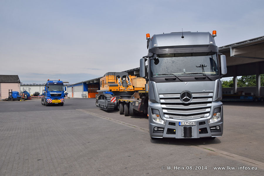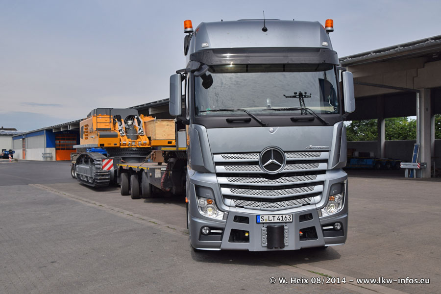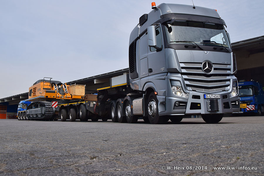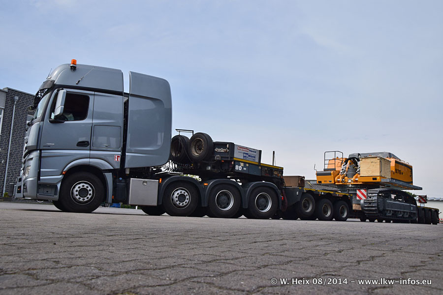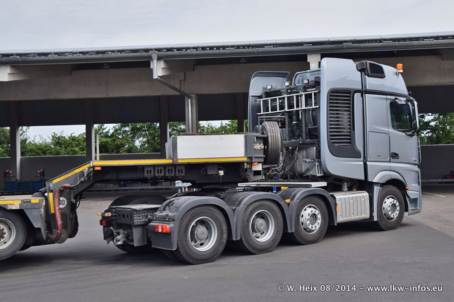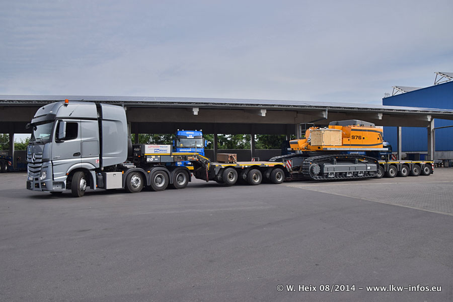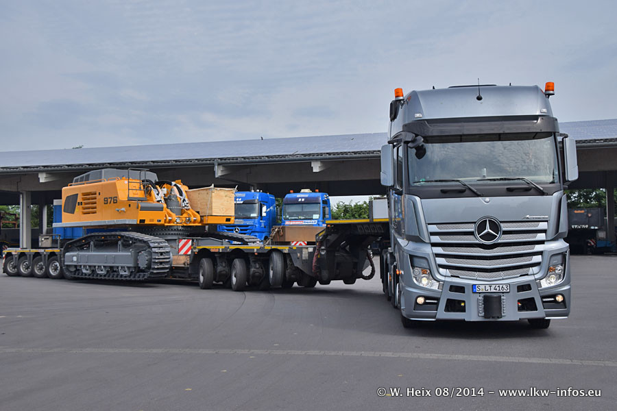 Da Hegmann Transit den neuen Mercedes-Benz Actros 4163 SLT zum Testen auf dem Hof stehen hatte, ergab sich spontan während der Woche ein kleines Fotoshooting. Zum Vergleich hatten wir auch mal den MAN TGX 41.680 von Hegmann Transit daneben gestellt. Bisher gibt es nur diesen einen 4163 SLT, der zur Zeit den interessierten Schwerlastfirmen nach und nach zum Testen zur Verfügung gestellt wird. Entsprechend umfangreich ist auch meine Bilderserie. Neu im Fuhrpark ist auch ein Planenauflieger auf Basis eines Semi-Tiefladers von Doll (Panther-Baureihe), mit dem Waggons unter Plane transportiert werden sollen. Der Auflieger war gerade fertig beschriftet und wird erst noch eine Testfahrt machen, bevor der zum Einsatz kommt.