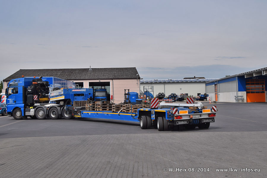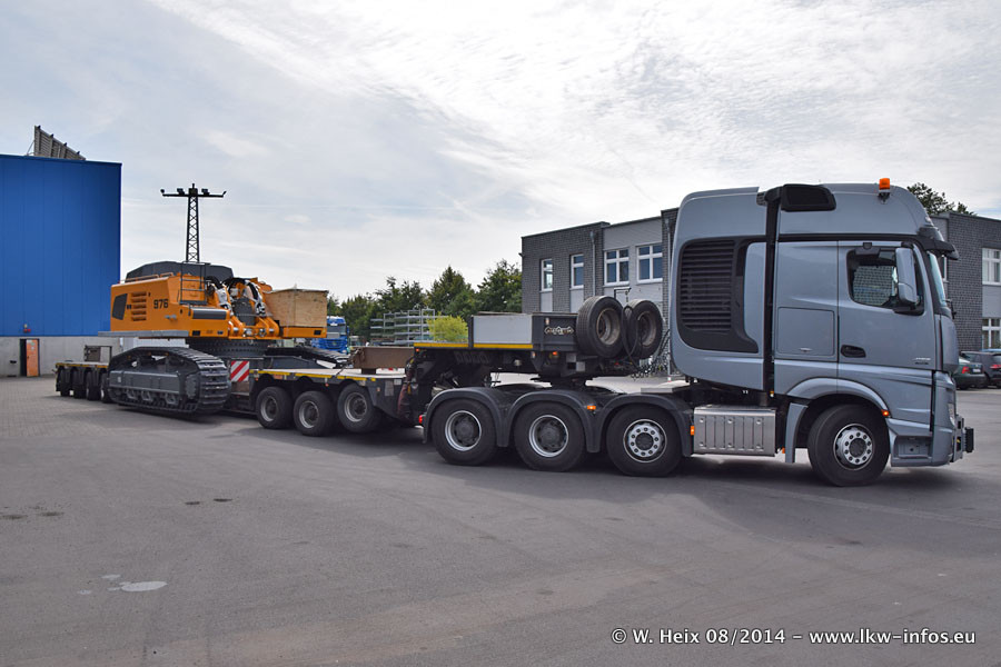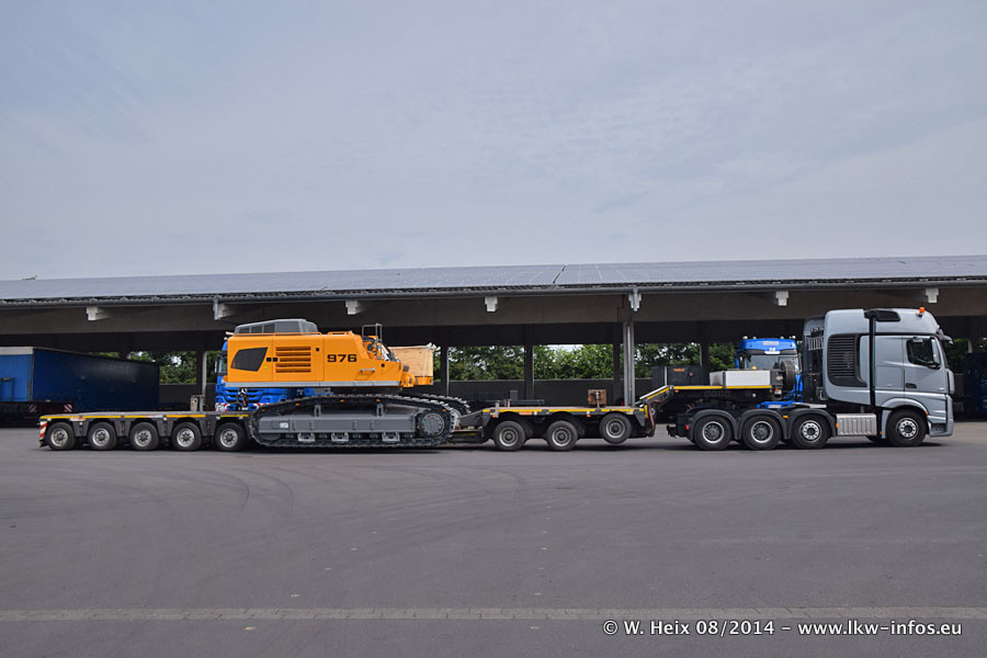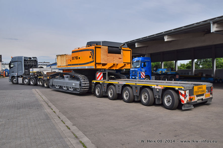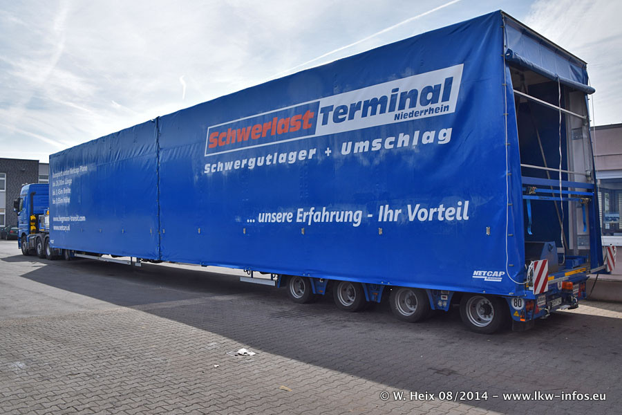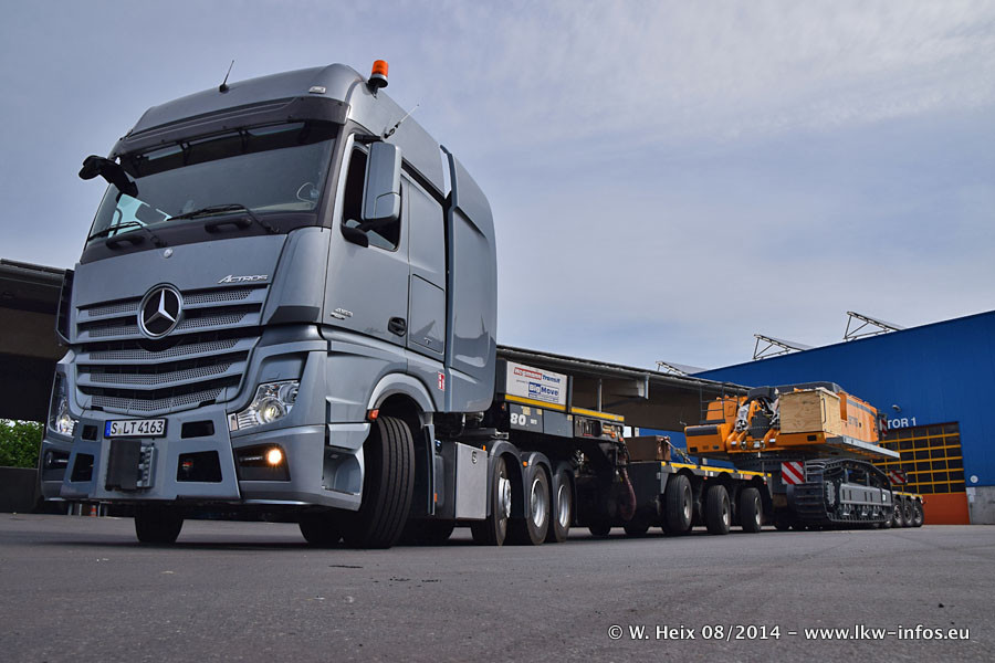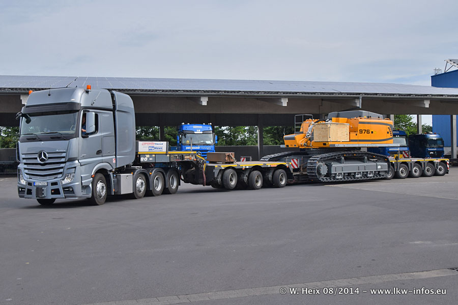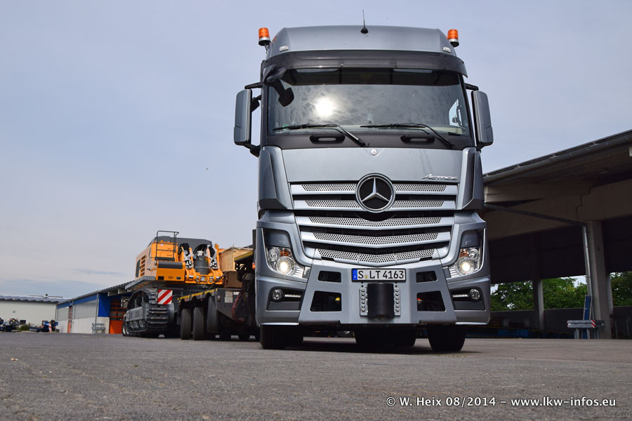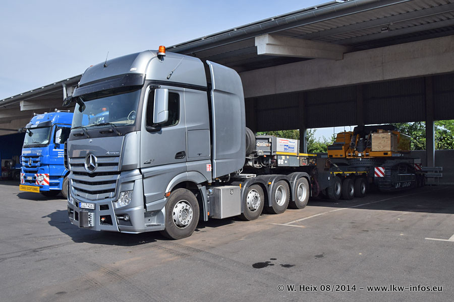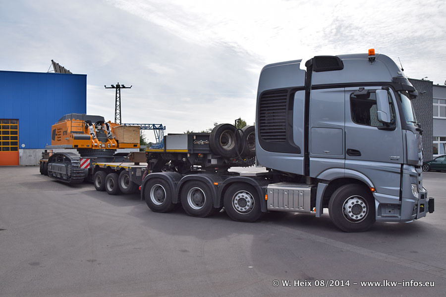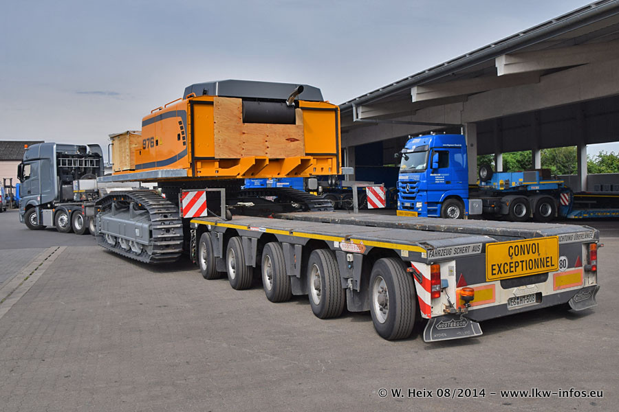 Da Hegmann Transit den neuen Mercedes-Benz Actros 4163 SLT zum Testen auf dem Hof stehen hatte, ergab sich spontan während der Woche ein kleines Fotoshooting. Zum Vergleich hatten wir auch mal den MAN TGX 41.680 von Hegmann Transit daneben gestellt. Bisher gibt es nur diesen einen 4163 SLT, der zur Zeit den interessierten Schwerlastfirmen nach und nach zum Testen zur Verfügung gestellt wird. Entsprechend umfangreich ist auch meine Bilderserie. Neu im Fuhrpark ist auch ein Planenauflieger auf Basis eines Semi-Tiefladers von Doll (Panther-Baureihe), mit dem Waggons unter Plane transportiert werden sollen. Der Auflieger war gerade fertig beschriftet und wird erst noch eine Testfahrt machen, bevor der zum Einsatz kommt.