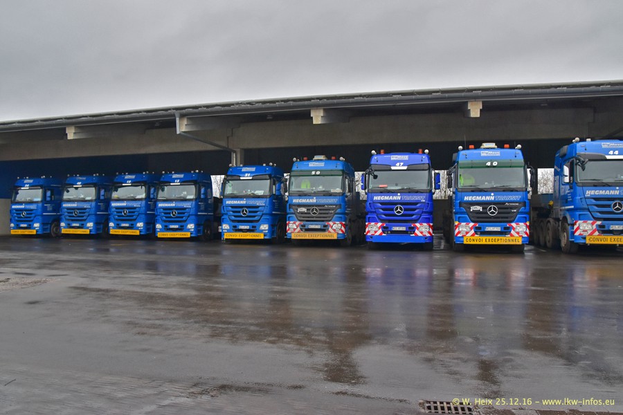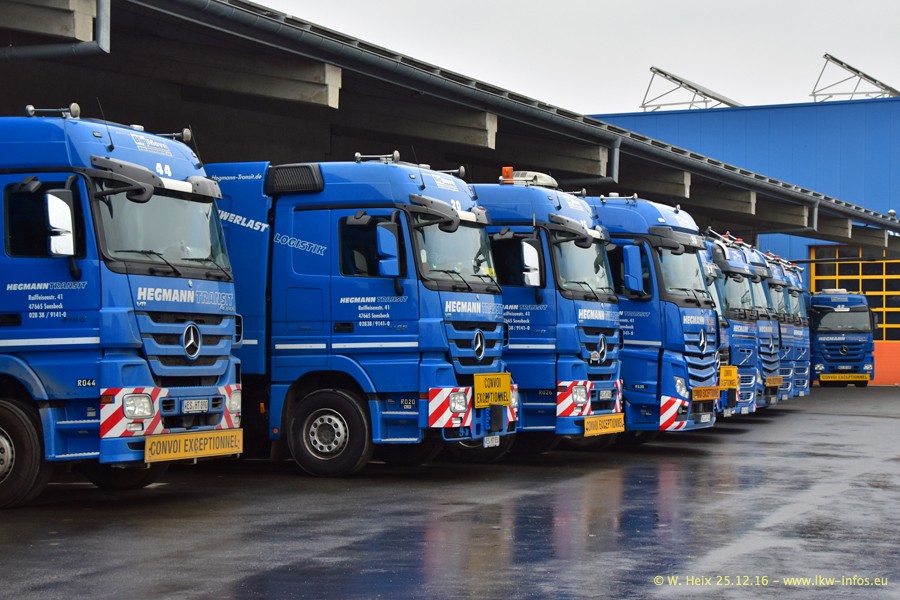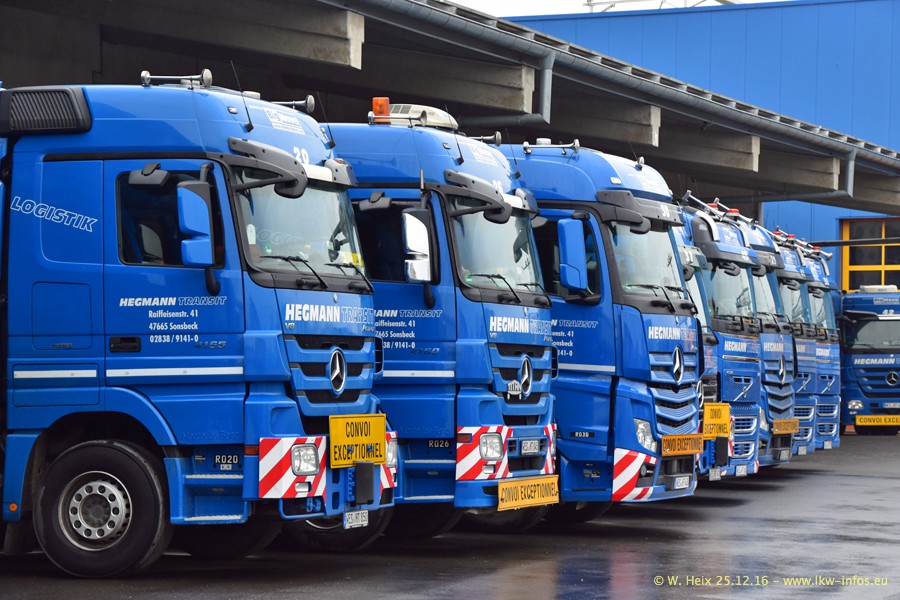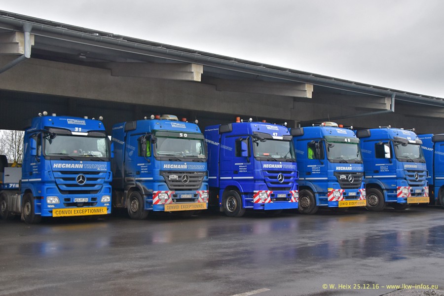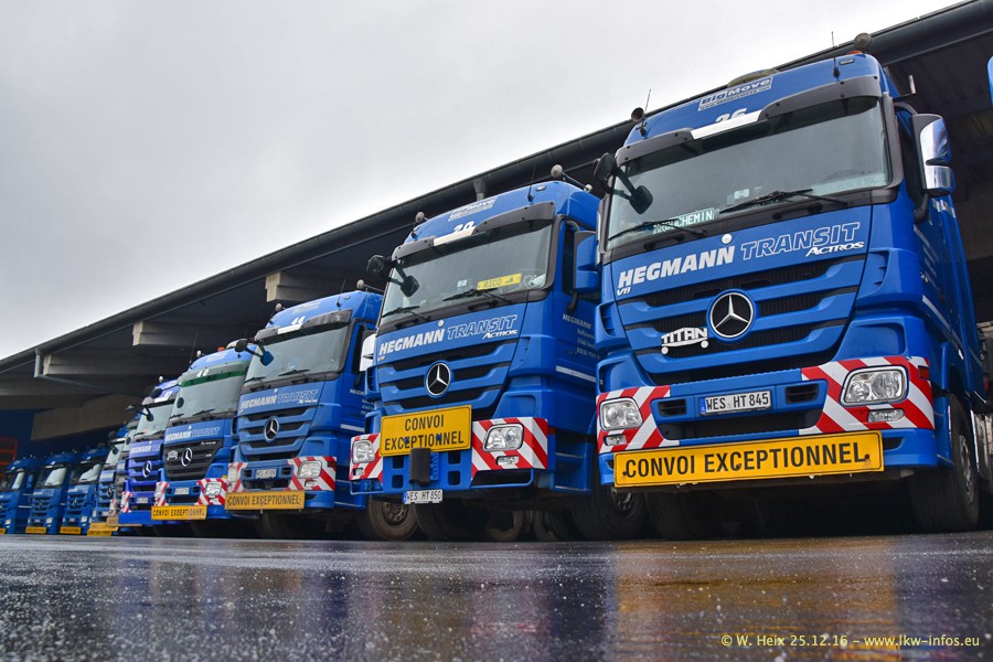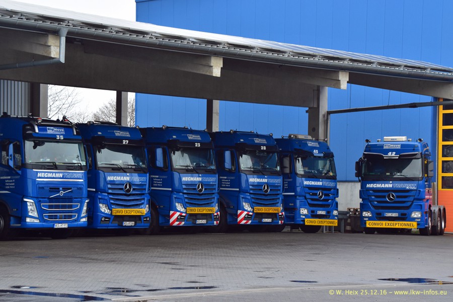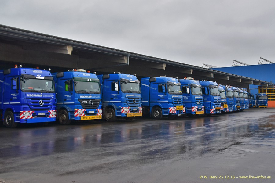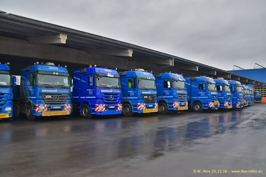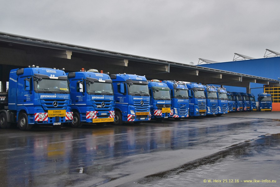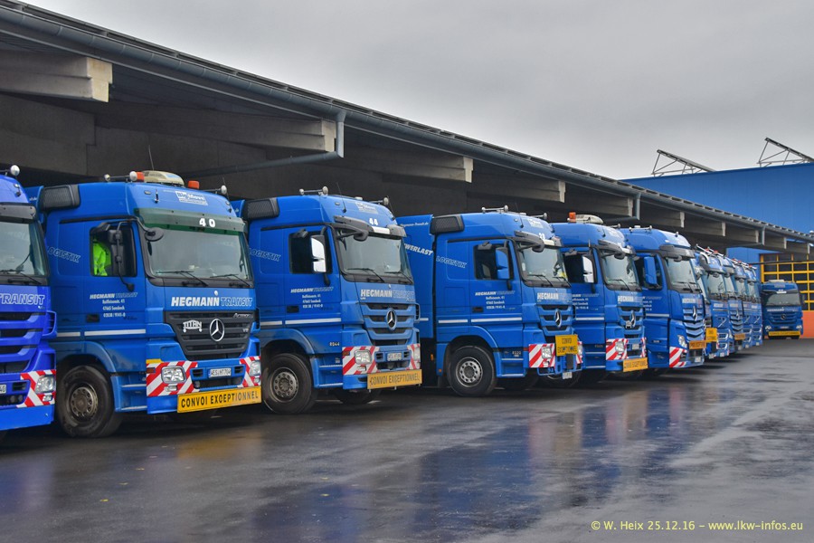 Wie in jedem Jahr habe ich Weihnachten wieder die Firma Hegmann Transit in Sonsbeck besucht. Und wie in fast jedem Jahr war auch das Wetter schlecht. Trotzdem gibt es viele schöne Bilder. Diesmal fehlten 5 LKW, ansonsten war alles zuhause. Bei den Begleitfahrzeugen gibt es einige neue aber sonst nichts Neues bei den Zugmaschinen.