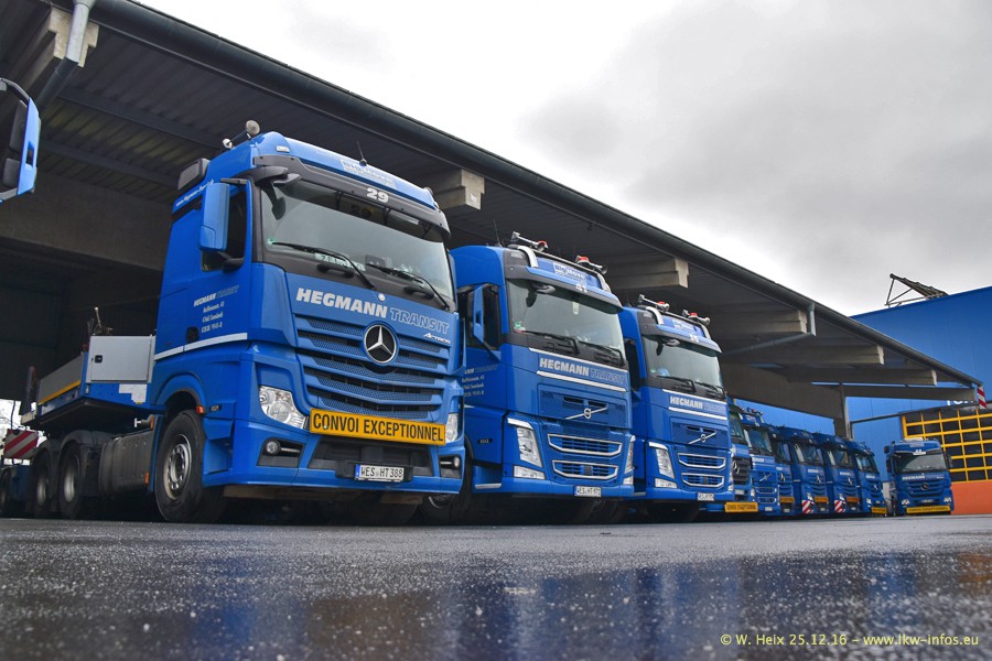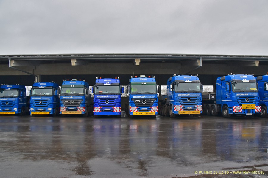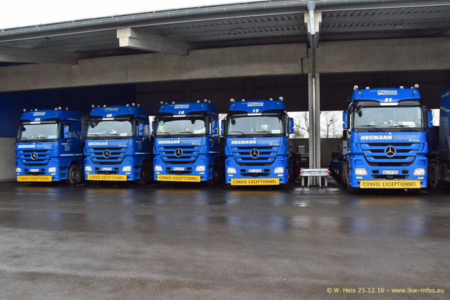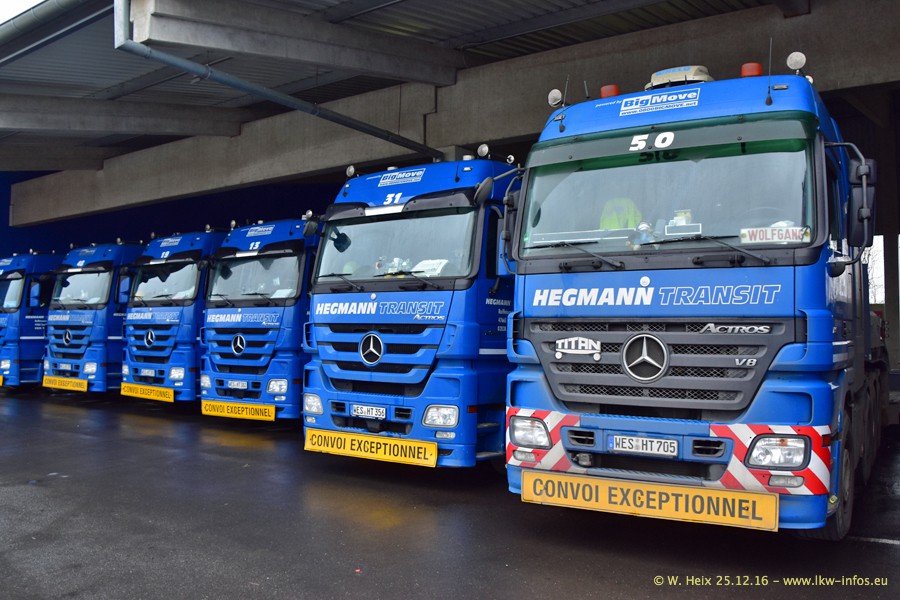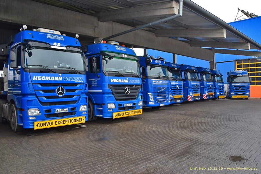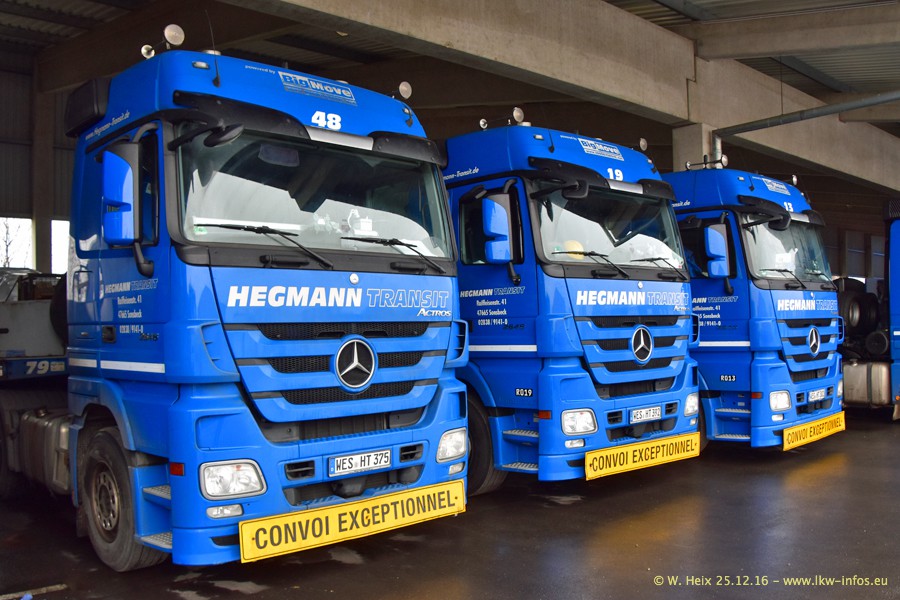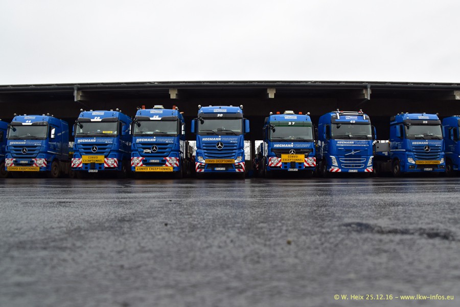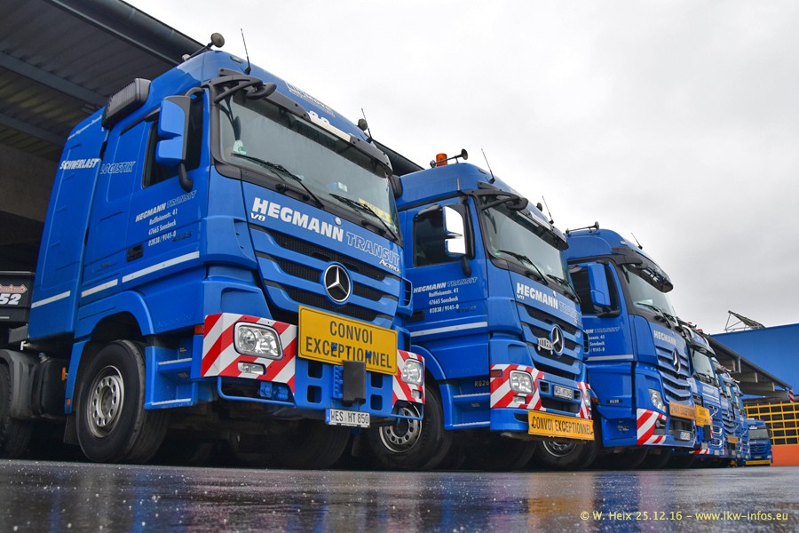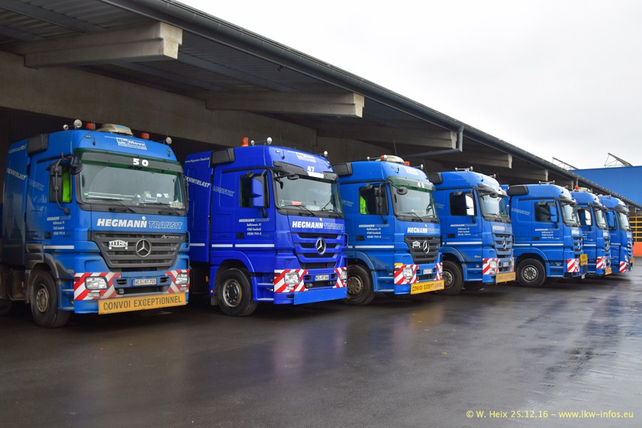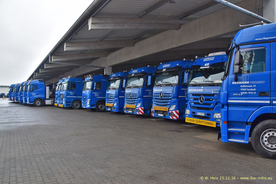 Wie in jedem Jahr habe ich Weihnachten wieder die Firma Hegmann Transit in Sonsbeck besucht. Und wie in fast jedem Jahr war auch das Wetter schlecht. Trotzdem gibt es viele schöne Bilder. Diesmal fehlten 5 LKW, ansonsten war alles zuhause. Bei den Begleitfahrzeugen gibt es einige neue aber sonst nichts Neues bei den Zugmaschinen.