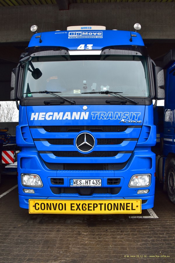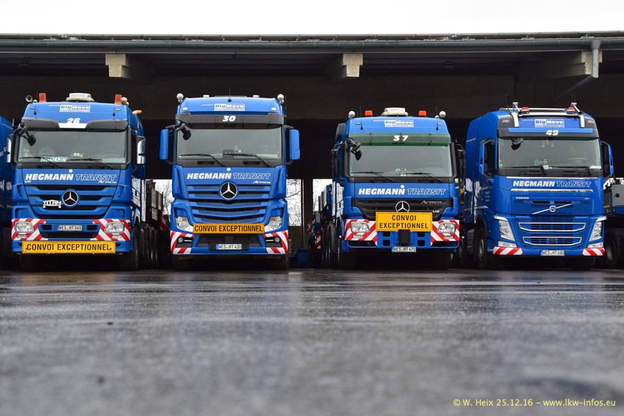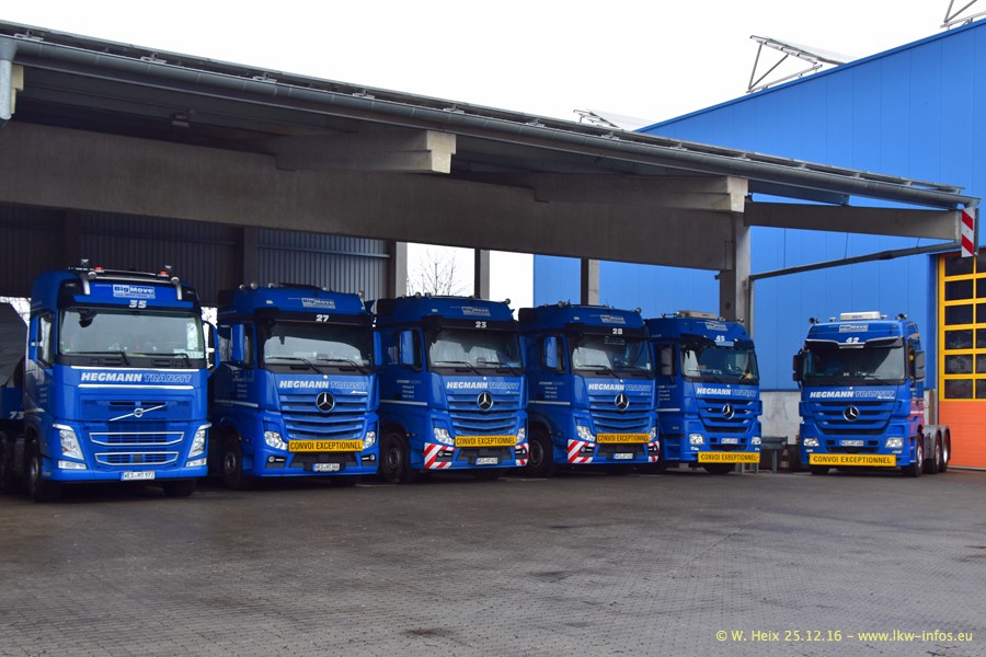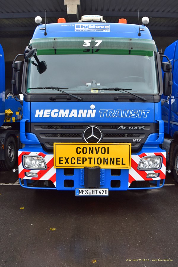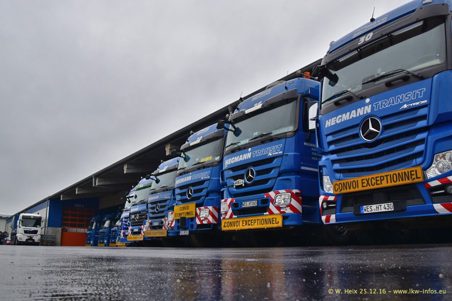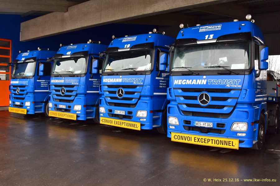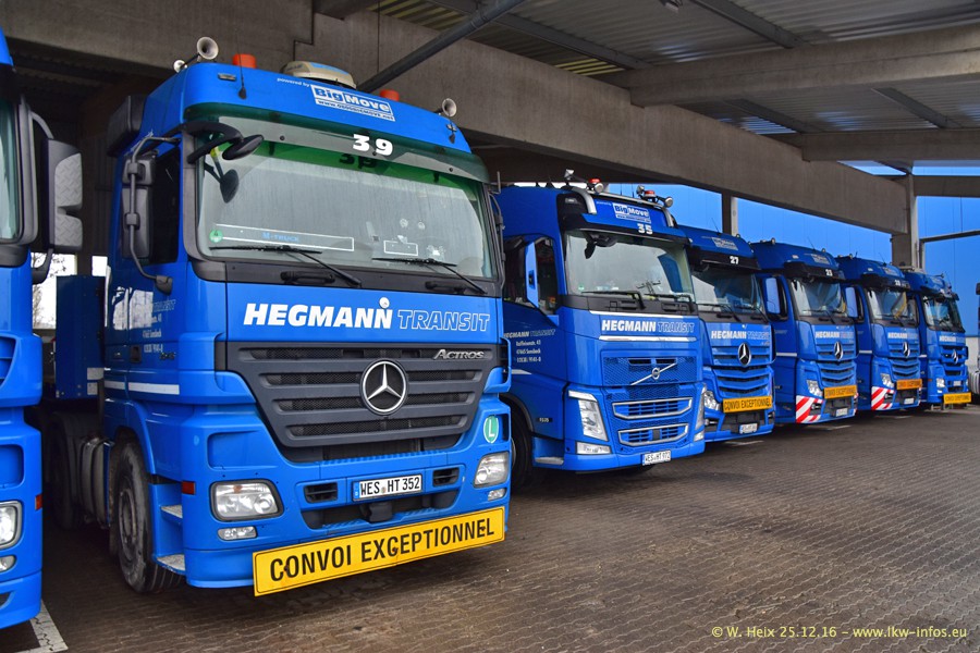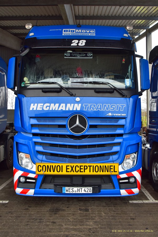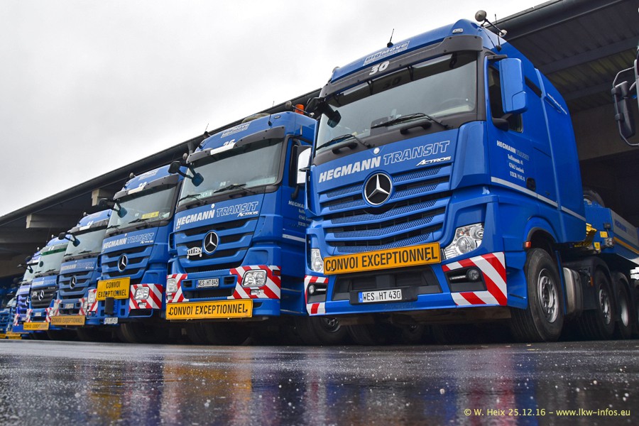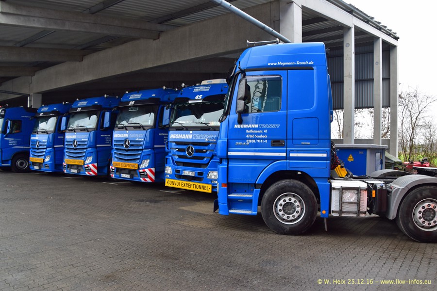 Wie in jedem Jahr habe ich Weihnachten wieder die Firma Hegmann Transit in Sonsbeck besucht. Und wie in fast jedem Jahr war auch das Wetter schlecht. Trotzdem gibt es viele schöne Bilder. Diesmal fehlten 5 LKW, ansonsten war alles zuhause. Bei den Begleitfahrzeugen gibt es einige neue aber sonst nichts Neues bei den Zugmaschinen.