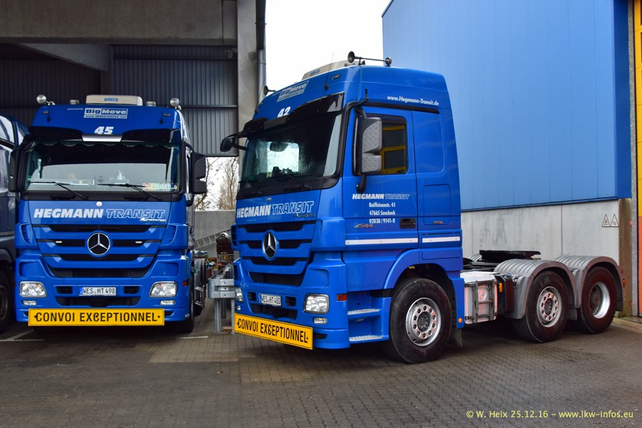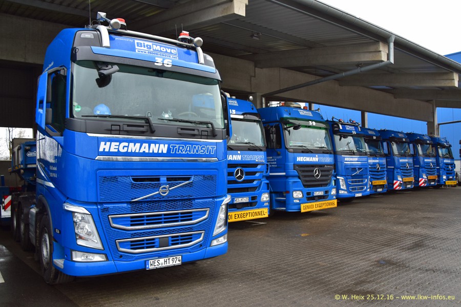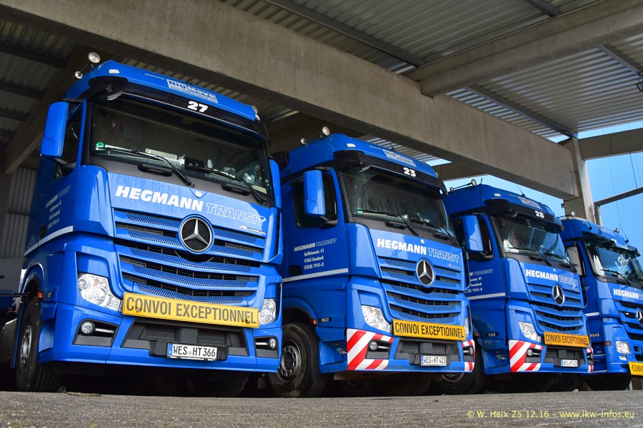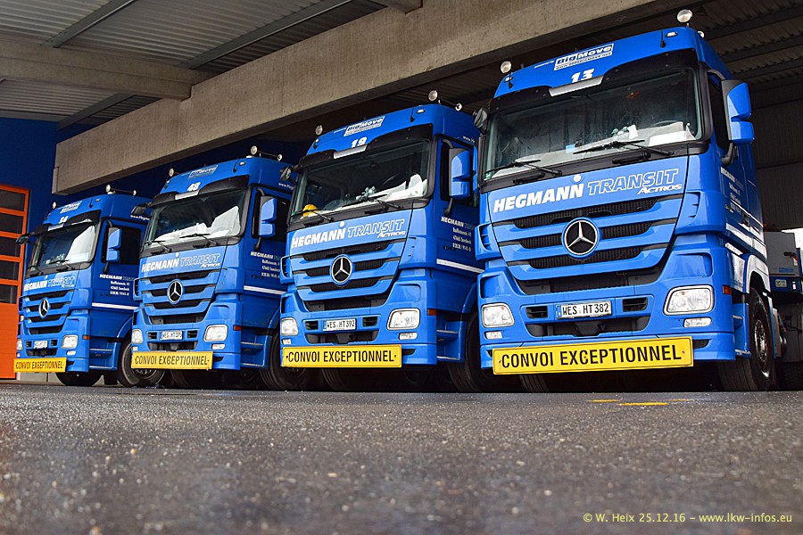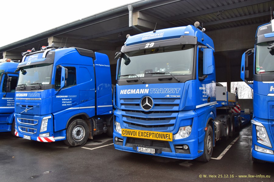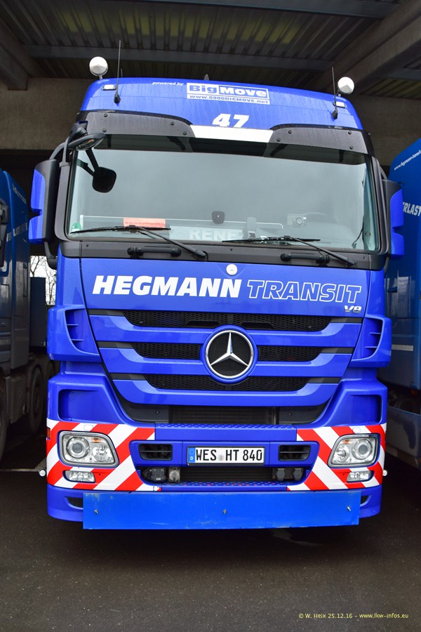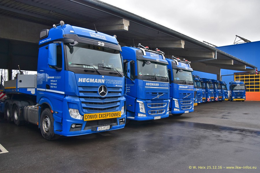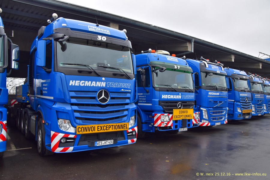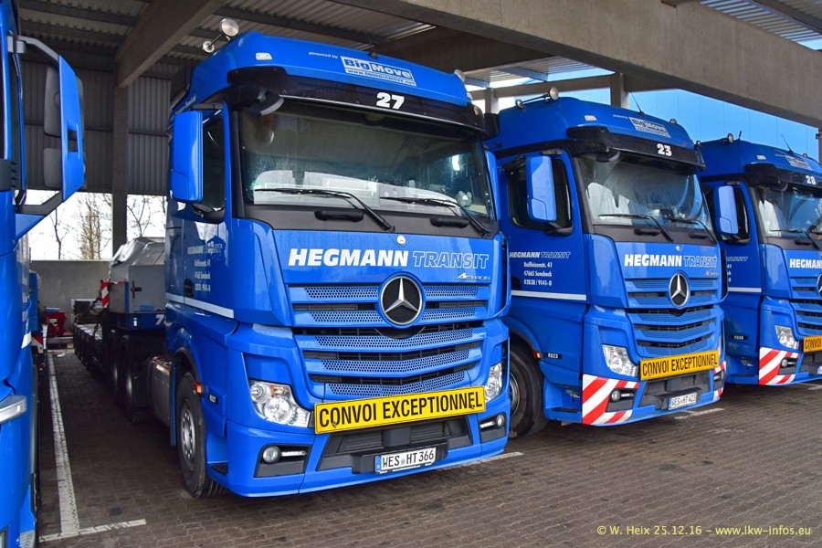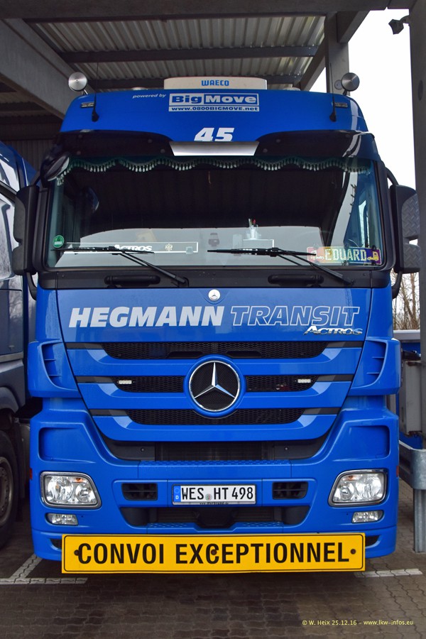 Wie in jedem Jahr habe ich Weihnachten wieder die Firma Hegmann Transit in Sonsbeck besucht. Und wie in fast jedem Jahr war auch das Wetter schlecht. Trotzdem gibt es viele schöne Bilder. Diesmal fehlten 5 LKW, ansonsten war alles zuhause. Bei den Begleitfahrzeugen gibt es einige neue aber sonst nichts Neues bei den Zugmaschinen.