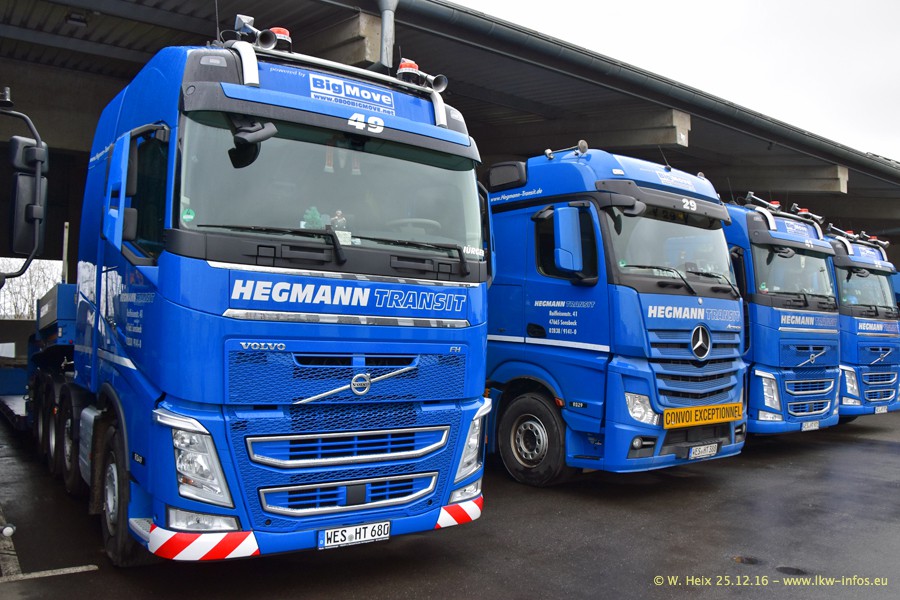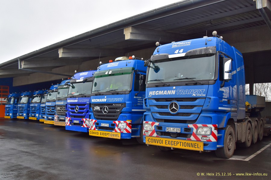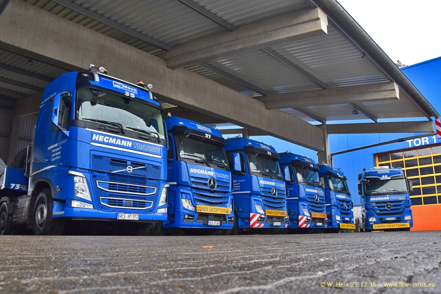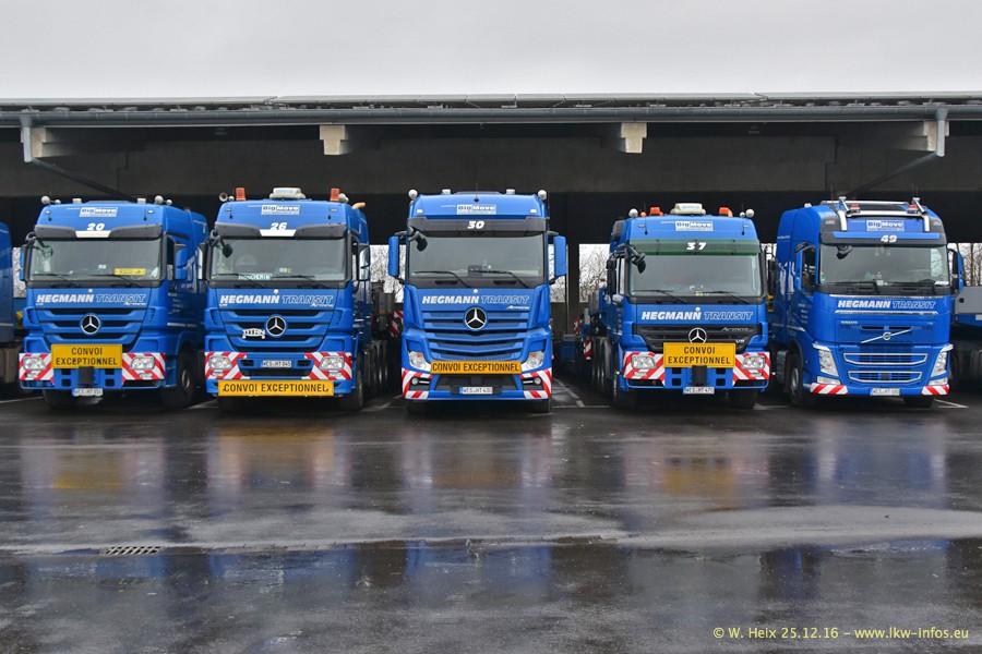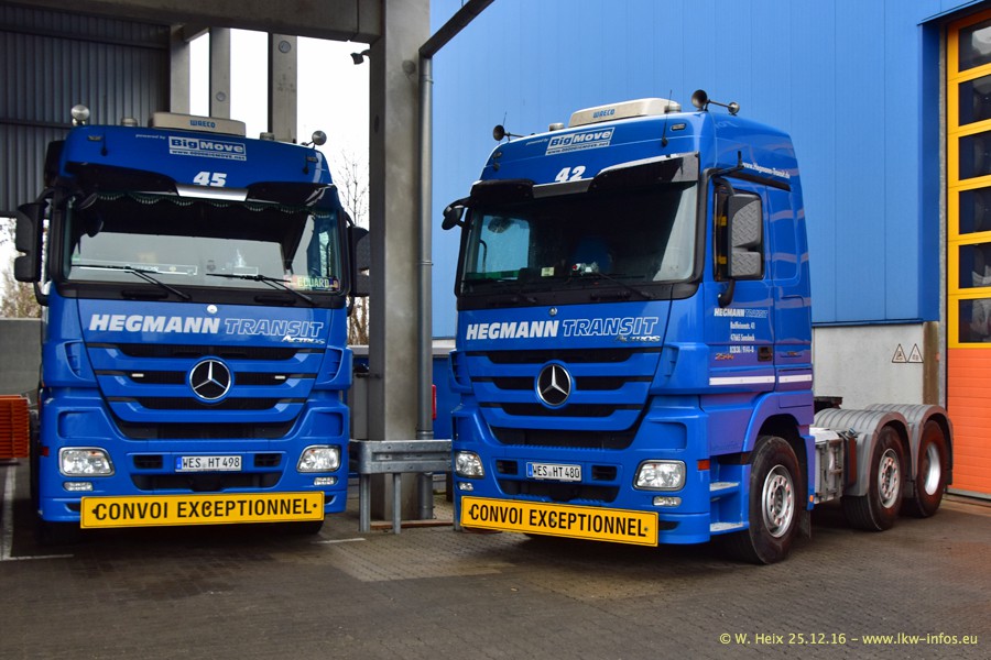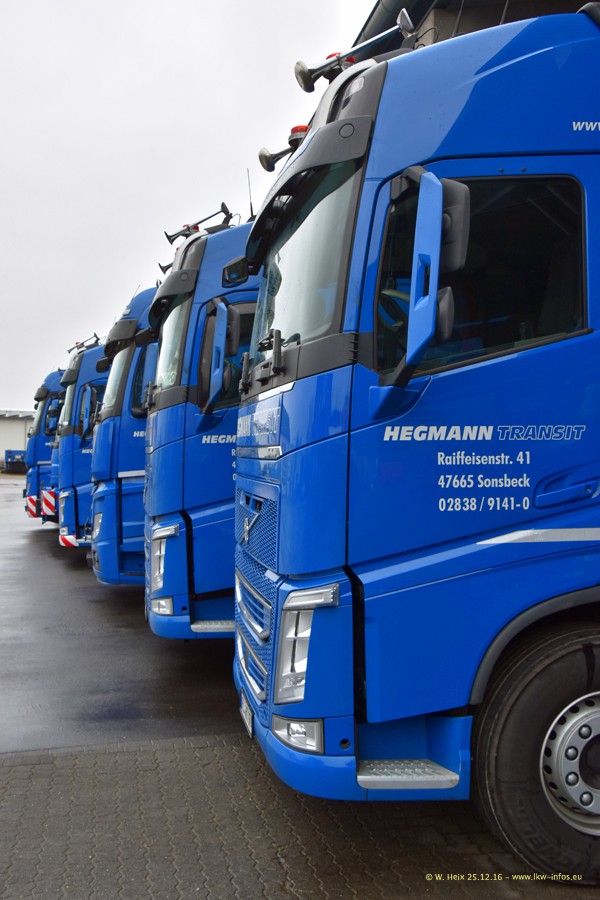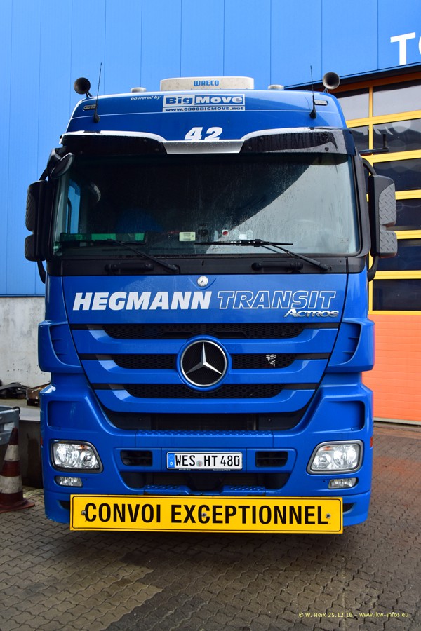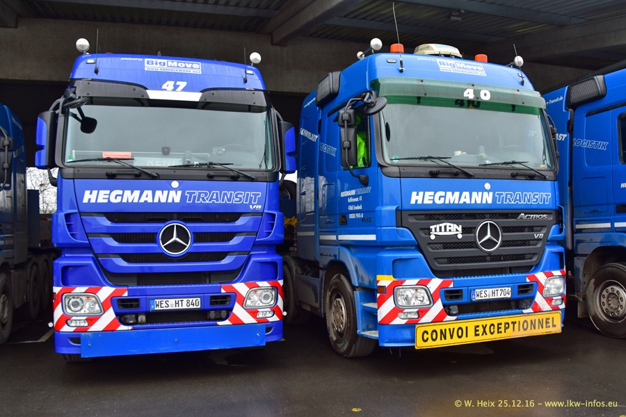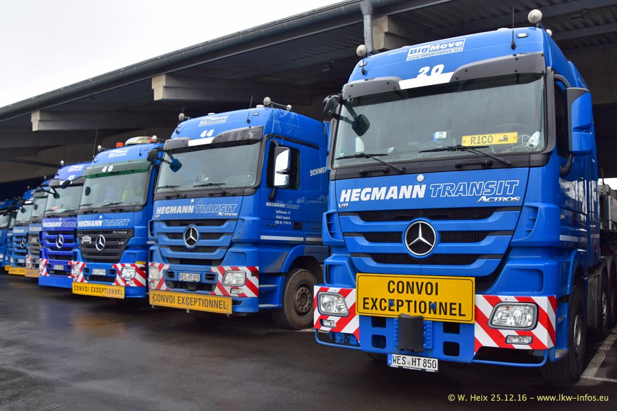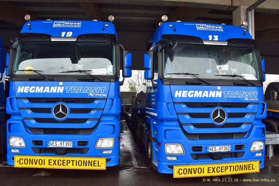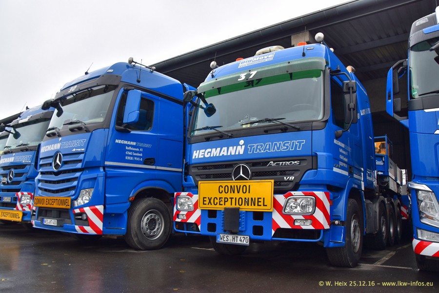 Wie in jedem Jahr habe ich Weihnachten wieder die Firma Hegmann Transit in Sonsbeck besucht. Und wie in fast jedem Jahr war auch das Wetter schlecht. Trotzdem gibt es viele schöne Bilder. Diesmal fehlten 5 LKW, ansonsten war alles zuhause. Bei den Begleitfahrzeugen gibt es einige neue aber sonst nichts Neues bei den Zugmaschinen.