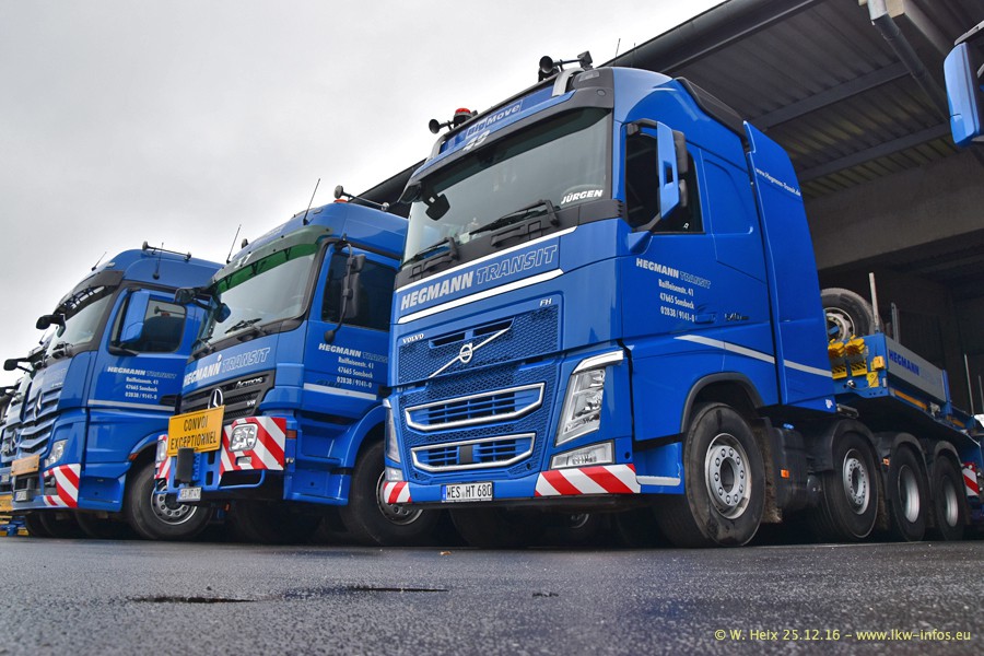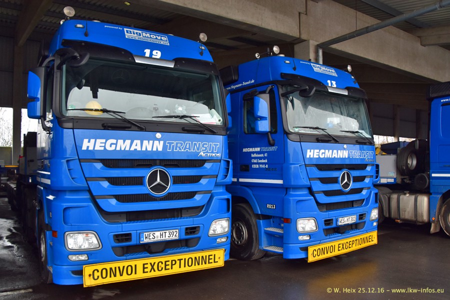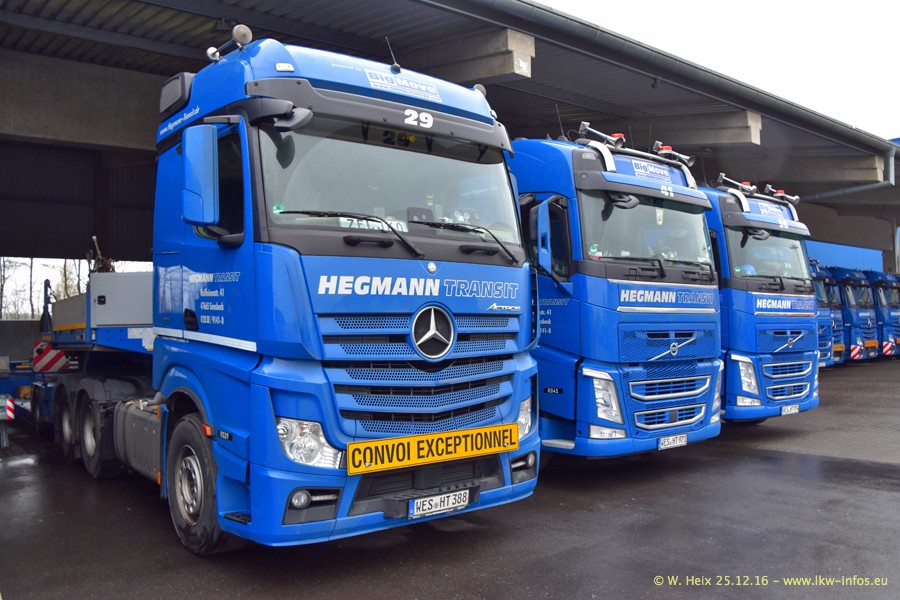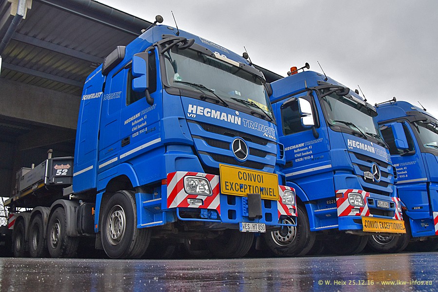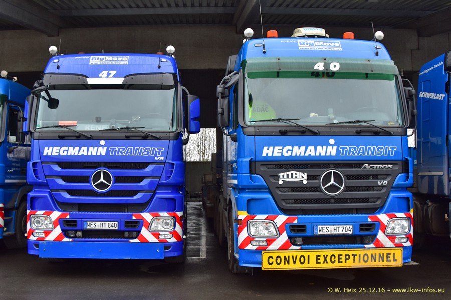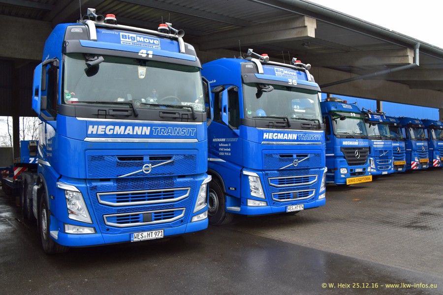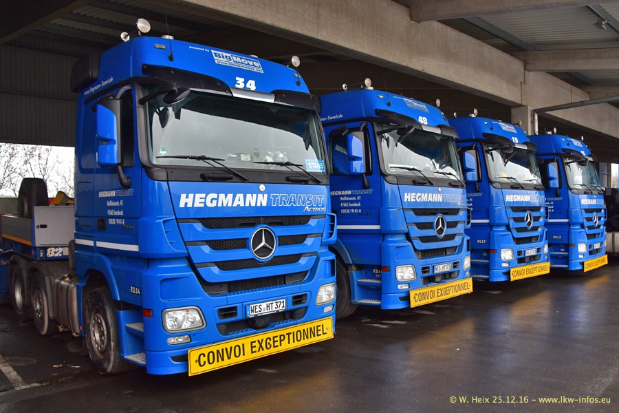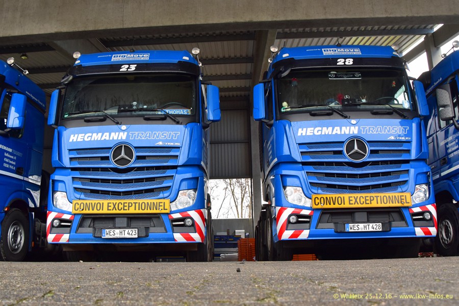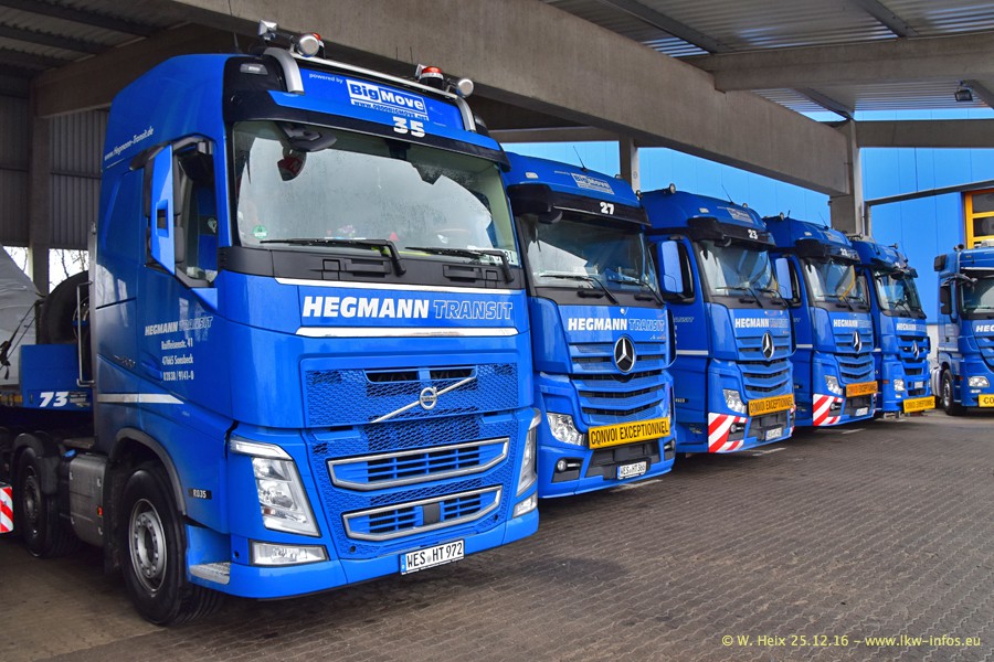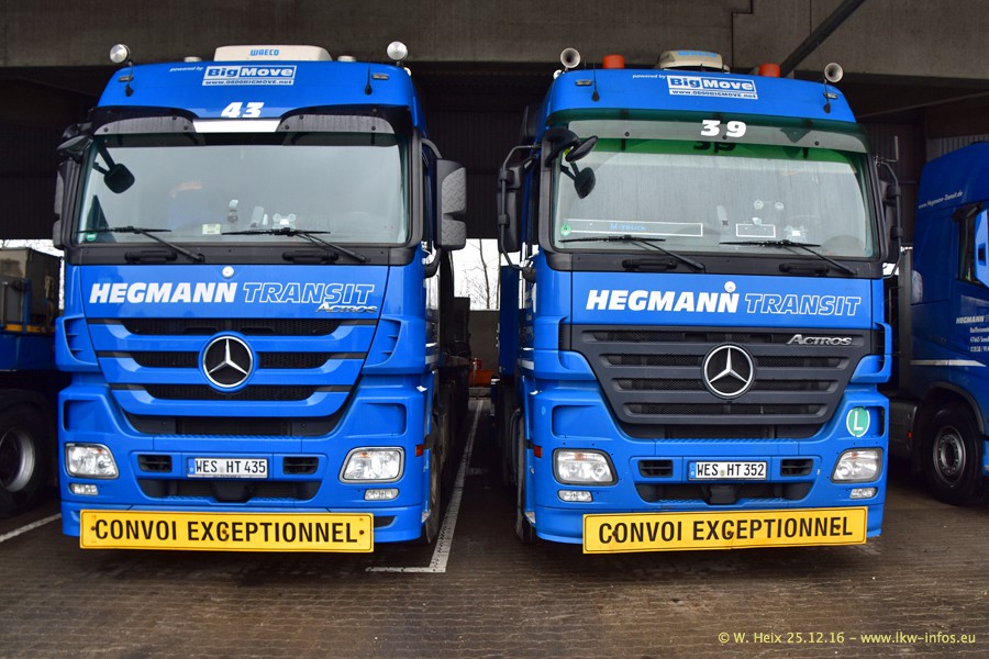 Wie in jedem Jahr habe ich Weihnachten wieder die Firma Hegmann Transit in Sonsbeck besucht. Und wie in fast jedem Jahr war auch das Wetter schlecht. Trotzdem gibt es viele schöne Bilder. Diesmal fehlten 5 LKW, ansonsten war alles zuhause. Bei den Begleitfahrzeugen gibt es einige neue aber sonst nichts Neues bei den Zugmaschinen.