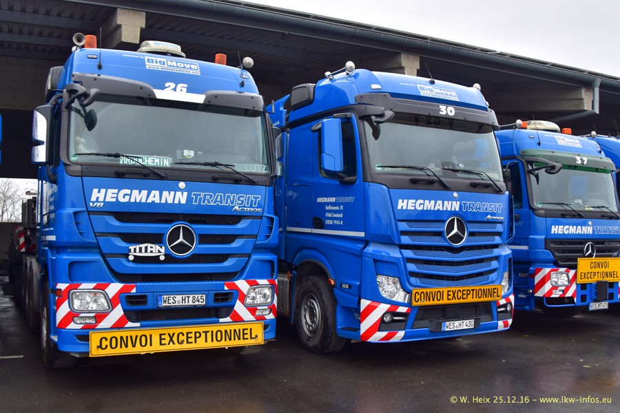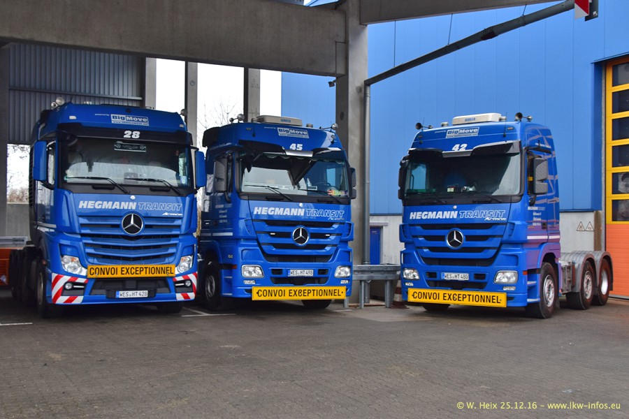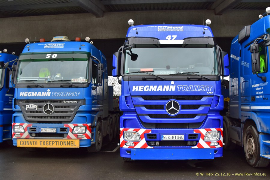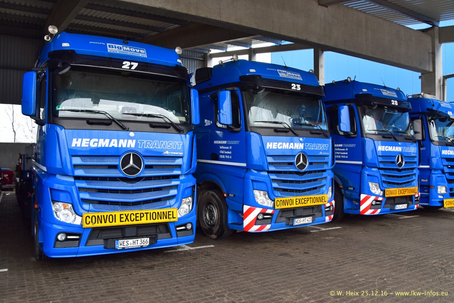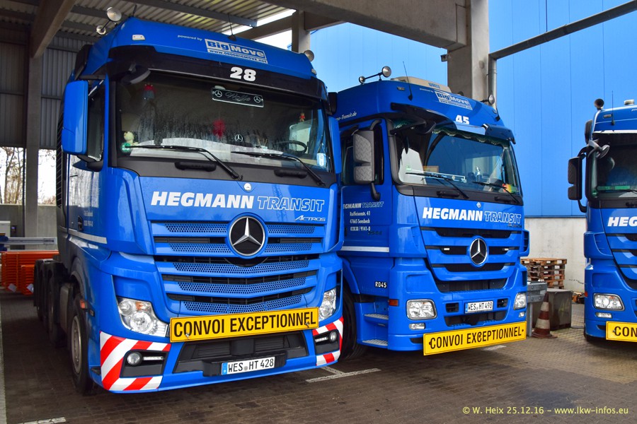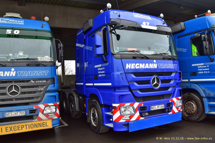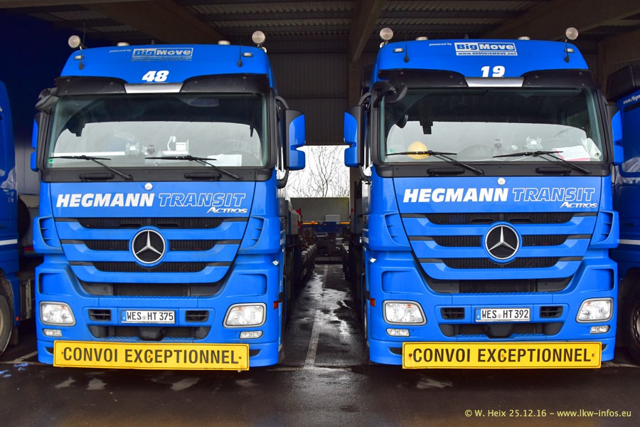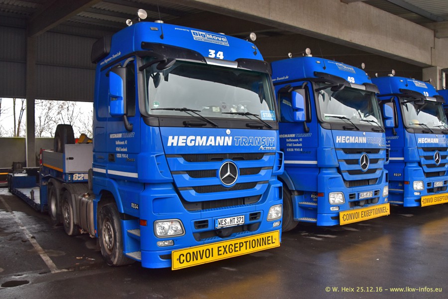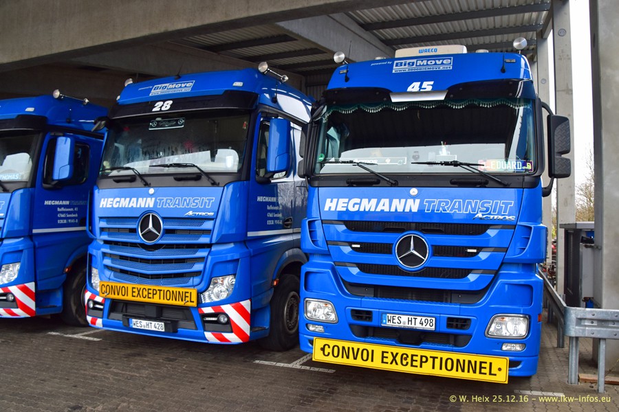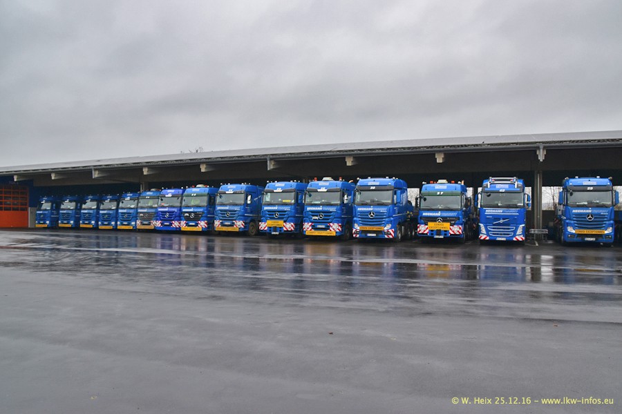 Wie in jedem Jahr habe ich Weihnachten wieder die Firma Hegmann Transit in Sonsbeck besucht. Und wie in fast jedem Jahr war auch das Wetter schlecht. Trotzdem gibt es viele schöne Bilder. Diesmal fehlten 5 LKW, ansonsten war alles zuhause. Bei den Begleitfahrzeugen gibt es einige neue aber sonst nichts Neues bei den Zugmaschinen.