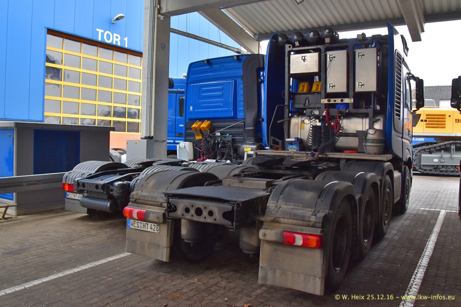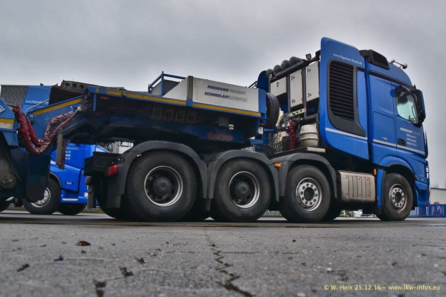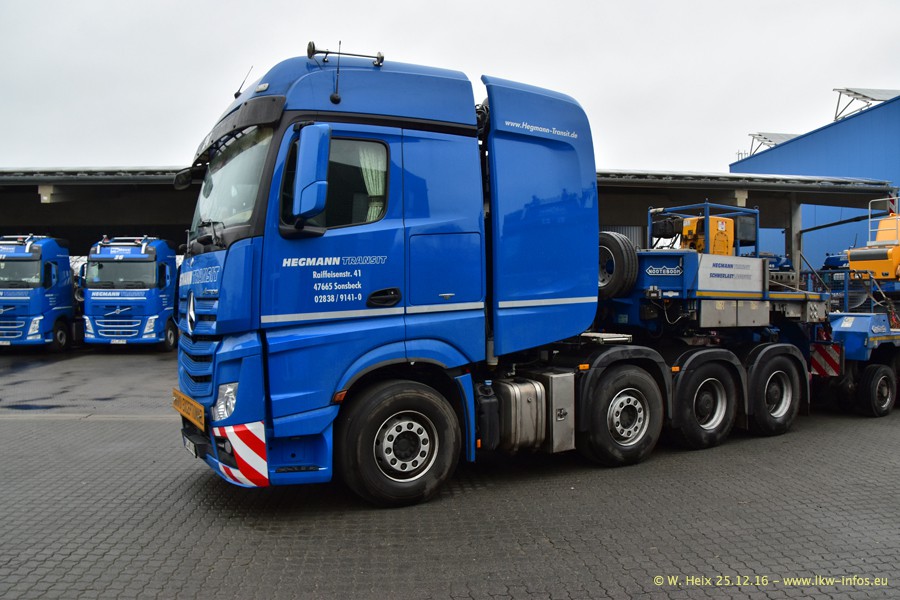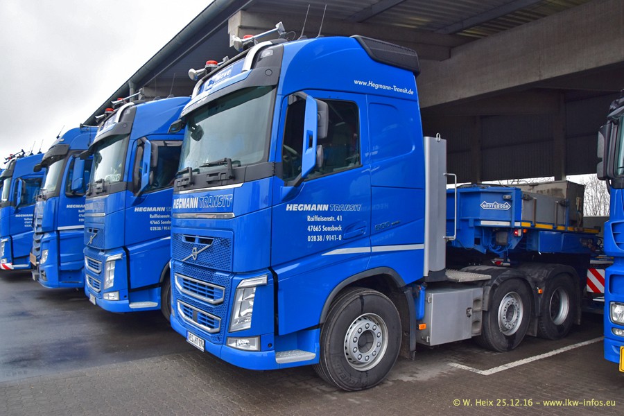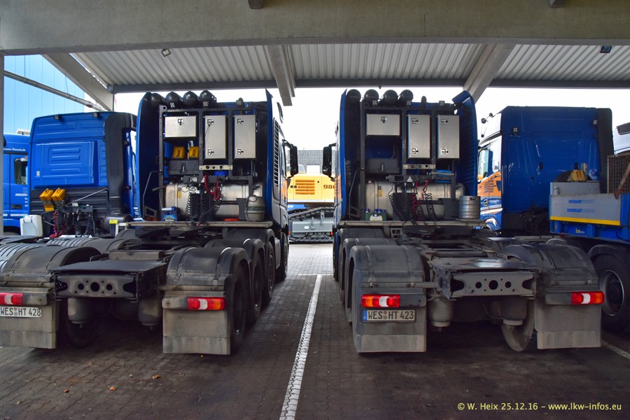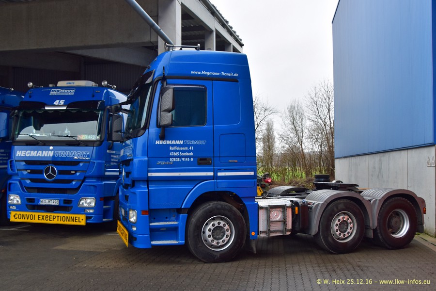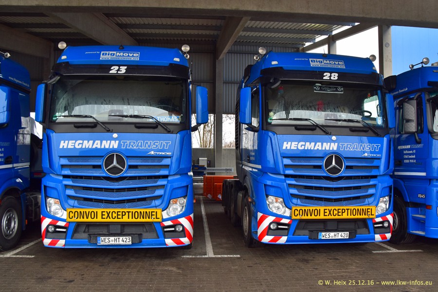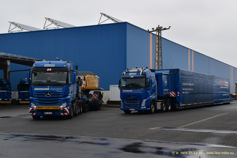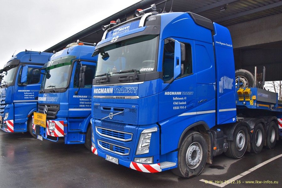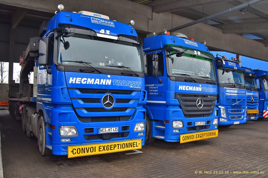 Wie in jedem Jahr habe ich Weihnachten wieder die Firma Hegmann Transit in Sonsbeck besucht. Und wie in fast jedem Jahr war auch das Wetter schlecht. Trotzdem gibt es viele schöne Bilder. Diesmal fehlten 5 LKW, ansonsten war alles zuhause. Bei den Begleitfahrzeugen gibt es einige neue aber sonst nichts Neues bei den Zugmaschinen.