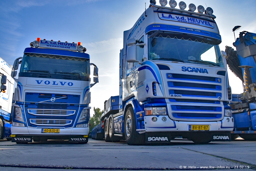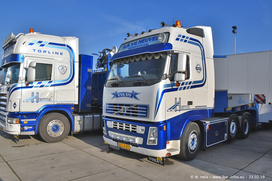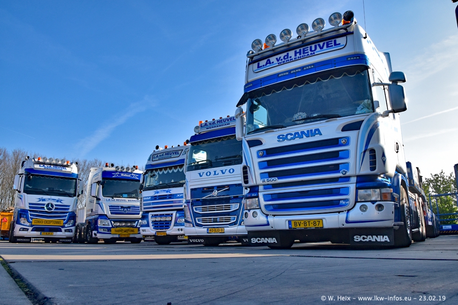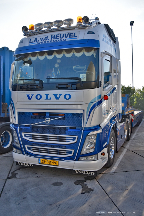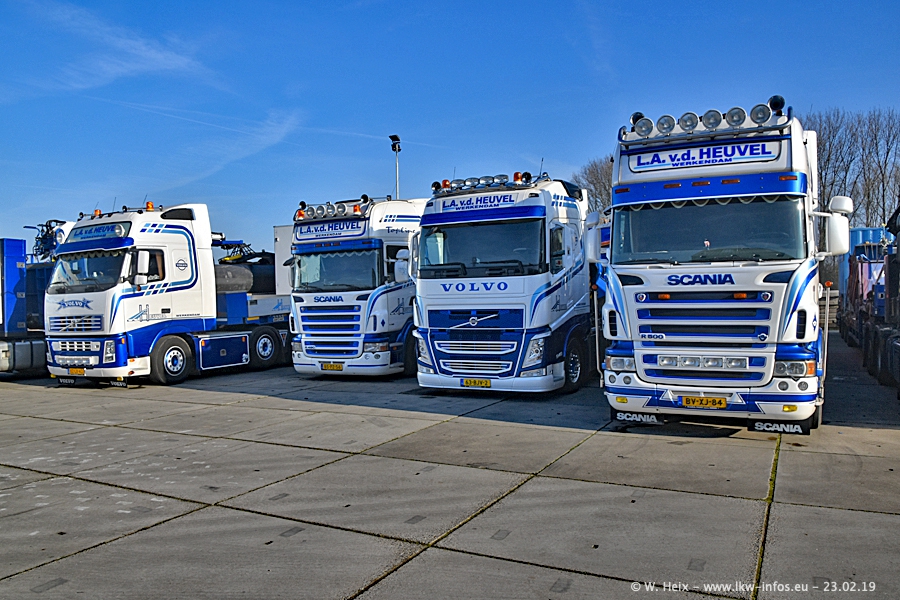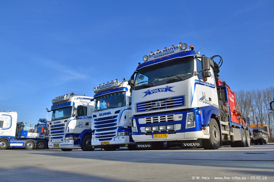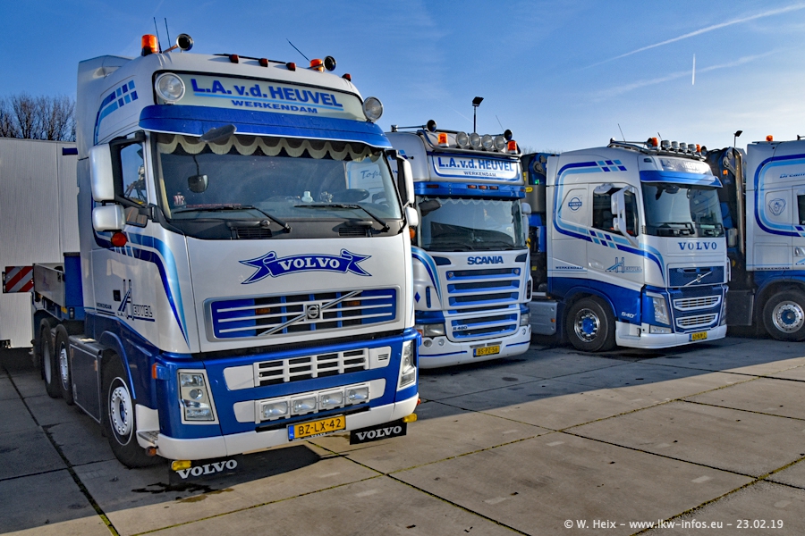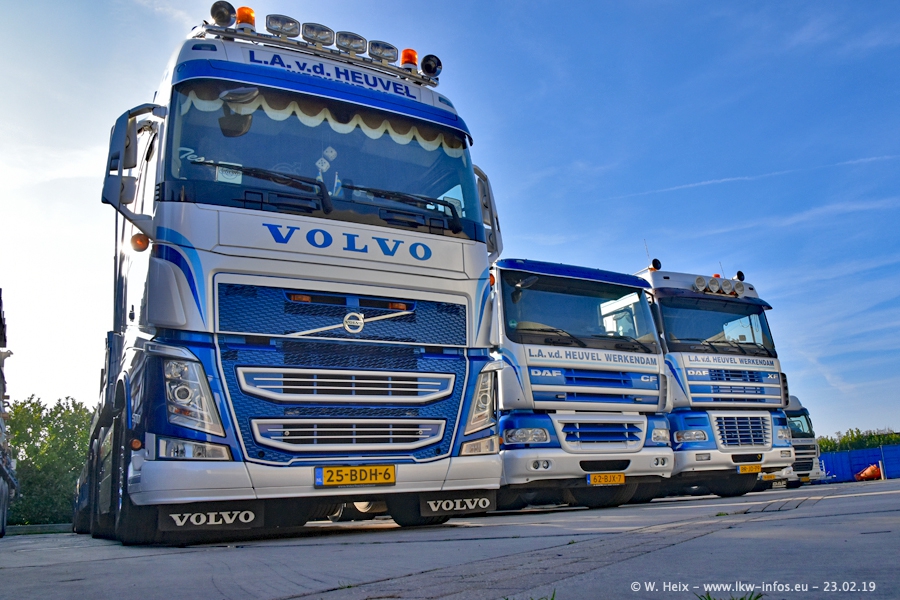 Mein letzter Besuch bei L.A. v.d. Heuvel war im November, das ist also mehr als 4 Jahre her. Viele der bekannten Zugmaschinen und Auflieger gibt es noch. Es wurde aber natürlich auch in neue Fahrzeuge investiert. Fast alle Fahrzeuge waren zuhause. Zu den ketzten neuen LKW gehören der DAF XF Euro 6 (zu sehen am Ende der Galerie) und ein VOLVO FH 4 Euro 6 mit Ladekran.
