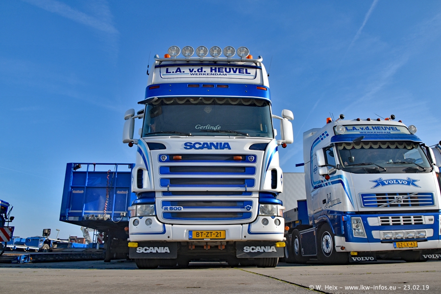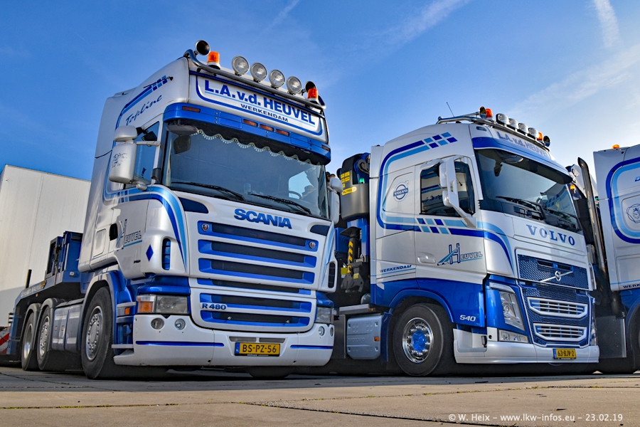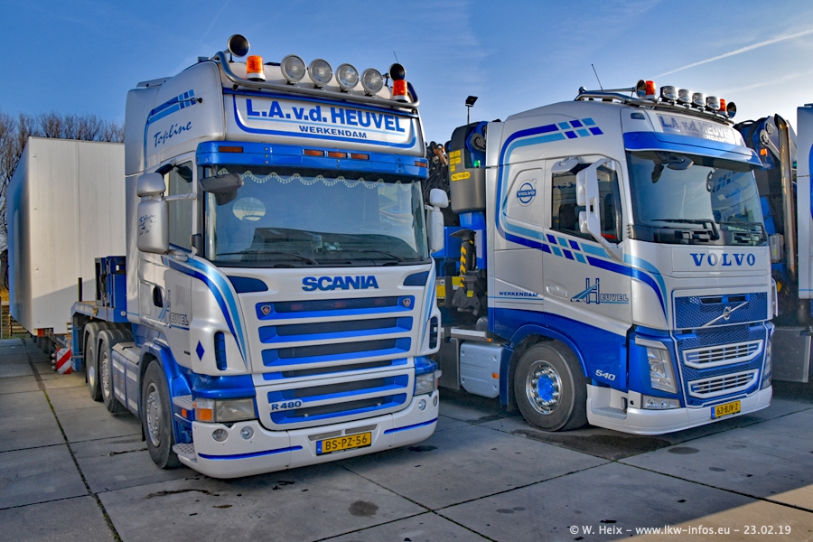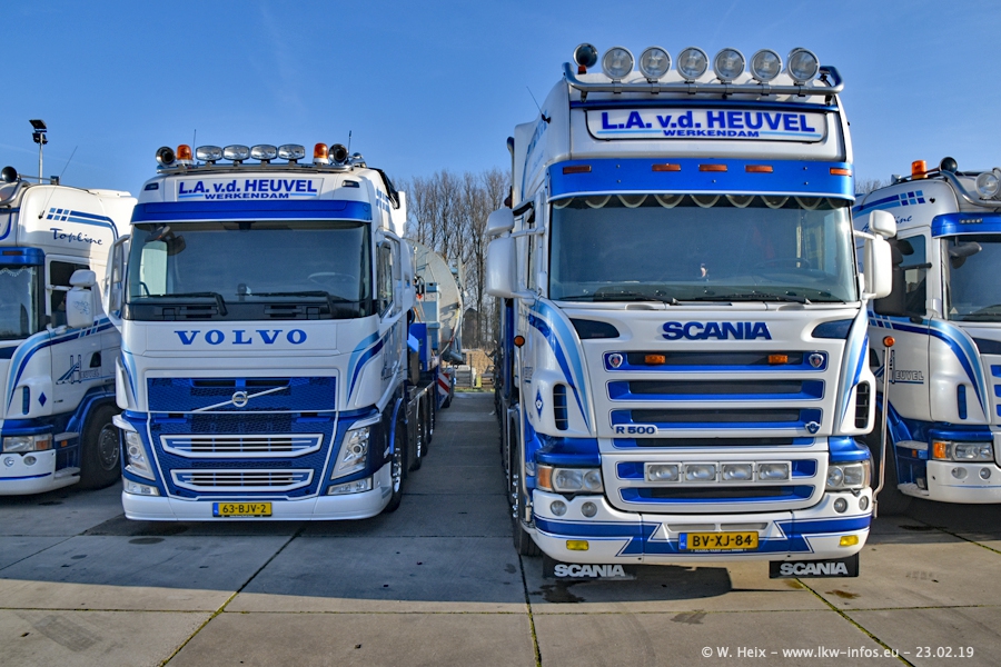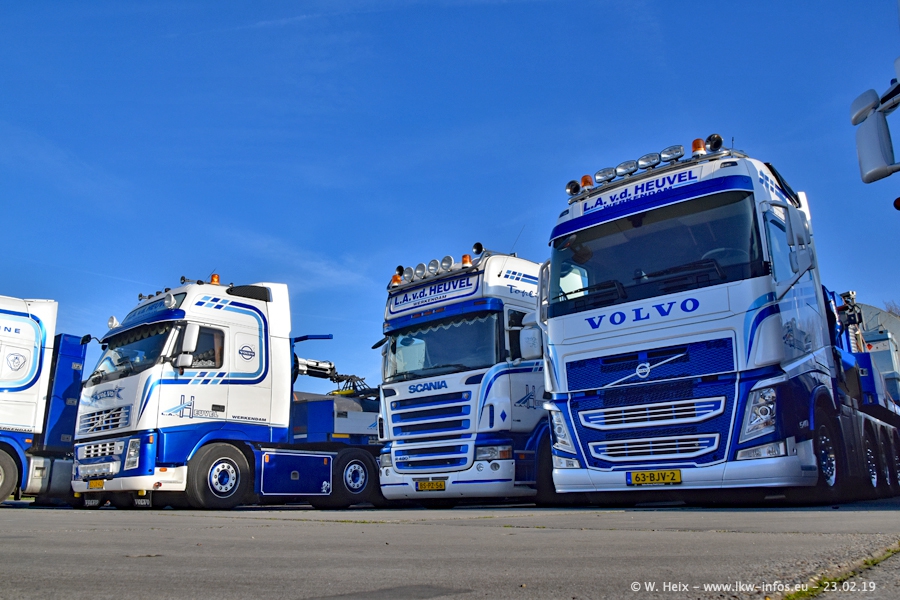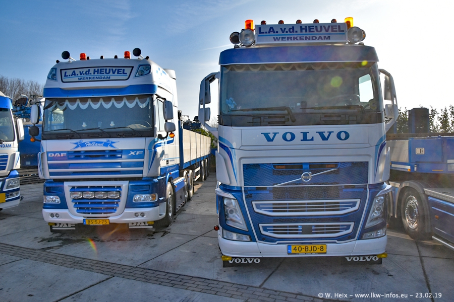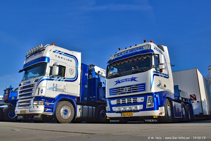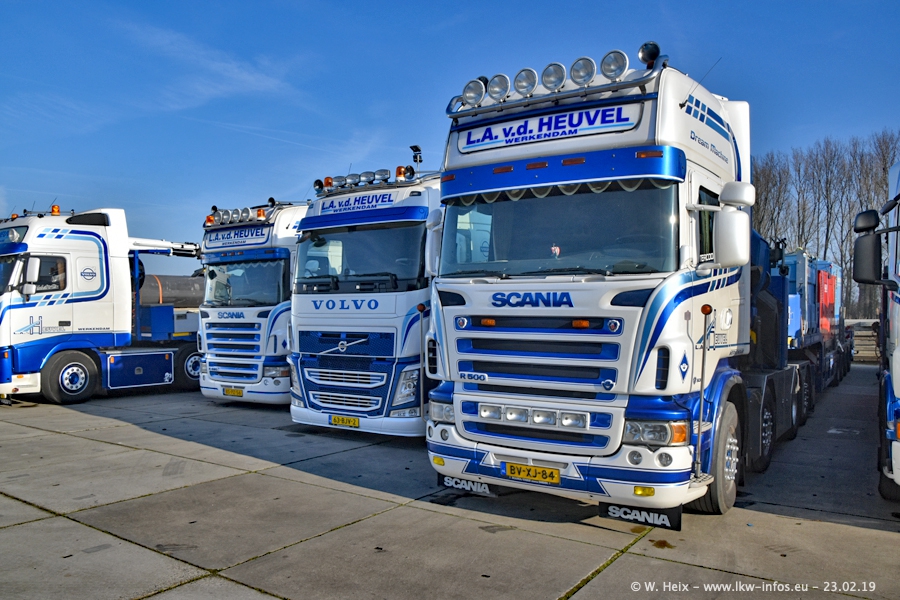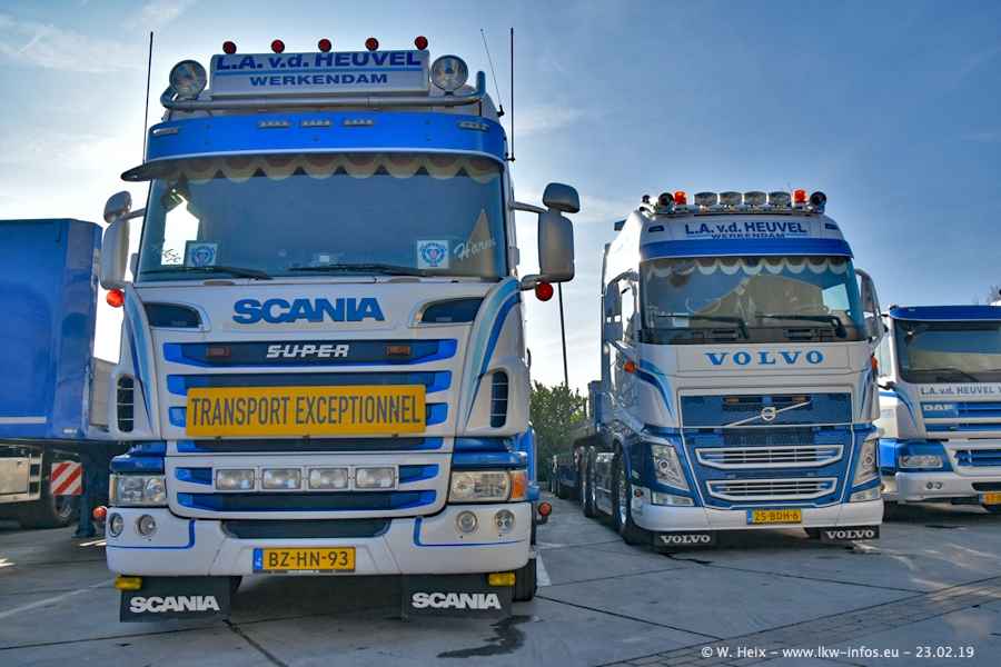 Mein letzter Besuch bei L.A. v.d. Heuvel war im November, das ist also mehr als 4 Jahre her. Viele der bekannten Zugmaschinen und Auflieger gibt es noch. Es wurde aber natürlich auch in neue Fahrzeuge investiert. Fast alle Fahrzeuge waren zuhause. Zu den ketzten neuen LKW gehören der DAF XF Euro 6 (zu sehen am Ende der Galerie) und ein VOLVO FH 4 Euro 6 mit Ladekran.