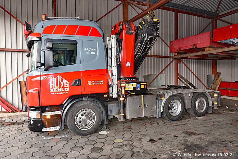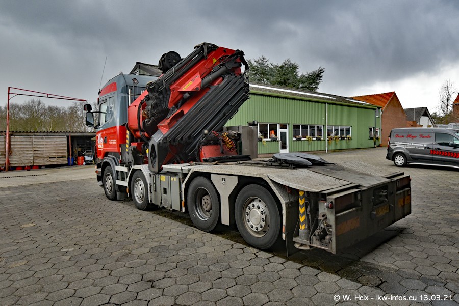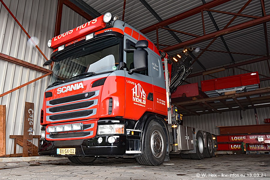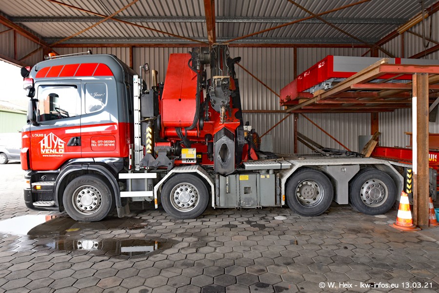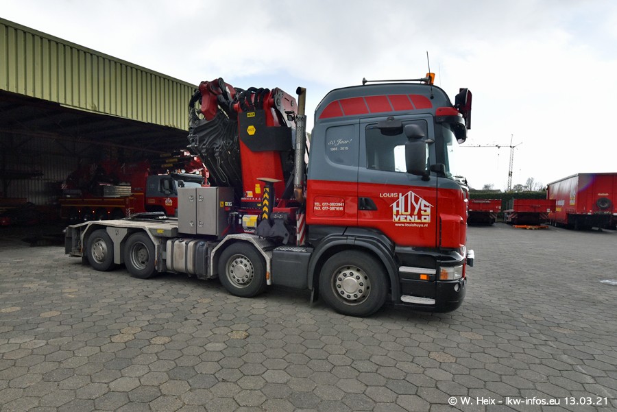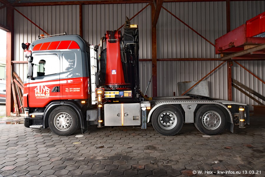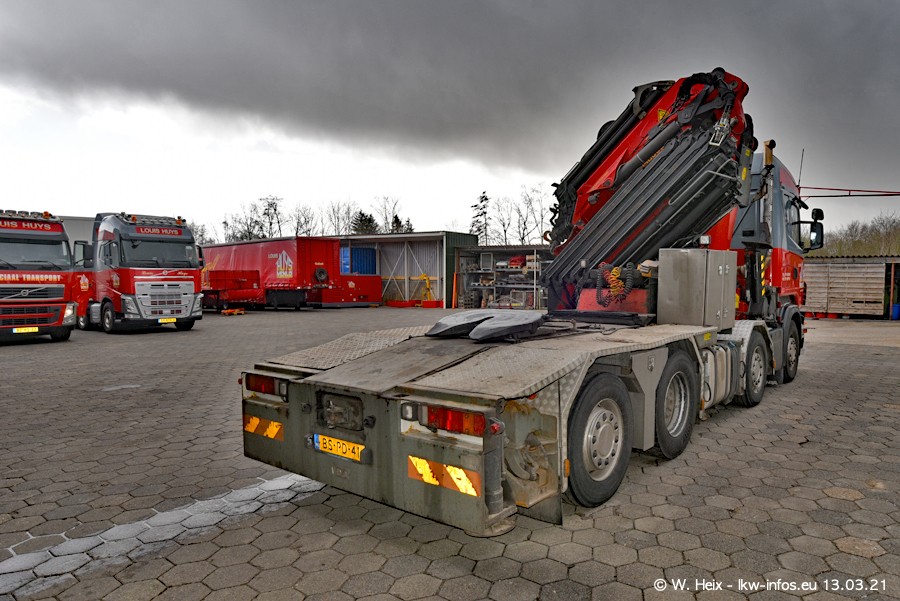 Der Fuhrpark der Firma Huys besteht aktuell aus 11 LKW dazu kommt ein Kran von Terex-Demag. Vor wenigen Tagen hat die Firma Huys einen neuen SCANIA R 500 NextGen mit Ladekran bekommen, was auch der Anlass für meinen ersten Besuch war. Fast alle Fahrzeuge waren zuhause, aber das Wetter war nicht so optimal. Ein weiterer Besuch bei besseren Bedingungen ist schon geplant ....