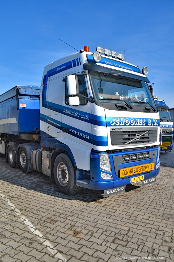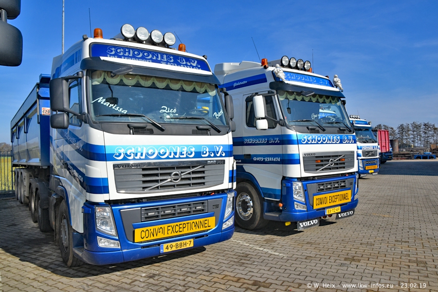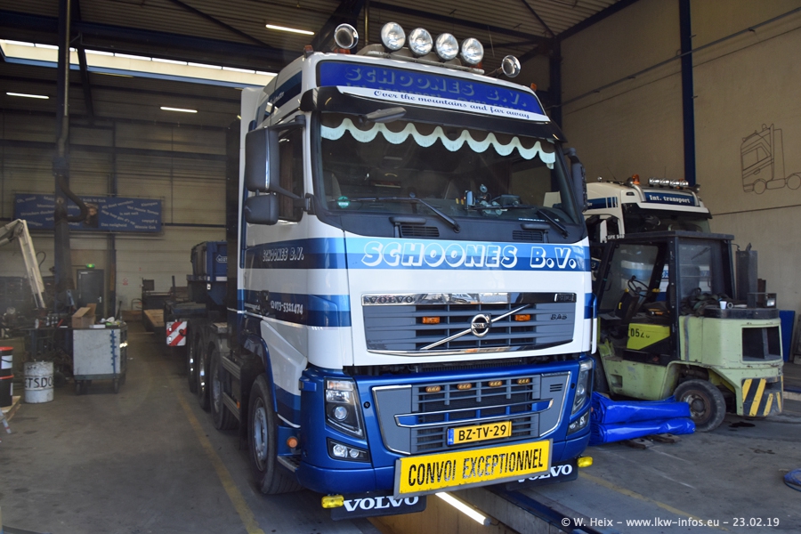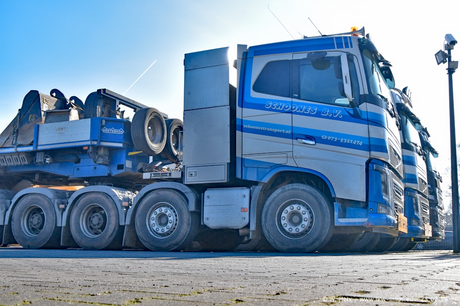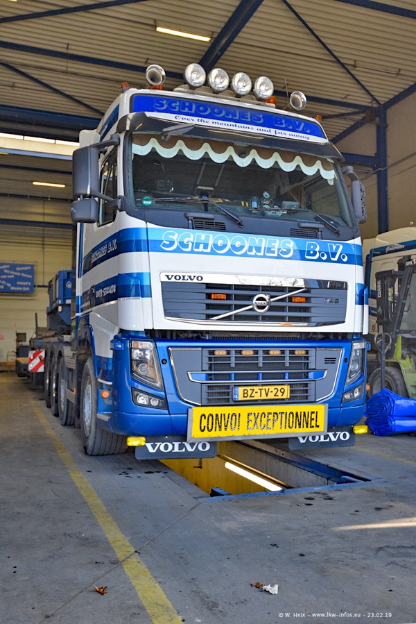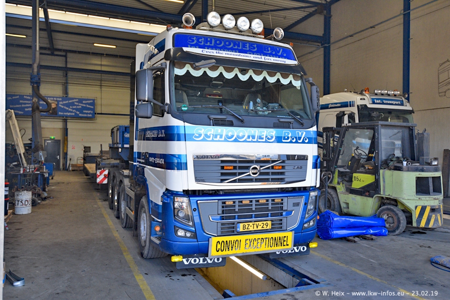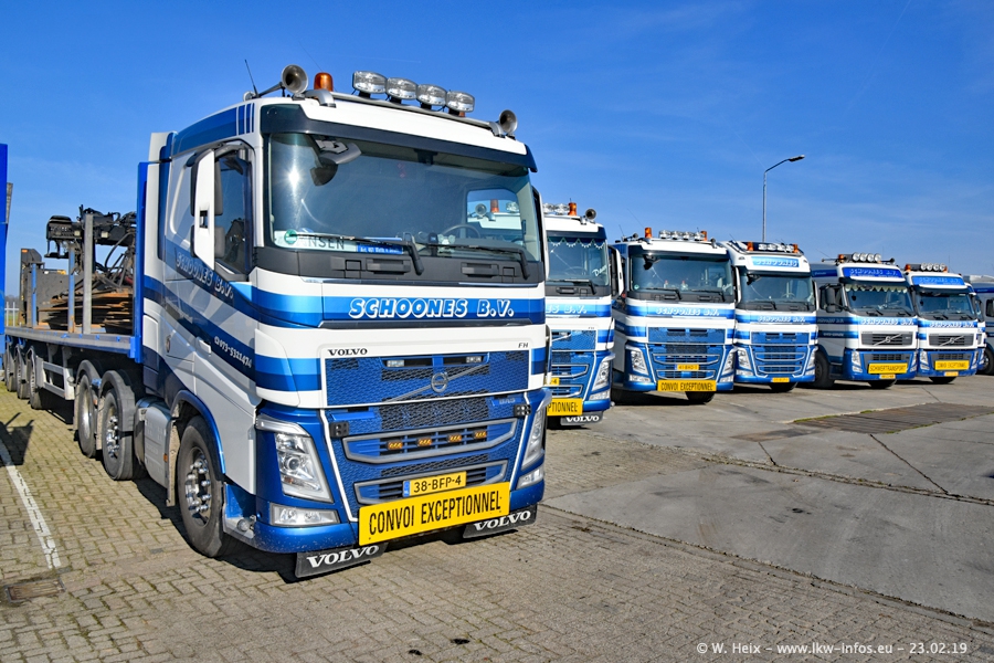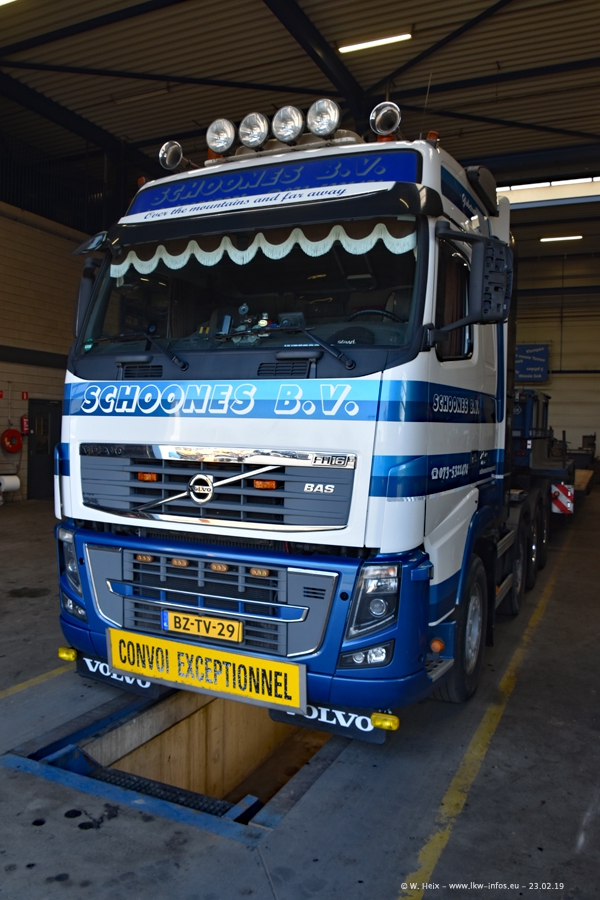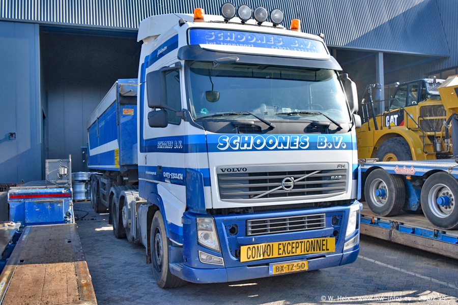 Bei Schoones war ich seit 5 Jahren nicht mehr. Man erkennnt das Gelände kaum wieder. Alte Gebäude wurdem abgerissen und eine weitere neue Halle wurde gebaut und das Gelände wurde weiter vergrößert. Inzwischen gibtt es fast nur noch LKW von VOLVO, darunter eine ganze Reihe Schwerlastzugmaschinen mit vier und fünf Achsen.