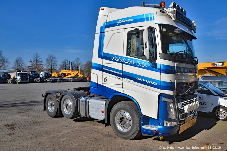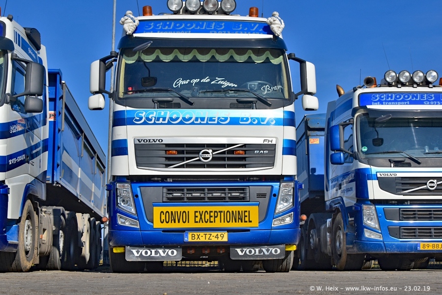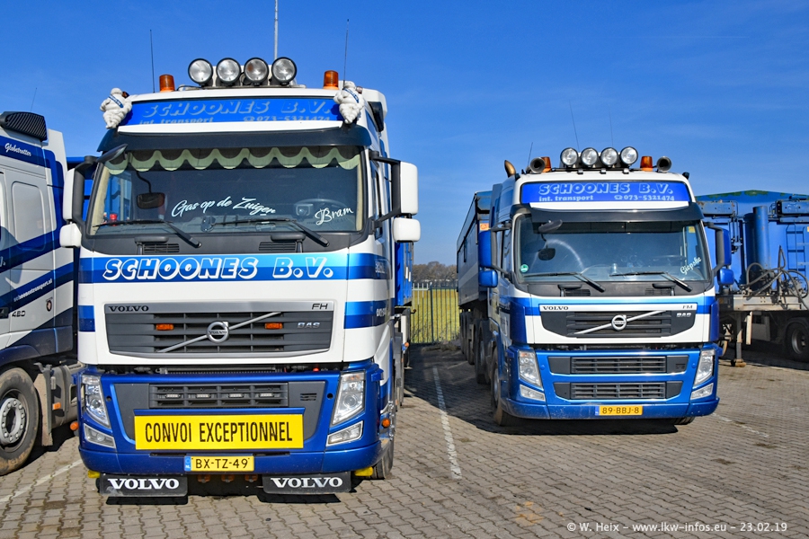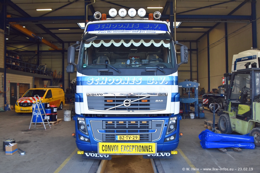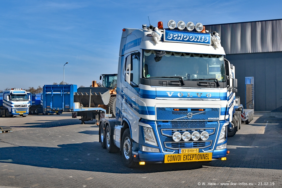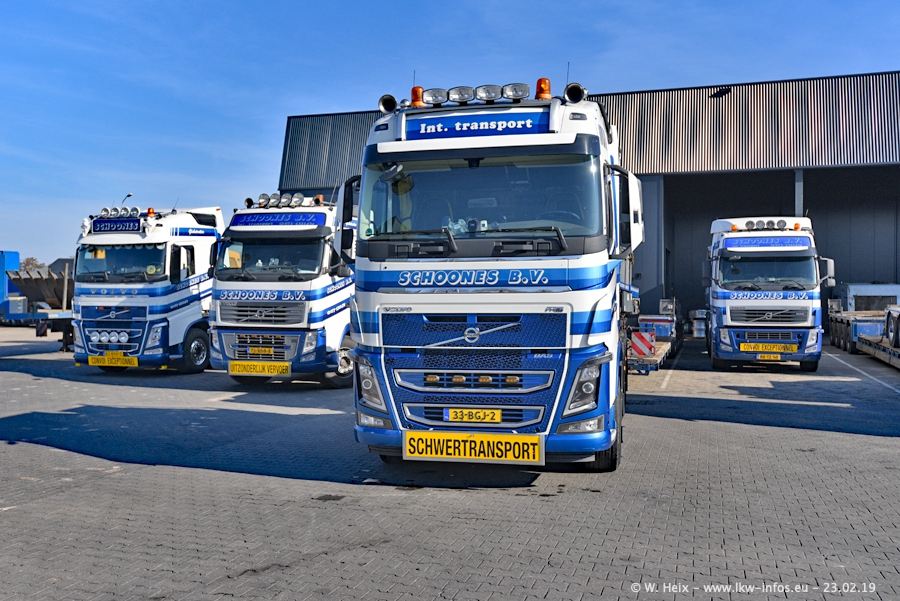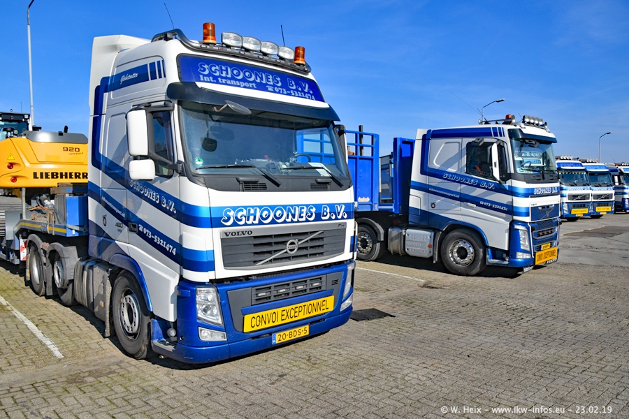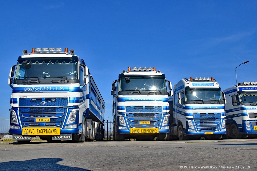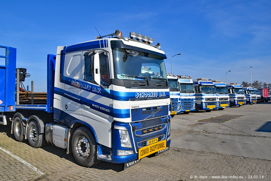 Bei Schoones war ich seit 5 Jahren nicht mehr. Man erkennnt das Gelände kaum wieder. Alte Gebäude wurdem abgerissen und eine weitere neue Halle wurde gebaut und das Gelände wurde weiter vergrößert. Inzwischen gibtt es fast nur noch LKW von VOLVO, darunter eine ganze Reihe Schwerlastzugmaschinen mit vier und fünf Achsen.