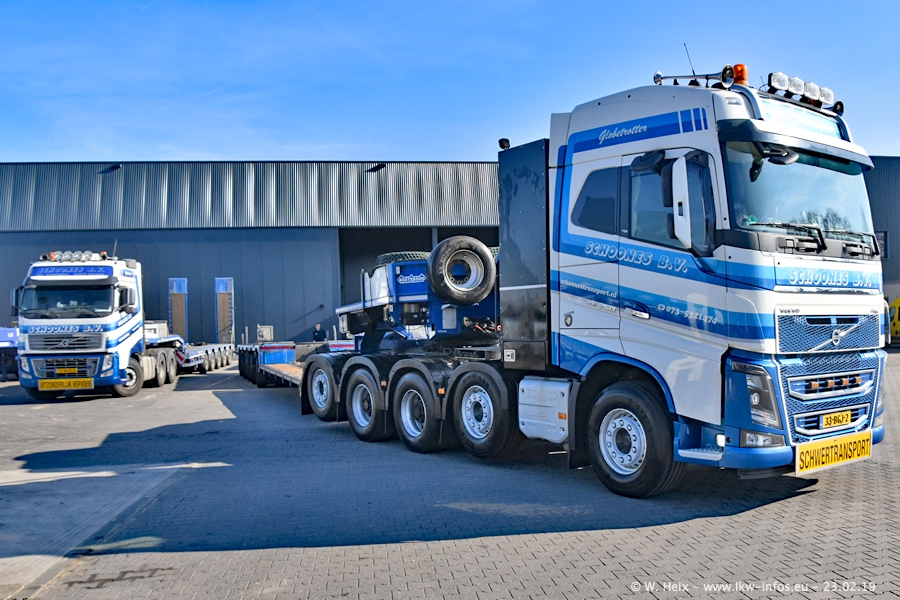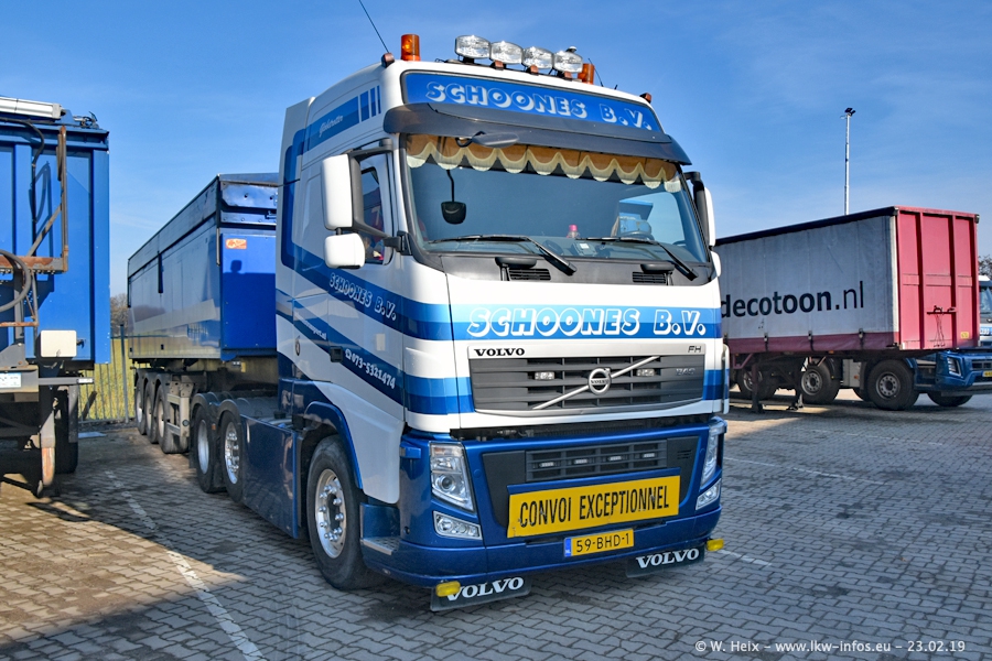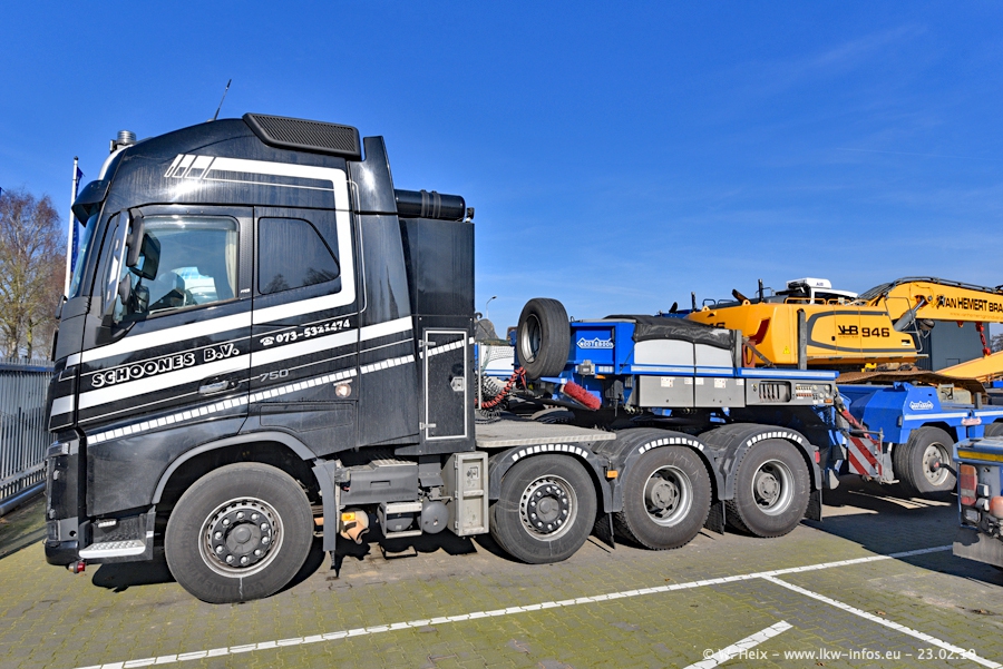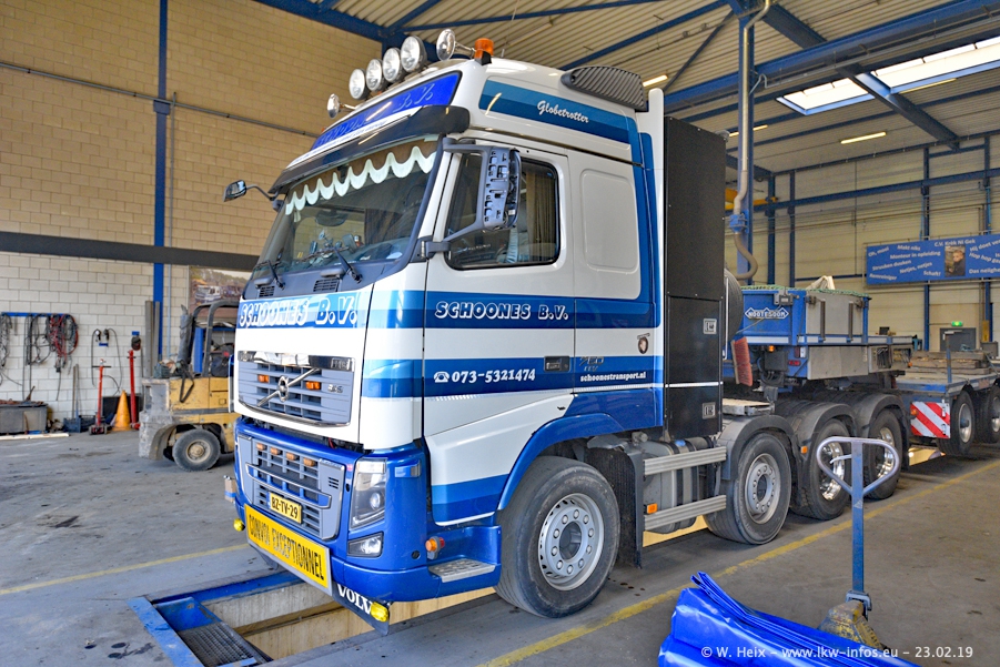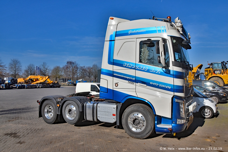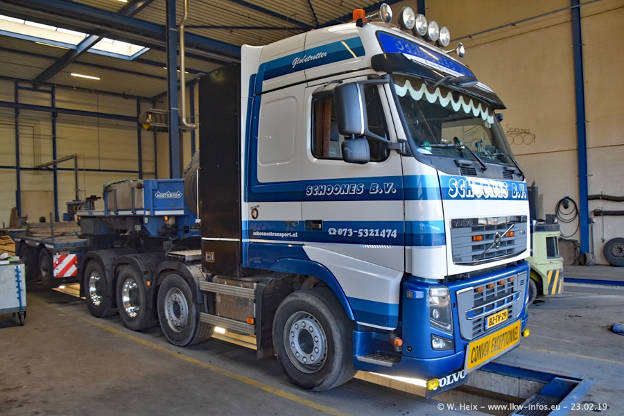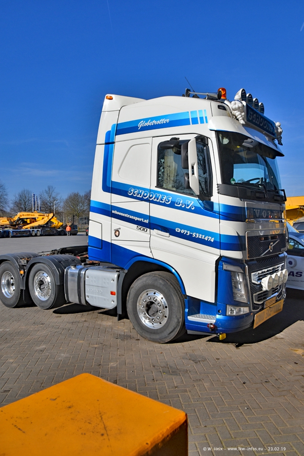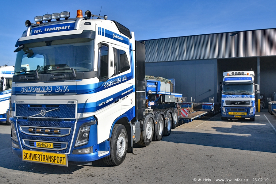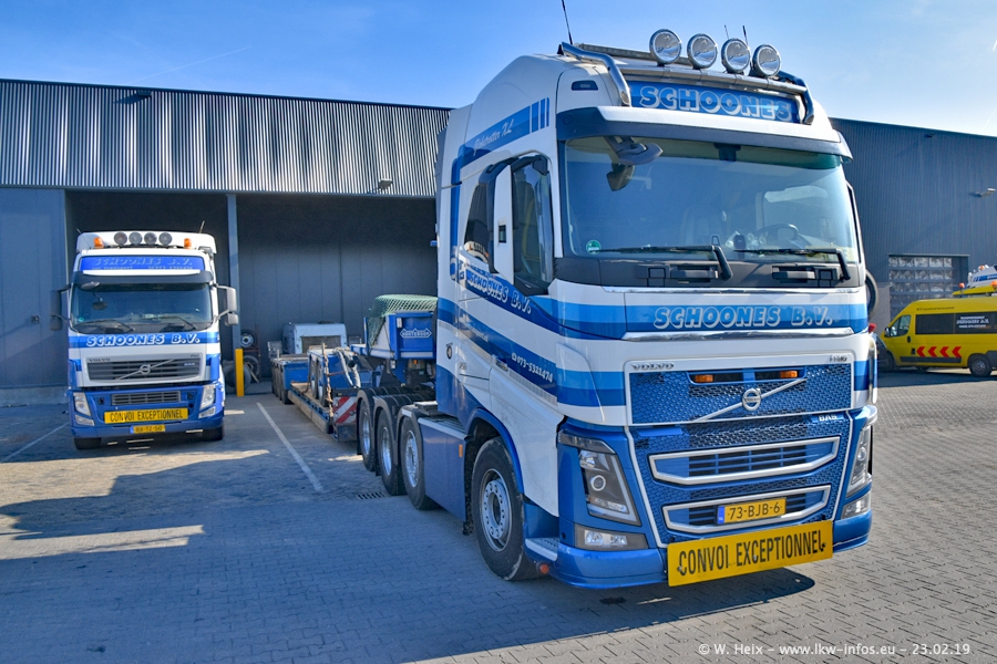 Bei Schoones war ich seit 5 Jahren nicht mehr. Man erkennnt das Gelände kaum wieder. Alte Gebäude wurdem abgerissen und eine weitere neue Halle wurde gebaut und das Gelände wurde weiter vergrößert. Inzwischen gibtt es fast nur noch LKW von VOLVO, darunter eine ganze Reihe Schwerlastzugmaschinen mit vier und fünf Achsen.