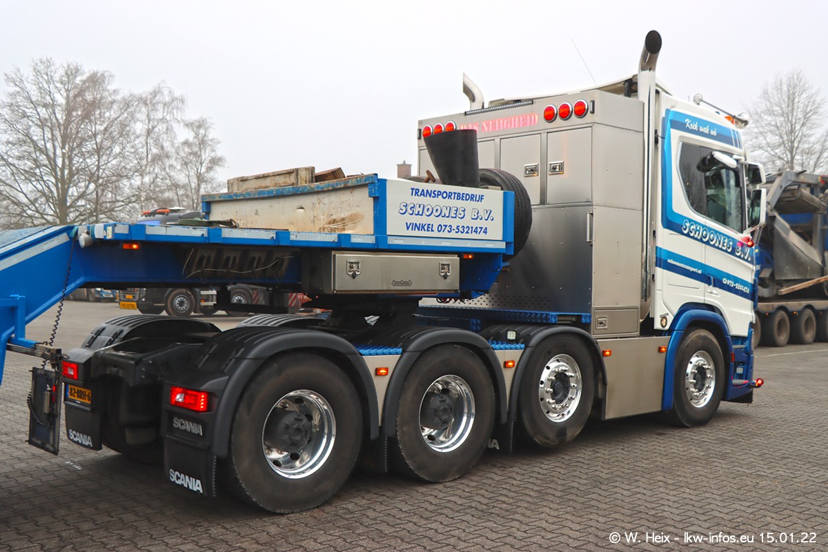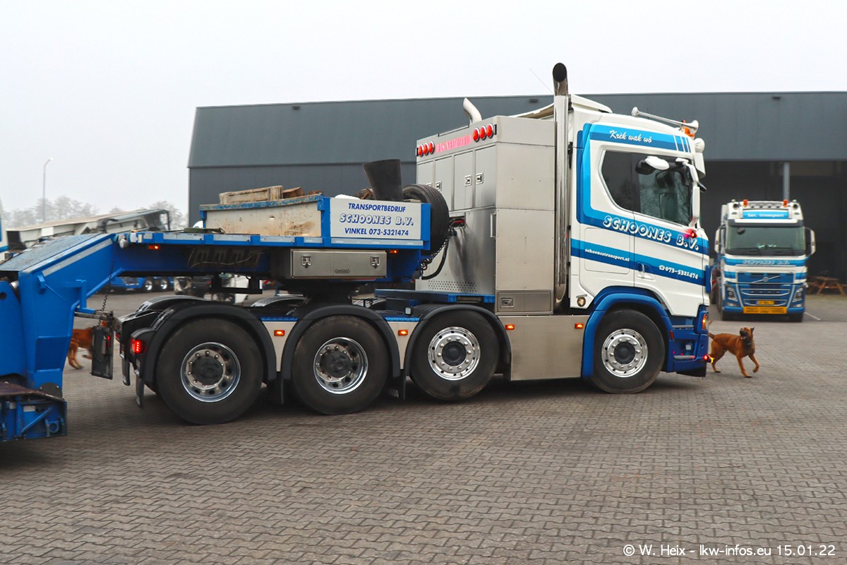 Diesmal hatte ich Glück, denn der SCANIA R 650 V8 NextGen 8x4 stand auf dem Hof. Das ist der erste SCANIA bei Schonnes und seit April 2021 im Fuhrpark. Spontan war auch ein kleines Fotoshooting möglich: auf dem Gelände und auf der Straße außerhalb. Bedingt durch das schlechte Wetter der letzten Wochen waren nur einige LKW gewaschen. Trotz des kalten nebligen Wetters konnte ich viele schöne Fotos machen. Ein Teil der Fahrzeuge war noch unterwegs, aber die sind vielleicht beim nächstem mal dann zuhause.