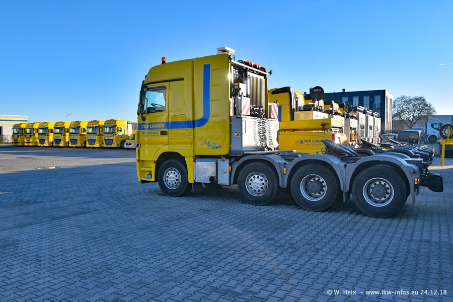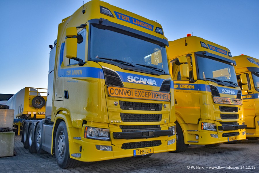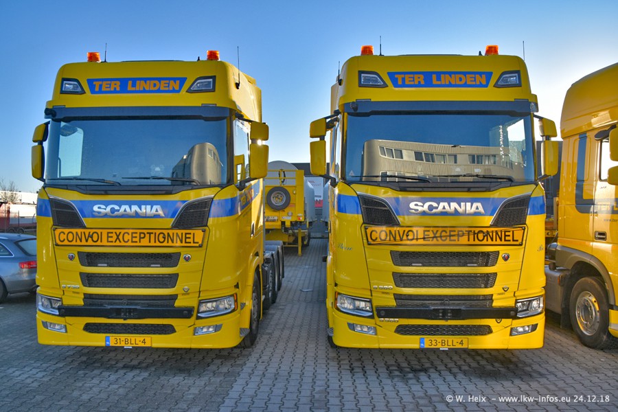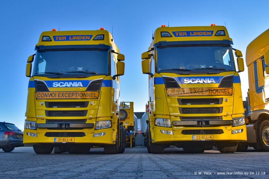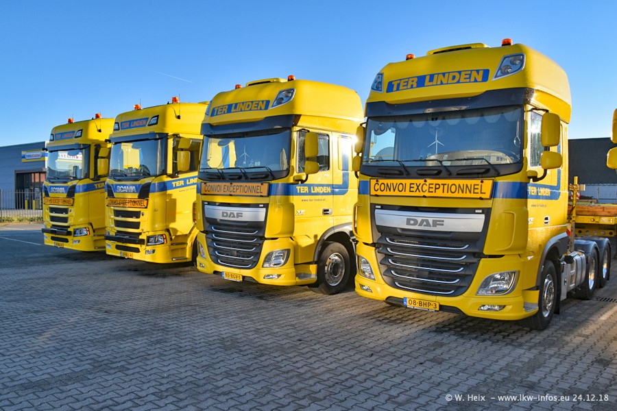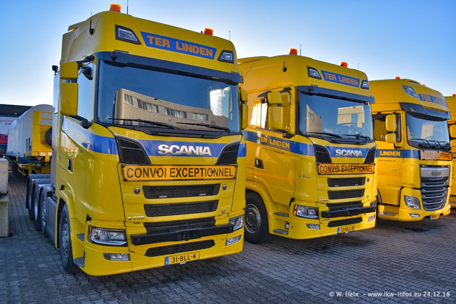 Bei Ter Linden in Doetinchem war ich seit über 7 Jahren nicht mehr. Und in den letzten Jahren habe ich "untwerwegs" auch nur wenige Fotos von den Fahrzeugen gemacht. Entsprechend viele neue Fahrzeuge und Bilder gibt es vom heutigen Besuch. Neu für mich sind alle DAF XF Euro 6 und New XF Euro 6, die drei VOLVO FH16 750 Euro 6 und die beiden SCANIA S V8 NextGen. Der S 580 V8 wurde im Dezember an Ter Linden geliefert und der S 730 V8 ist erst in dieser Woche gekommen. Beide SCANIA sind die ersten des Herstellers seit Jahren im Fuhrpark von Ter Linden. Von den aktuell 22 LKW waren 20 zuhause. Im Janaur kommen dann die nächsten beiden neuen Zugmaschinen...