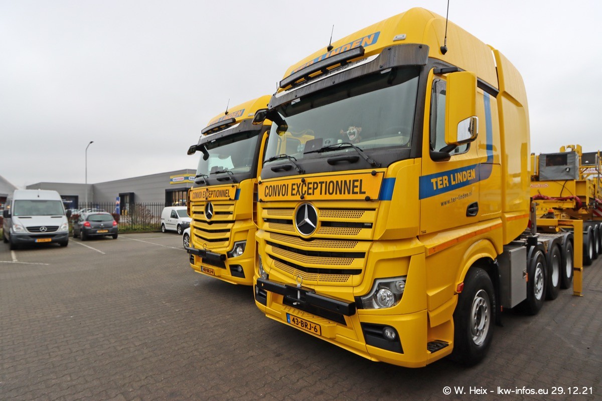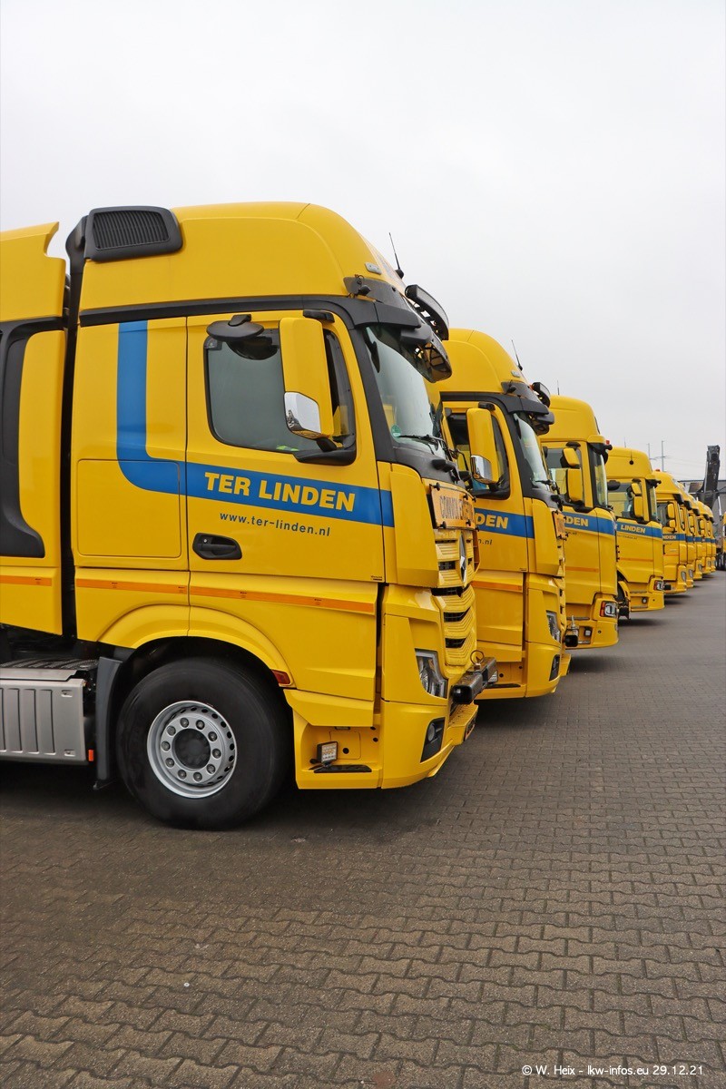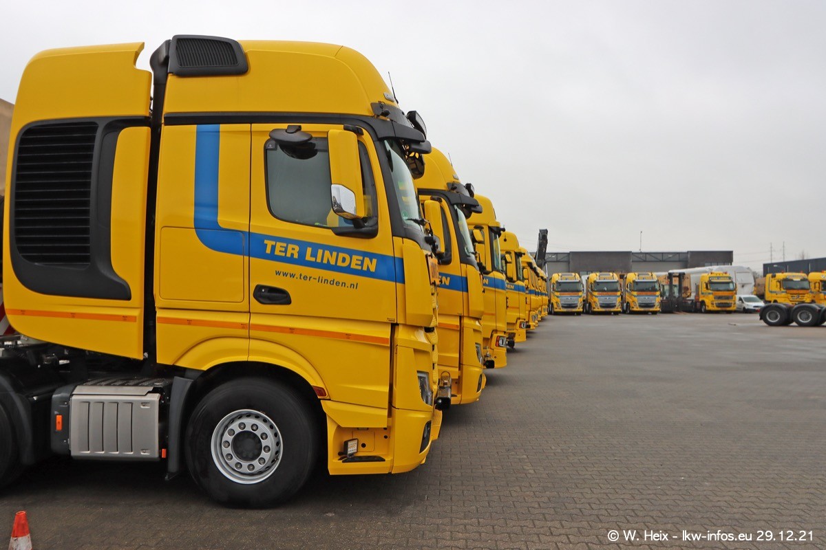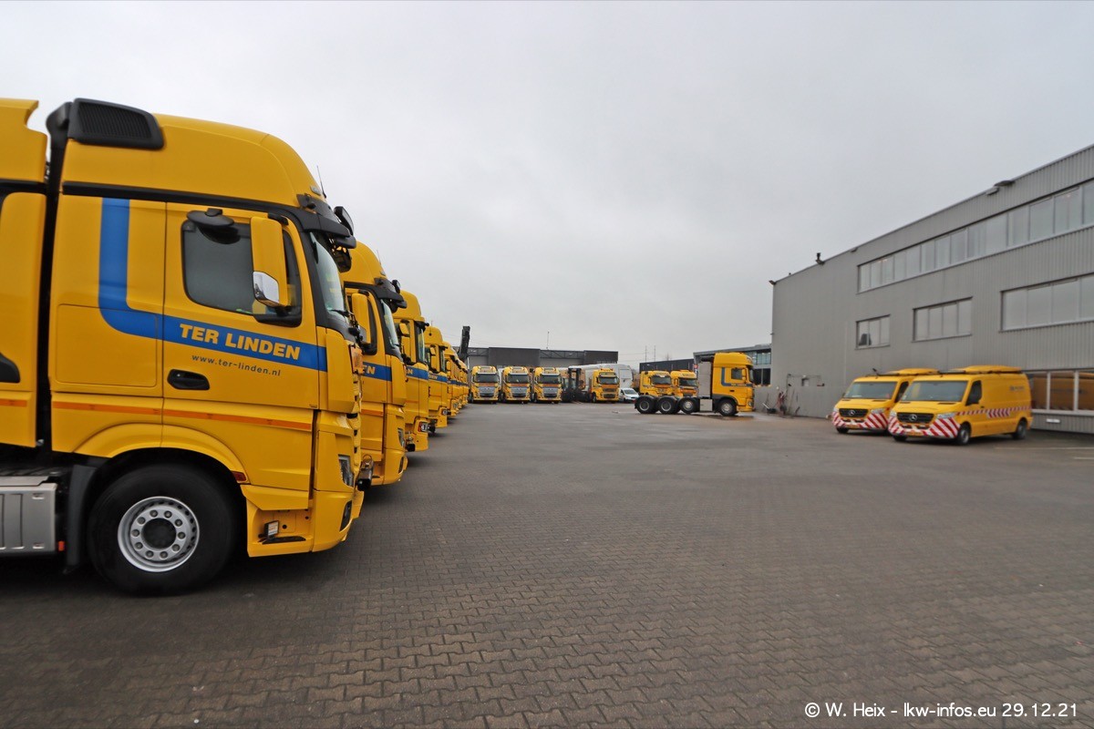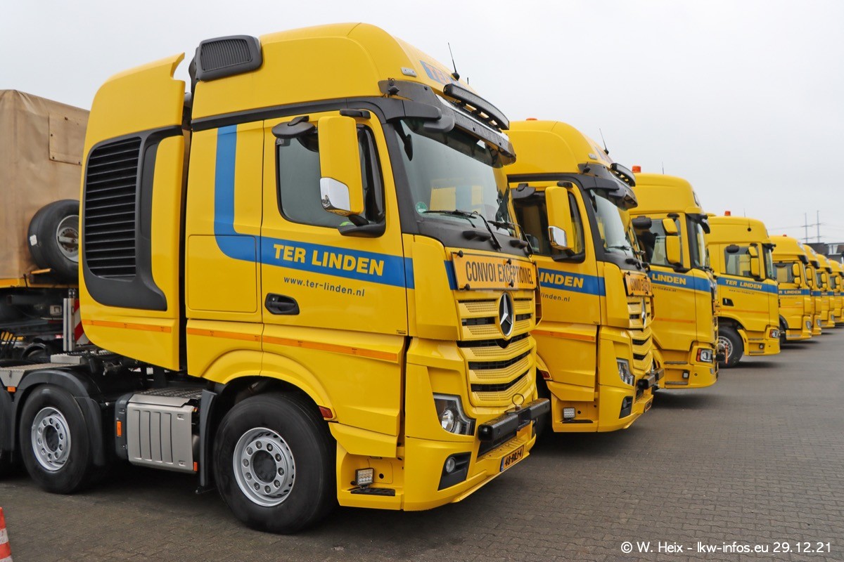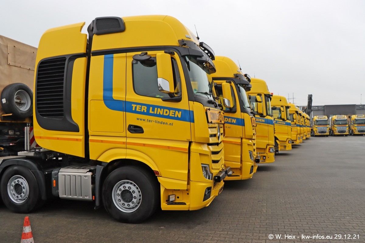 Nachdem ich im letzten Jahr corona-bedingt Ter Linden nicht Weihnachten besuchen konnte, war es in diesem Jahr wieder möglich, auch wenn uns Corona nach wie vor das Leben schwer macht. Allerdings war ich diesmal nach Weihanchten da. Der Grund: Es waren erst nach dem Fest so gut wie alle LKW zuhause in Doetinchem. Neu sind zwei Mercedes-Benz New Actros 4 4163, die seit April im Furhpark sind. 2022 werden einige weitere neue LKW und Auflieger folgen und ich werde nicht erst wieder am Jahresende nach Doetinchem fahren.... Diesmal standen nicht alle LKW eng nebeneinander in der Reihe, weil einige in der eigenen Werkstatt waren. Das war gut für mich, denn ich konnte mehr Bilder von den einzelnen Zugmaschinen machen, was sich auch in der Gesamtzahl der Bilder zeigt.