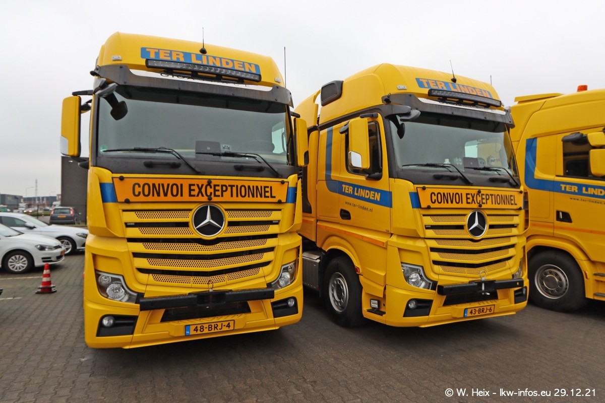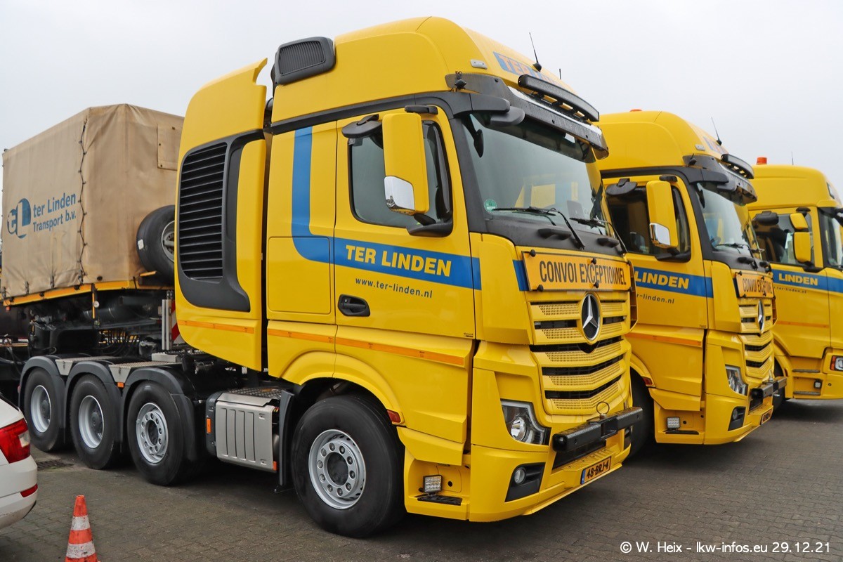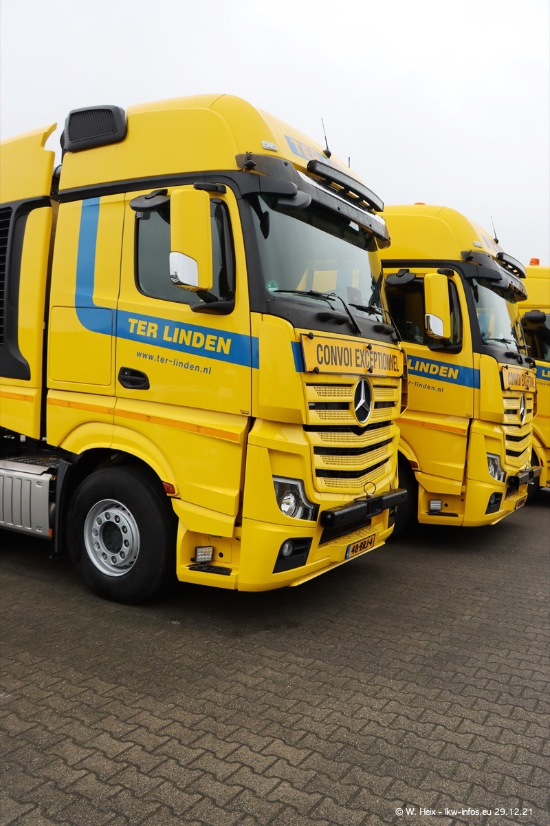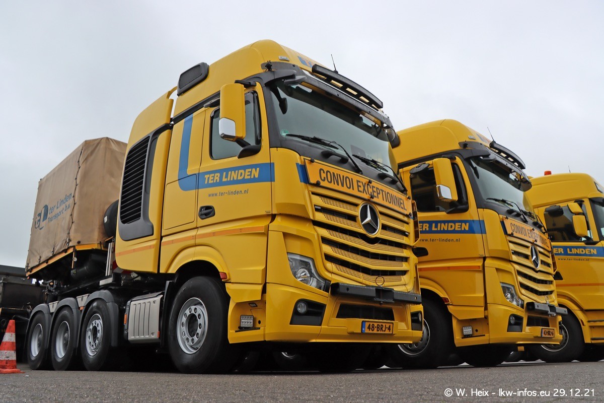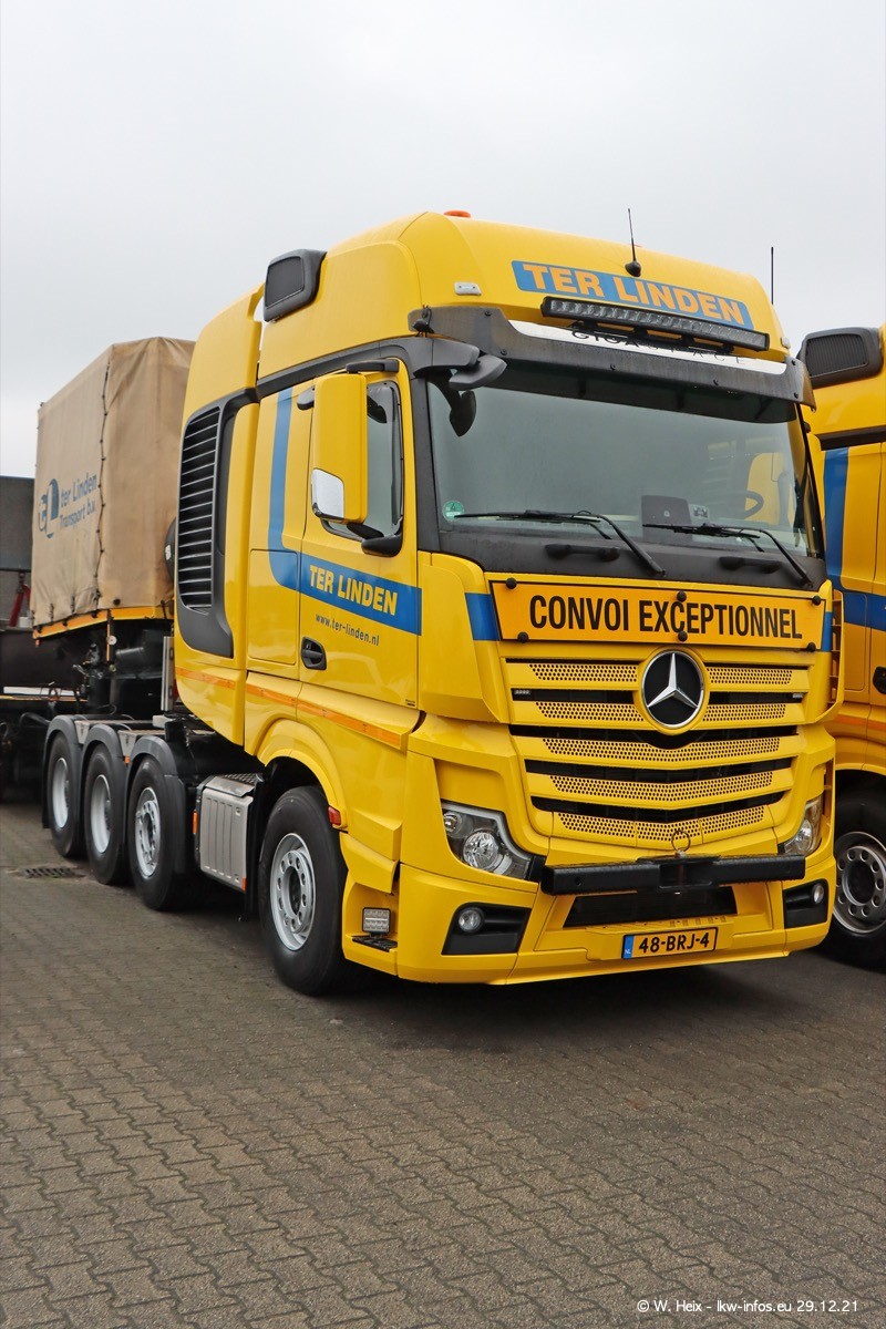 Nachdem ich im letzten Jahr corona-bedingt Ter Linden nicht Weihnachten besuchen konnte, war es in diesem Jahr wieder möglich, auch wenn uns Corona nach wie vor das Leben schwer macht. Allerdings war ich diesmal nach Weihanchten da. Der Grund: Es waren erst nach dem Fest so gut wie alle LKW zuhause in Doetinchem. Neu sind zwei Mercedes-Benz New Actros 4 4163, die seit April im Furhpark sind. 2022 werden einige weitere neue LKW und Auflieger folgen und ich werde nicht erst wieder am Jahresende nach Doetinchem fahren.... Diesmal standen nicht alle LKW eng nebeneinander in der Reihe, weil einige in der eigenen Werkstatt waren. Das war gut für mich, denn ich konnte mehr Bilder von den einzelnen Zugmaschinen machen, was sich auch in der Gesamtzahl der Bilder zeigt.