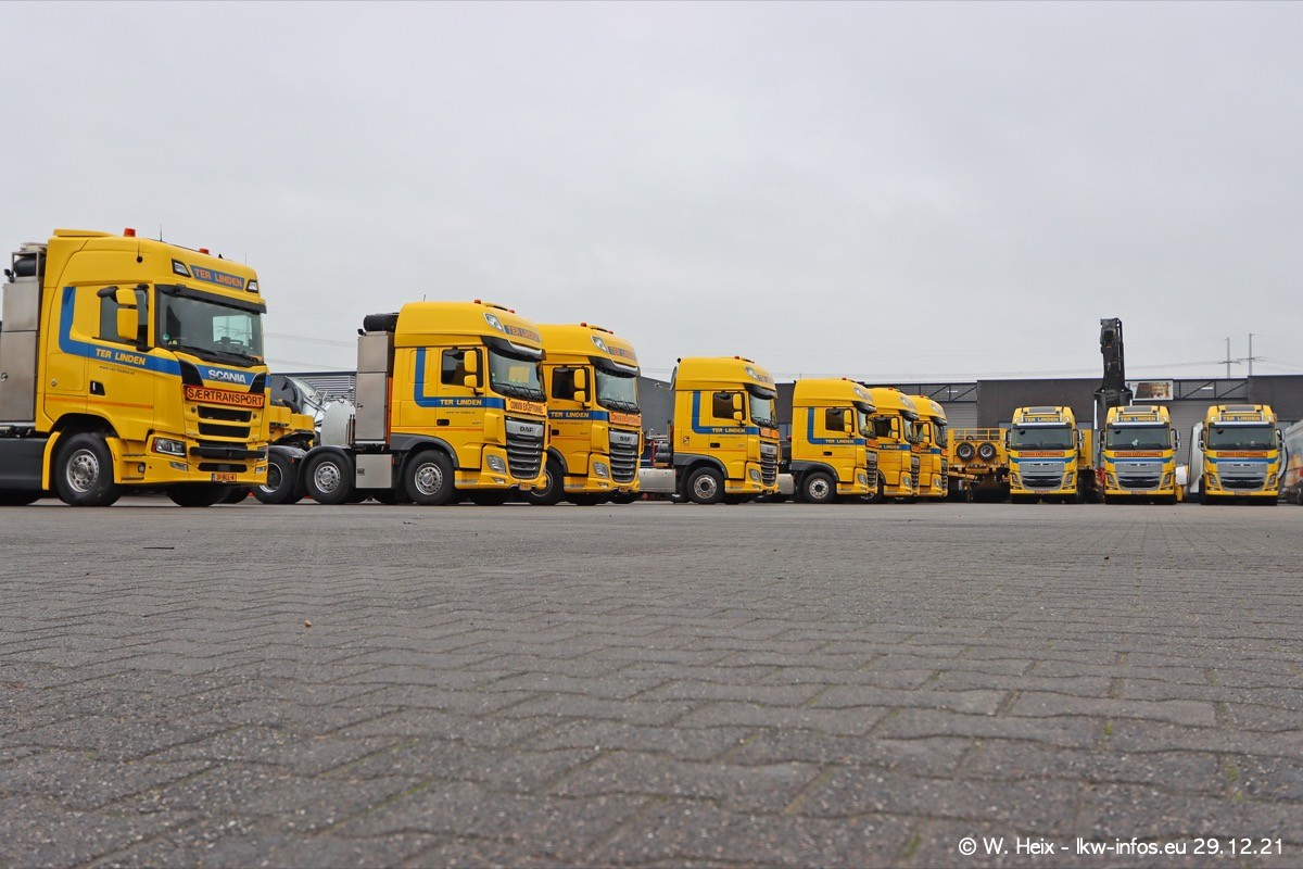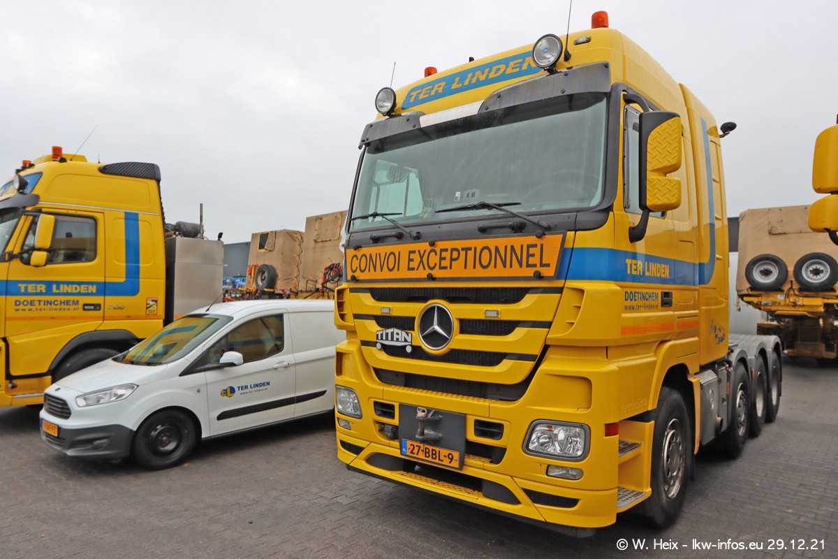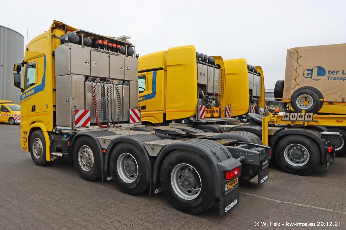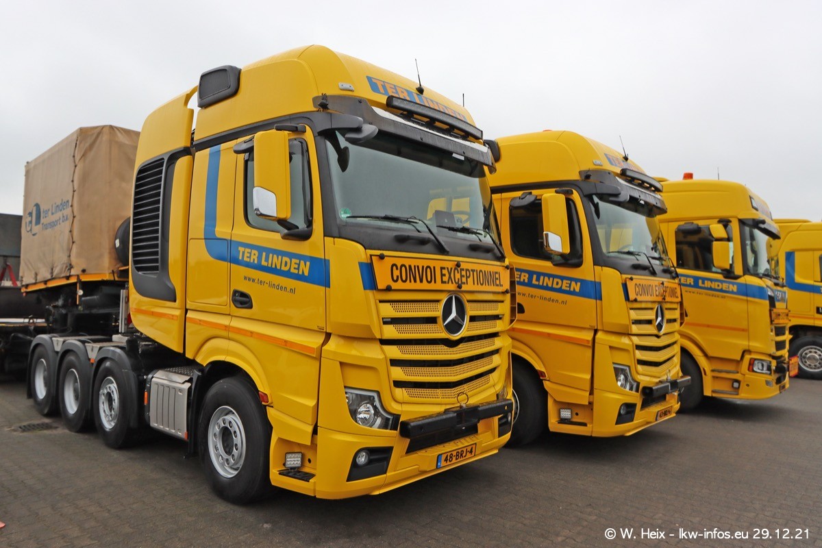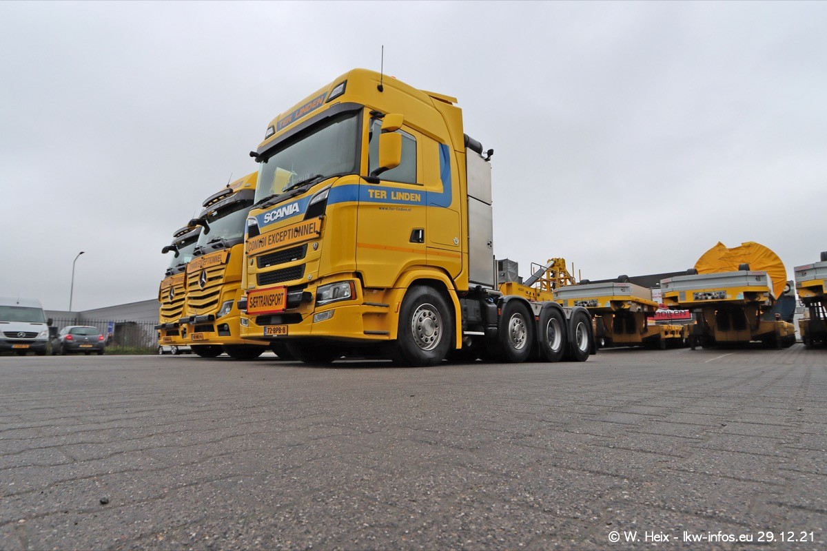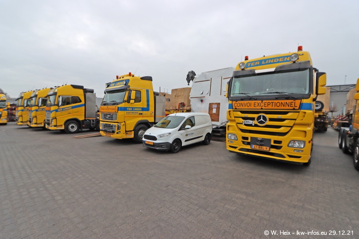 Nachdem ich im letzten Jahr corona-bedingt Ter Linden nicht Weihnachten besuchen konnte, war es in diesem Jahr wieder möglich, auch wenn uns Corona nach wie vor das Leben schwer macht. Allerdings war ich diesmal nach Weihanchten da. Der Grund: Es waren erst nach dem Fest so gut wie alle LKW zuhause in Doetinchem. Neu sind zwei Mercedes-Benz New Actros 4 4163, die seit April im Furhpark sind. 2022 werden einige weitere neue LKW und Auflieger folgen und ich werde nicht erst wieder am Jahresende nach Doetinchem fahren.... Diesmal standen nicht alle LKW eng nebeneinander in der Reihe, weil einige in der eigenen Werkstatt waren. Das war gut für mich, denn ich konnte mehr Bilder von den einzelnen Zugmaschinen machen, was sich auch in der Gesamtzahl der Bilder zeigt.