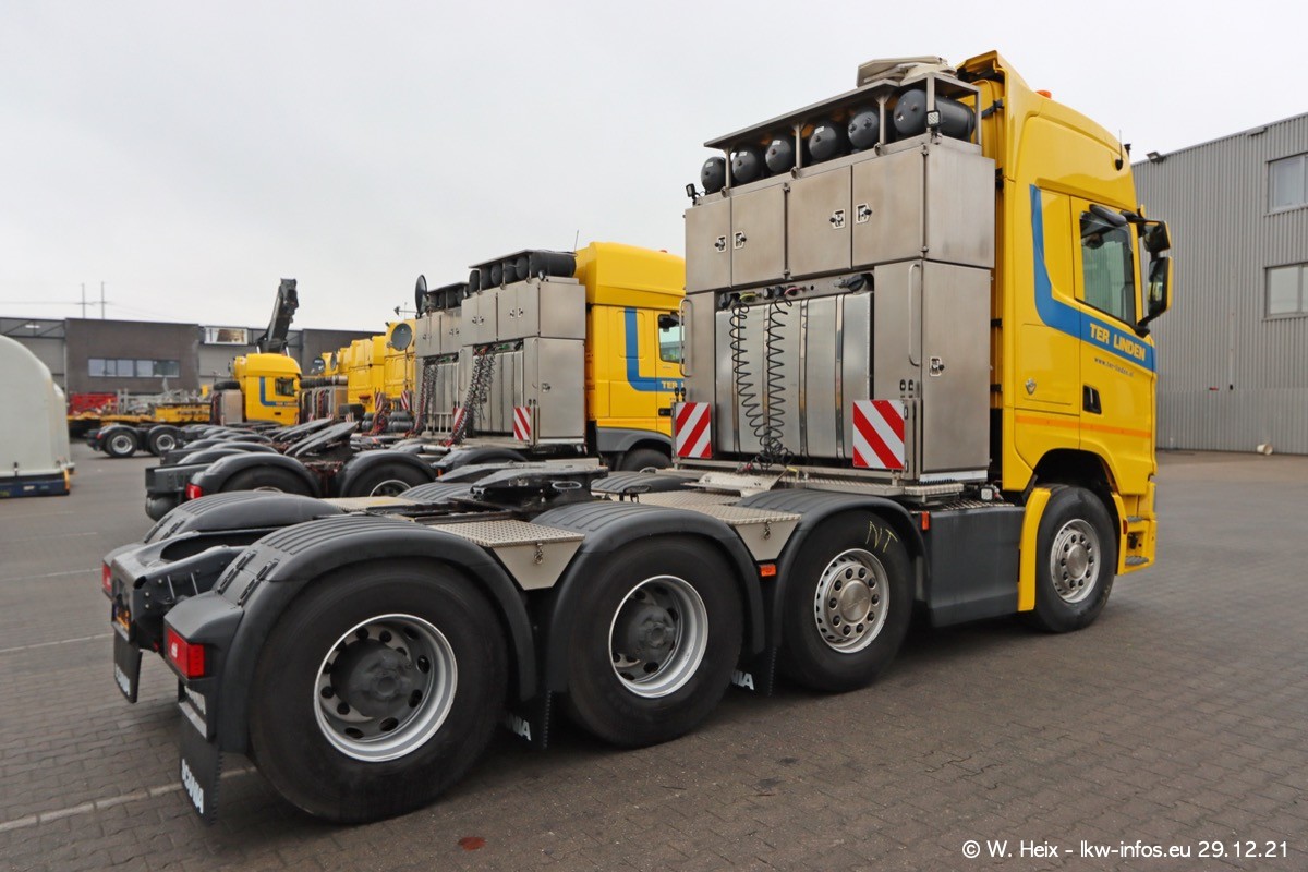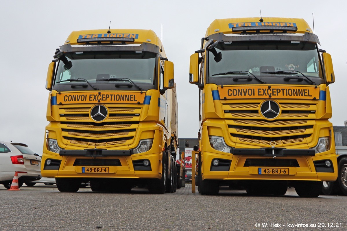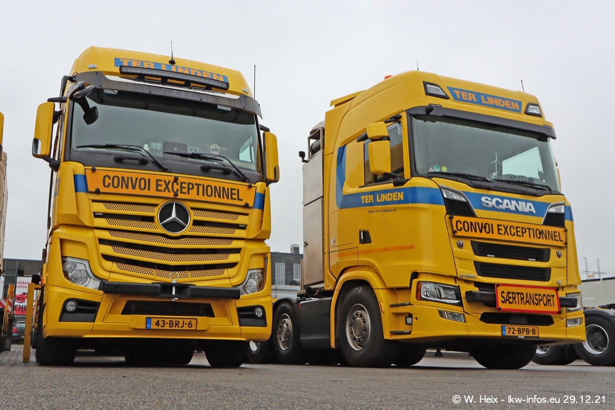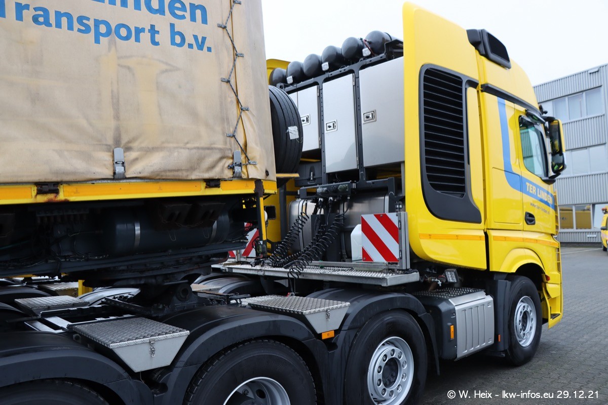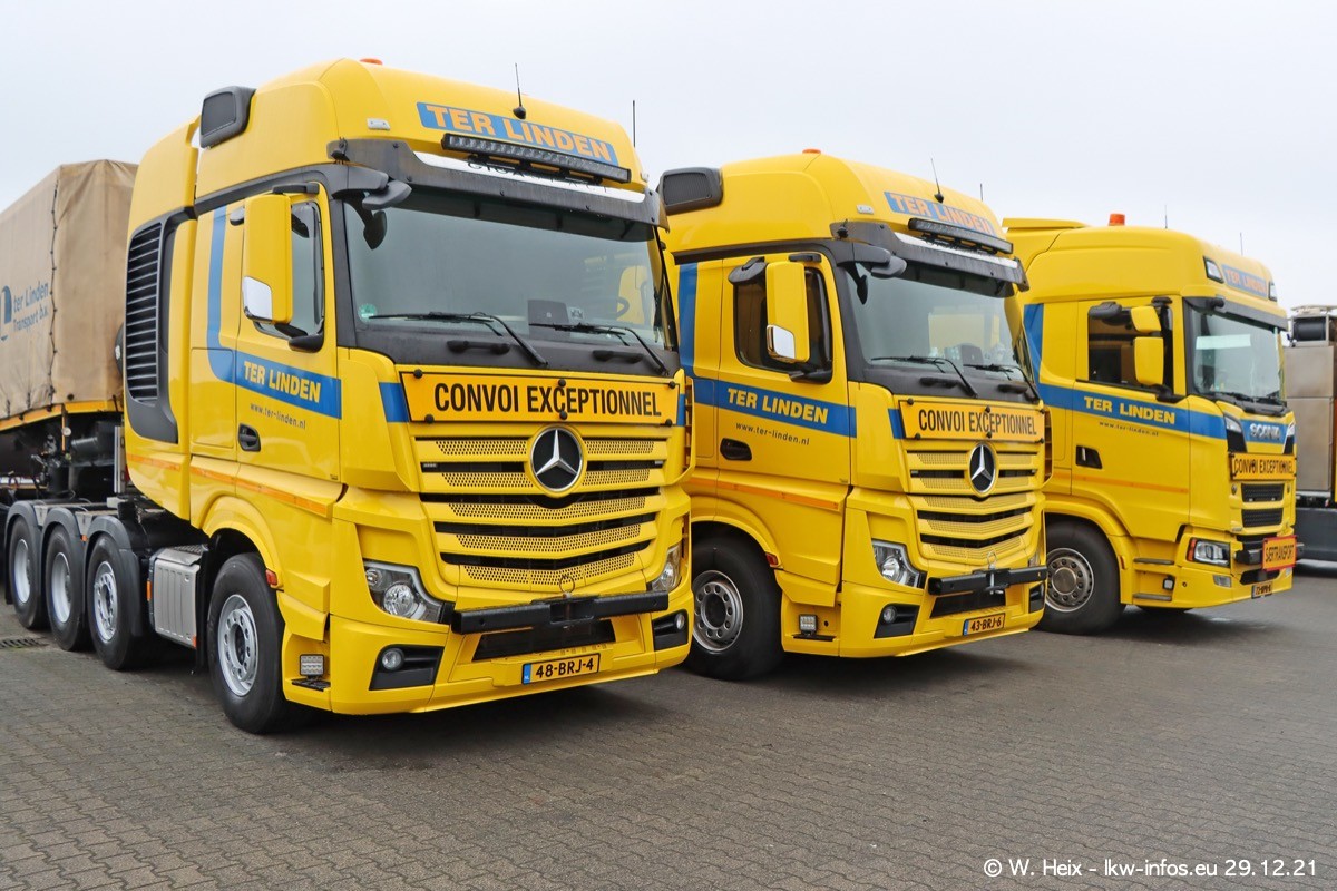 Nachdem ich im letzten Jahr corona-bedingt Ter Linden nicht Weihnachten besuchen konnte, war es in diesem Jahr wieder möglich, auch wenn uns Corona nach wie vor das Leben schwer macht. Allerdings war ich diesmal nach Weihanchten da. Der Grund: Es waren erst nach dem Fest so gut wie alle LKW zuhause in Doetinchem. Neu sind zwei Mercedes-Benz New Actros 4 4163, die seit April im Furhpark sind. 2022 werden einige weitere neue LKW und Auflieger folgen und ich werde nicht erst wieder am Jahresende nach Doetinchem fahren.... Diesmal standen nicht alle LKW eng nebeneinander in der Reihe, weil einige in der eigenen Werkstatt waren. Das war gut für mich, denn ich konnte mehr Bilder von den einzelnen Zugmaschinen machen, was sich auch in der Gesamtzahl der Bilder zeigt.