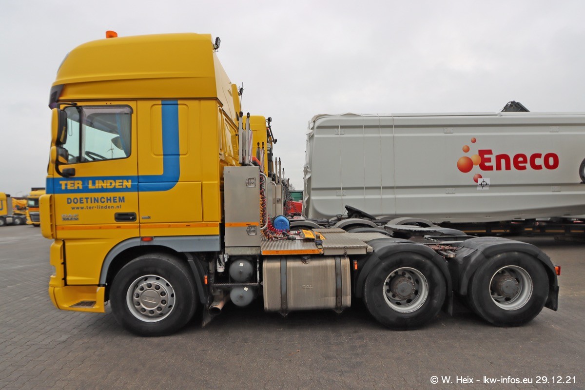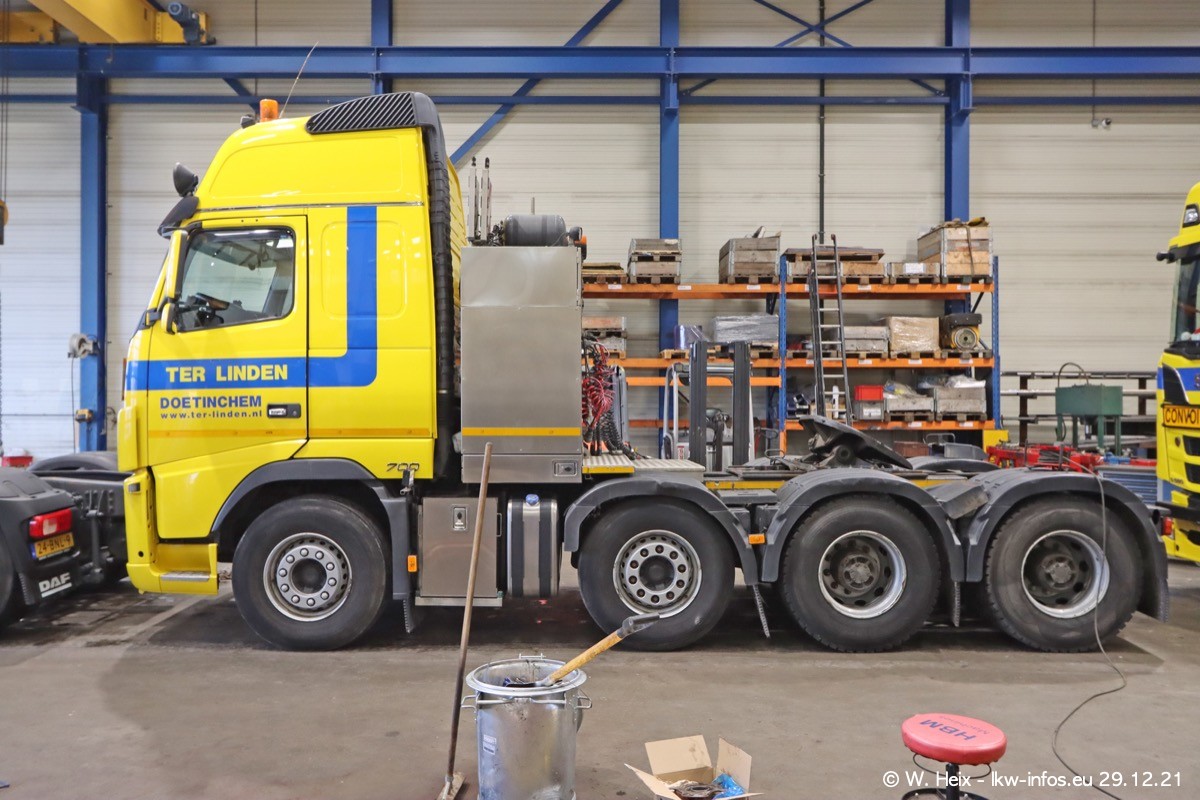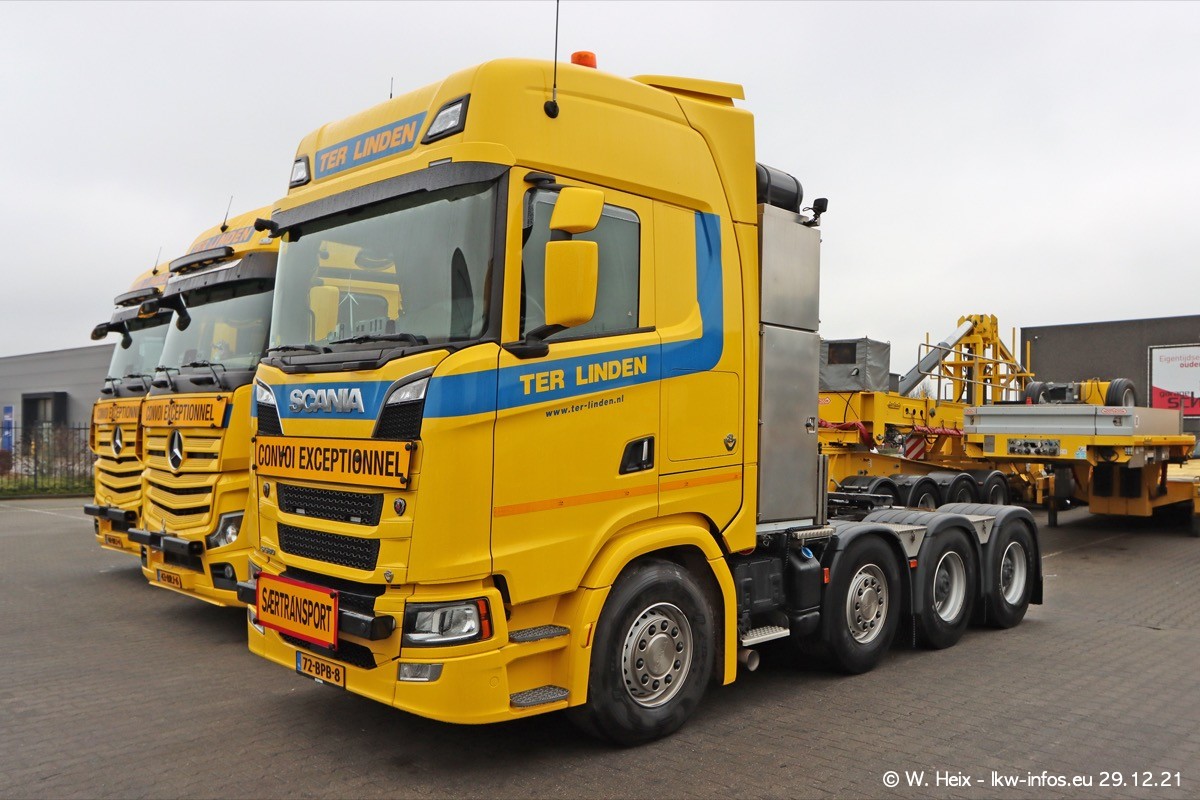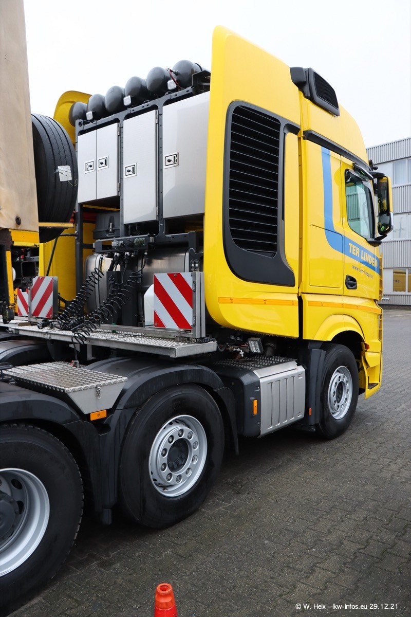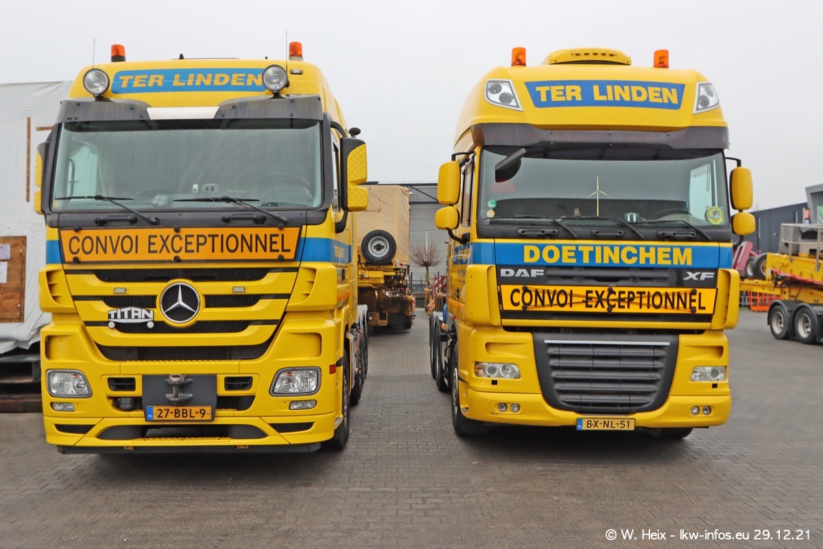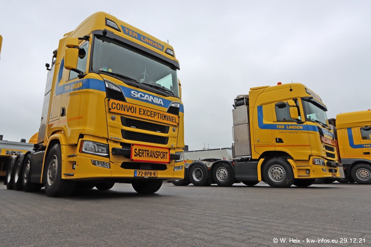 Nachdem ich im letzten Jahr corona-bedingt Ter Linden nicht Weihnachten besuchen konnte, war es in diesem Jahr wieder möglich, auch wenn uns Corona nach wie vor das Leben schwer macht. Allerdings war ich diesmal nach Weihanchten da. Der Grund: Es waren erst nach dem Fest so gut wie alle LKW zuhause in Doetinchem. Neu sind zwei Mercedes-Benz New Actros 4 4163, die seit April im Furhpark sind. 2022 werden einige weitere neue LKW und Auflieger folgen und ich werde nicht erst wieder am Jahresende nach Doetinchem fahren.... Diesmal standen nicht alle LKW eng nebeneinander in der Reihe, weil einige in der eigenen Werkstatt waren. Das war gut für mich, denn ich konnte mehr Bilder von den einzelnen Zugmaschinen machen, was sich auch in der Gesamtzahl der Bilder zeigt.