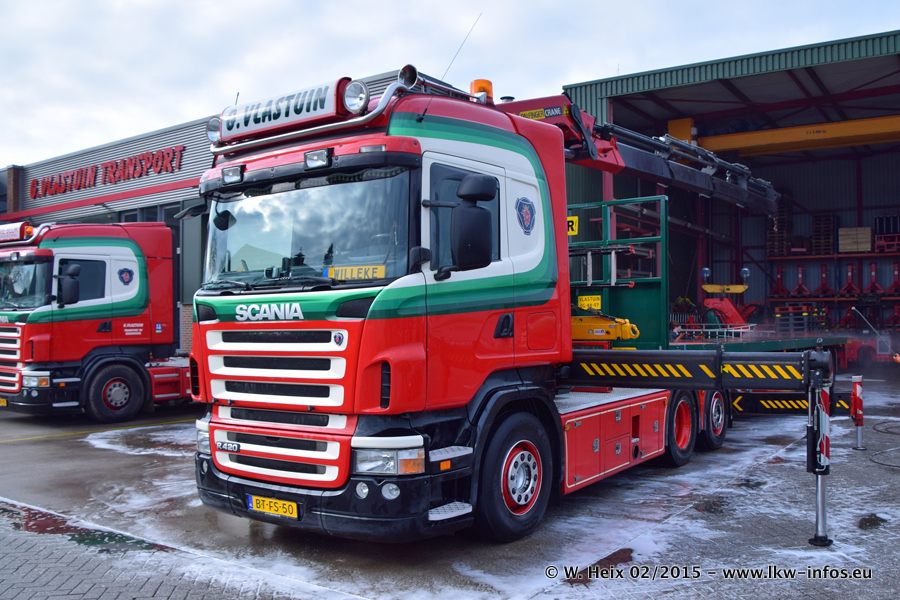 Neu im Fuhrpark ist ein zweiter Scania R 450 Streamline. Der LKW wurde erst gestern zugelassen und steht noch bei der Firma Vlastuin Truckopbouw im gleichen Ort. Wahrscheinlich ist der gleiche Name der Firma kein Zufall ... Die anderen Fahrzeuge sind alle bekannt.