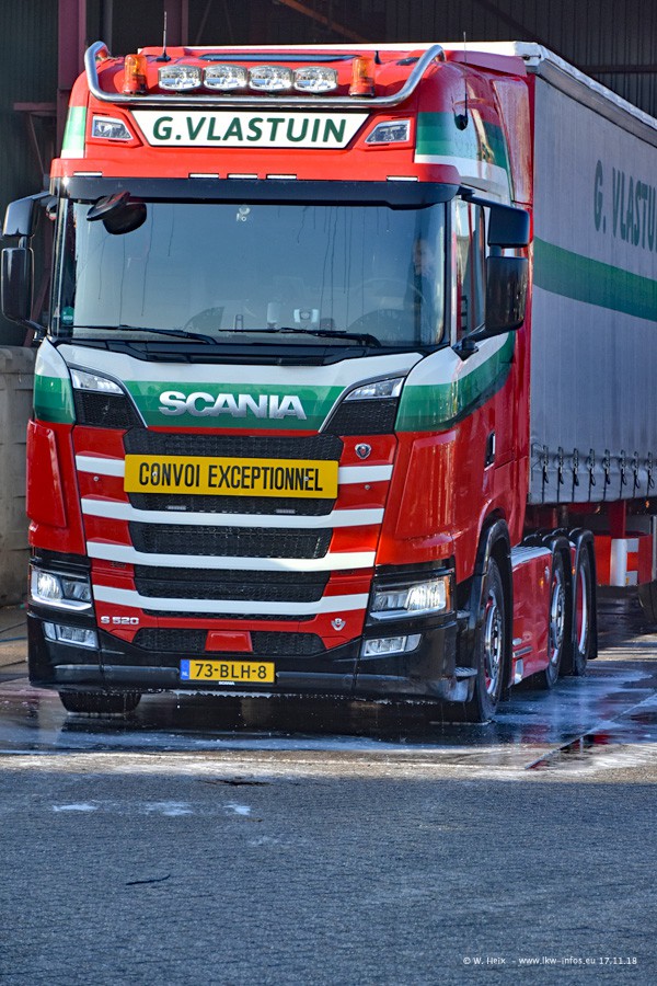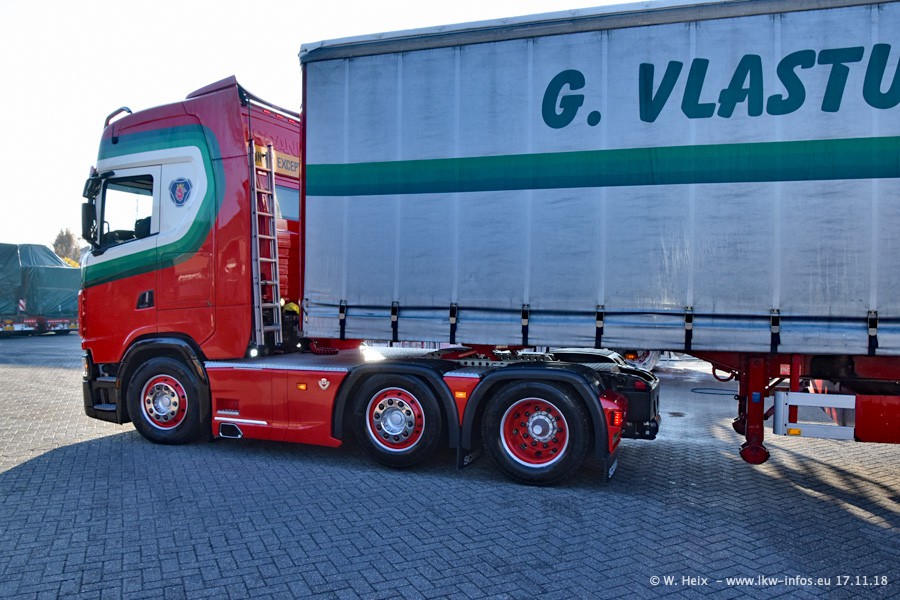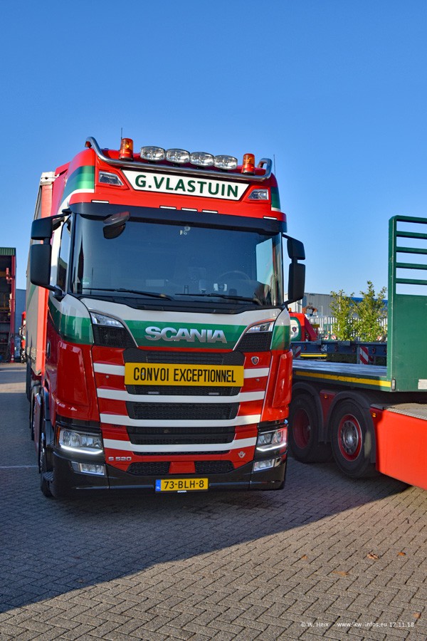 Der SCANIA S 520 V8 NextGen ist 6 Wochen alt. Ein weiterer SCANIA S NextGen kommt Amfang 2019. Dafür ist aktuell der weiße SCANIA R 500 V8 im Fuhrpark, ein Leihfahrzeug von SCANIA. Im nächsten Jahr werden weitere neue LKW kommen und Vlastuin wird umziehen, weil es auf dem aktuellen Gelände zu wenig Platz gibt.