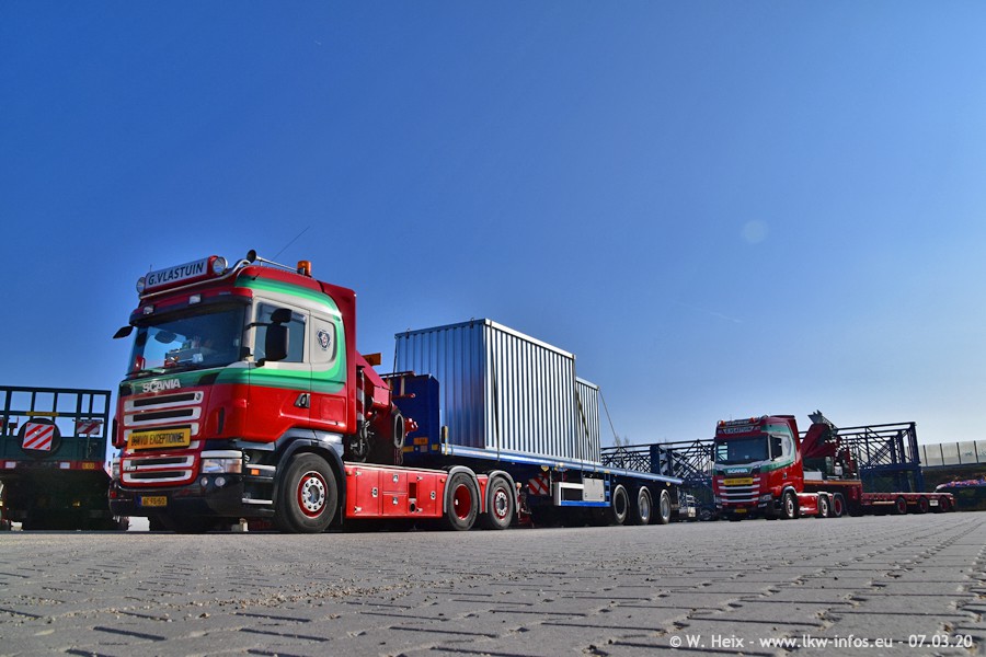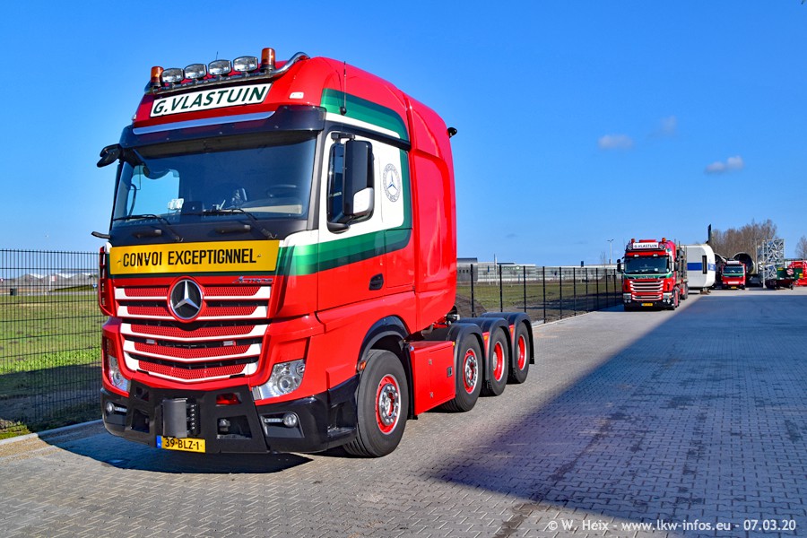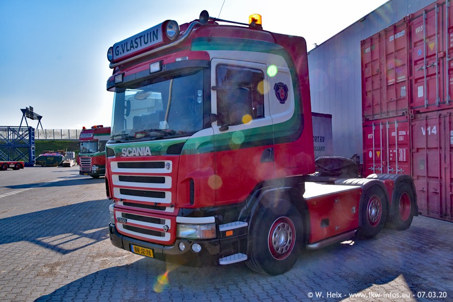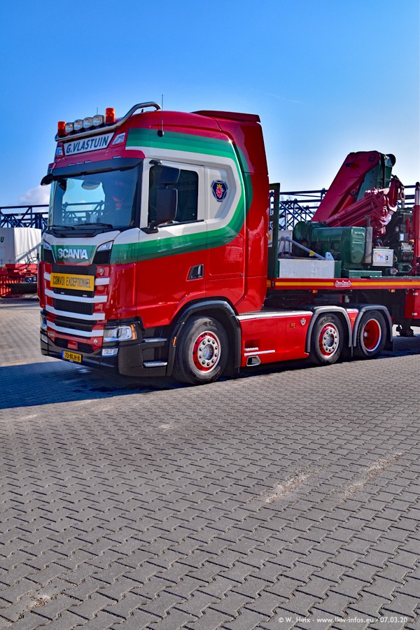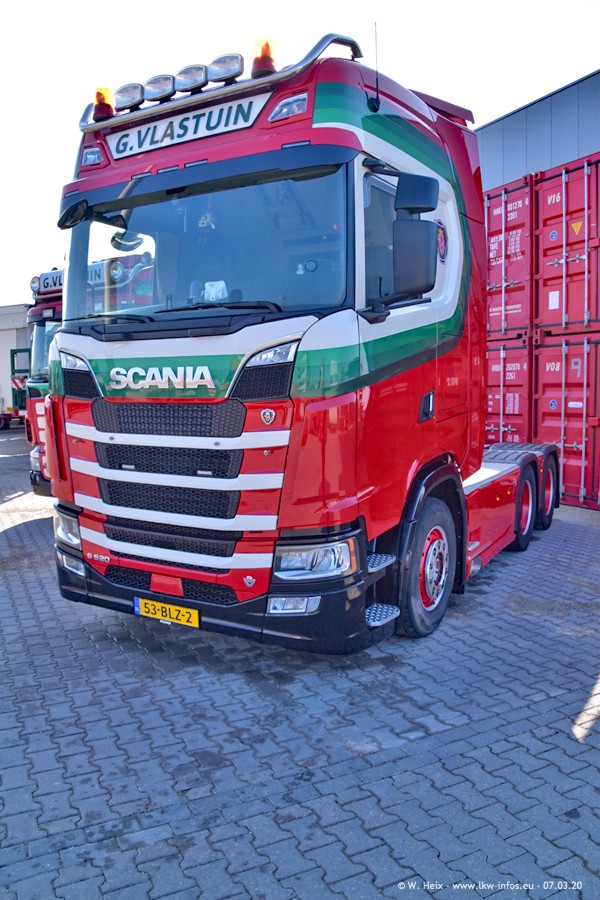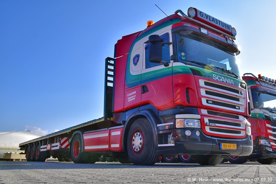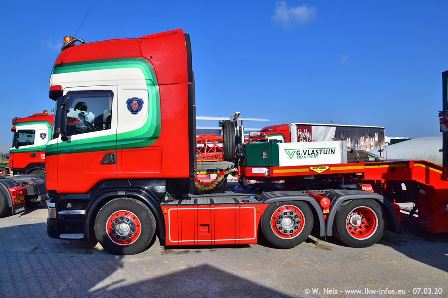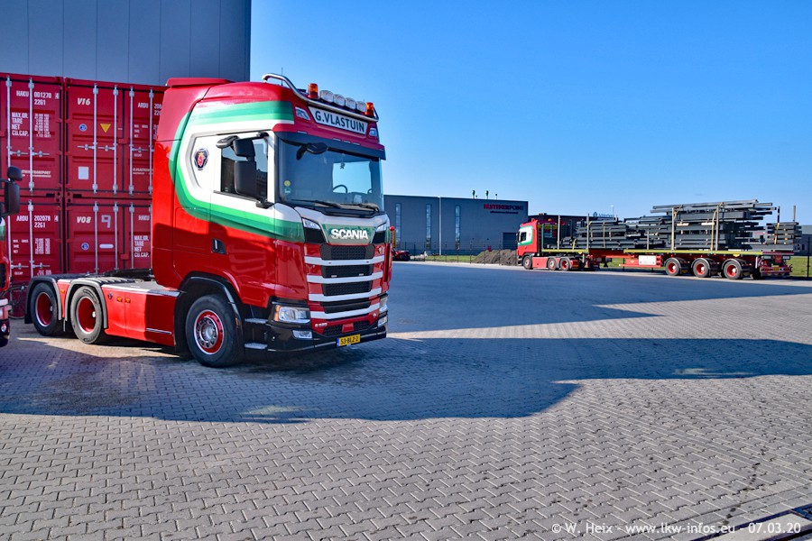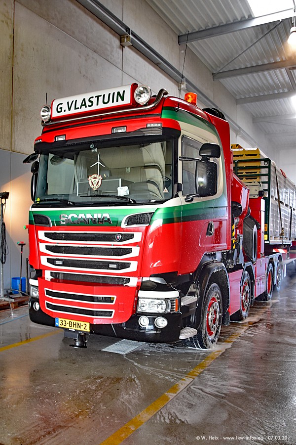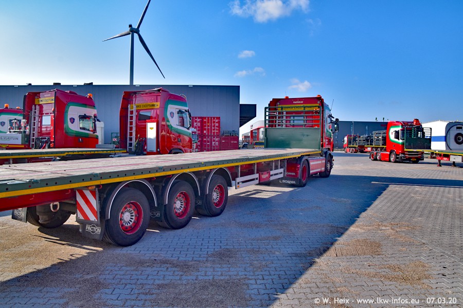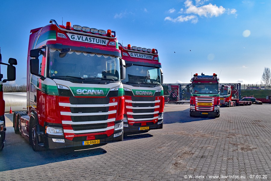 Ich war zwar erst vor vier Wochen bei G. Vlastuin. Aber dieser Besuch hatte einen Grund: der Mercedes-Benz Actros 4163 SLT war zuhause. Das ist der erste LKW und die erste Schwerlastzugmaschine von Mercedes-Benz im Fuhrpark von Vlastuin. Das Fahrzeug ist seit ca. Mitte 2019 im Einsatz. Diesmal war ein Teil der LKW nicht da, aber ich konnte nochmal von allen drei neuen SCANIA S NextGen schöne Fotos machen und auch vom "Rest". Auf dem neuen Gelände ist viel mehr Platz und somit kann man auch besser fotografieren.