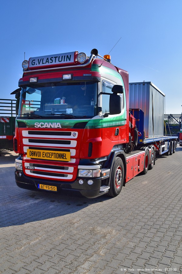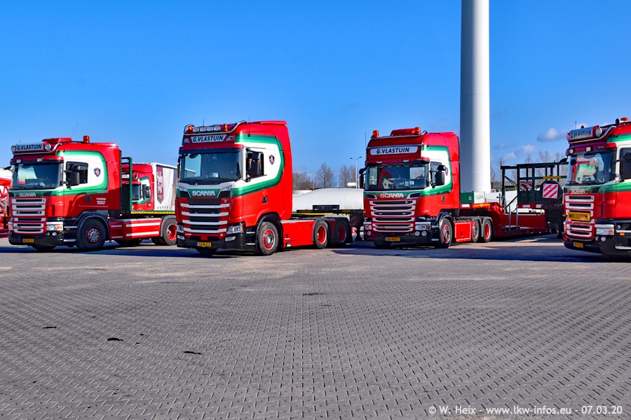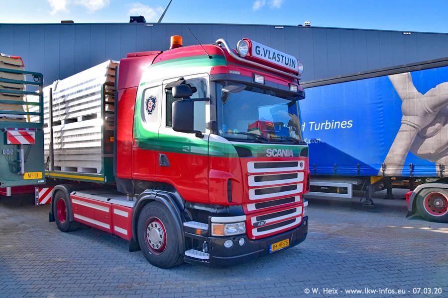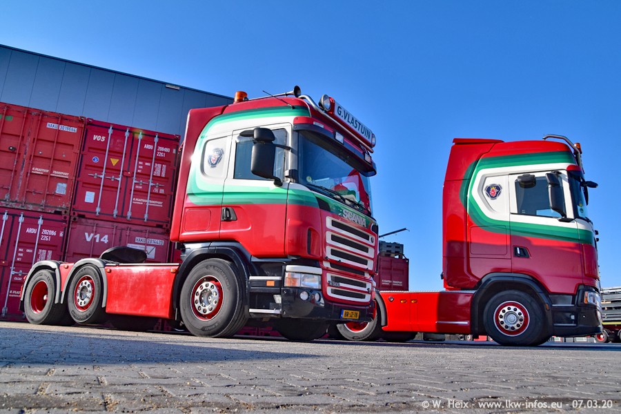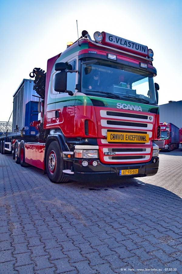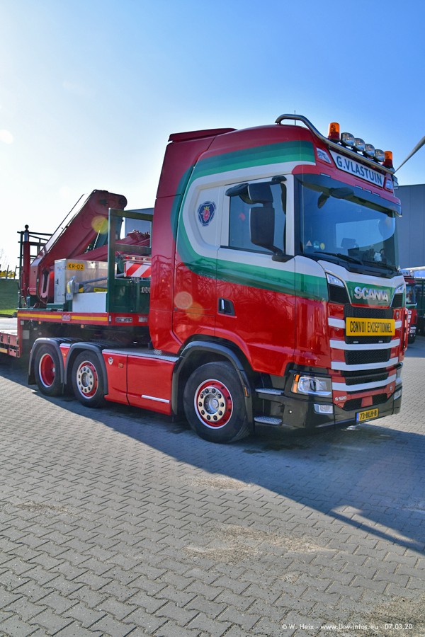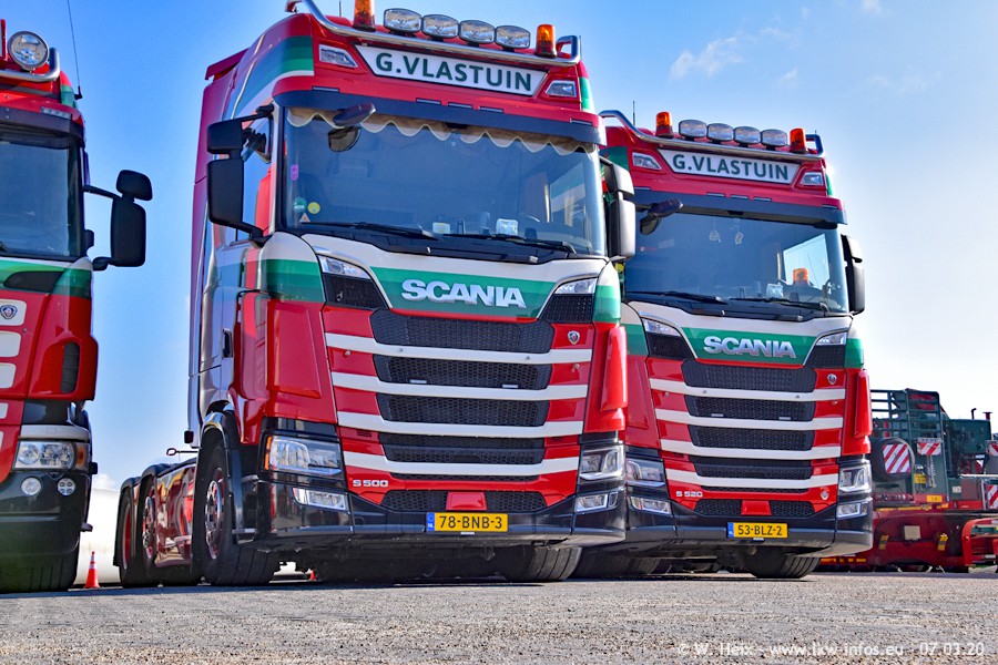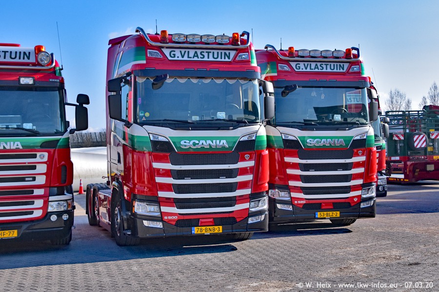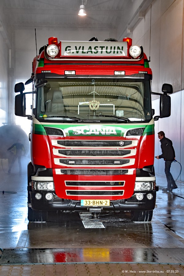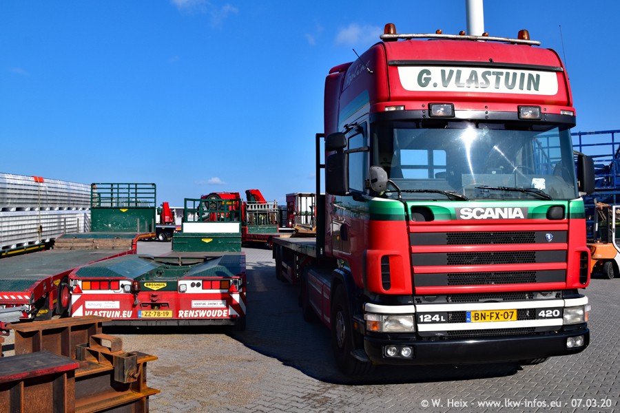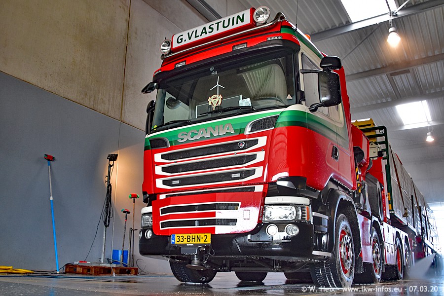 Ich war zwar erst vor vier Wochen bei G. Vlastuin. Aber dieser Besuch hatte einen Grund: der Mercedes-Benz Actros 4163 SLT war zuhause. Das ist der erste LKW und die erste Schwerlastzugmaschine von Mercedes-Benz im Fuhrpark von Vlastuin. Das Fahrzeug ist seit ca. Mitte 2019 im Einsatz. Diesmal war ein Teil der LKW nicht da, aber ich konnte nochmal von allen drei neuen SCANIA S NextGen schöne Fotos machen und auch vom "Rest". Auf dem neuen Gelände ist viel mehr Platz und somit kann man auch besser fotografieren.