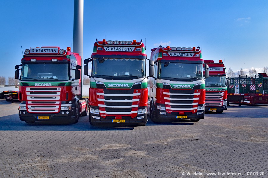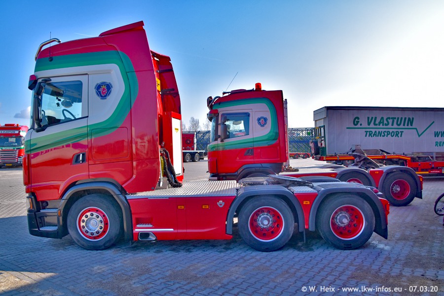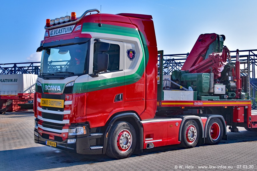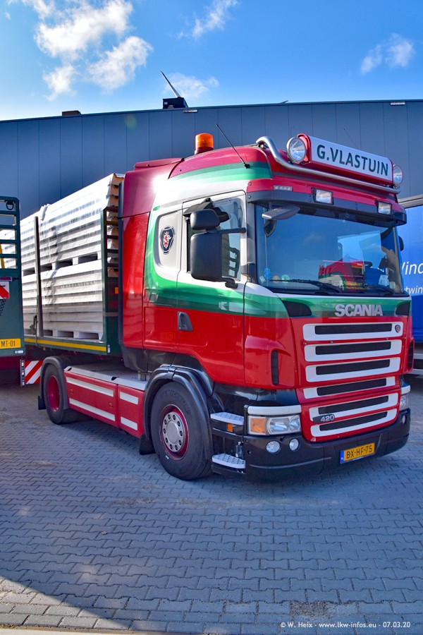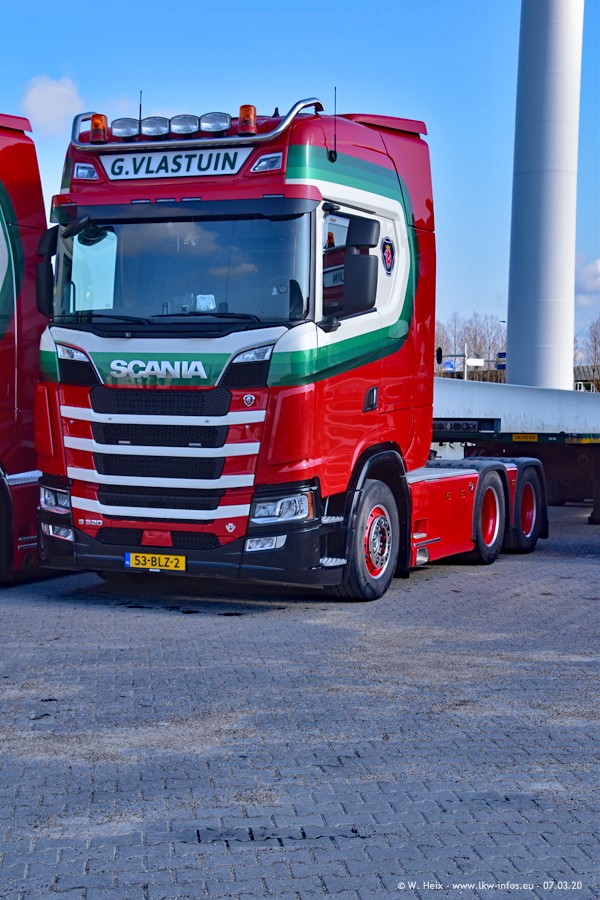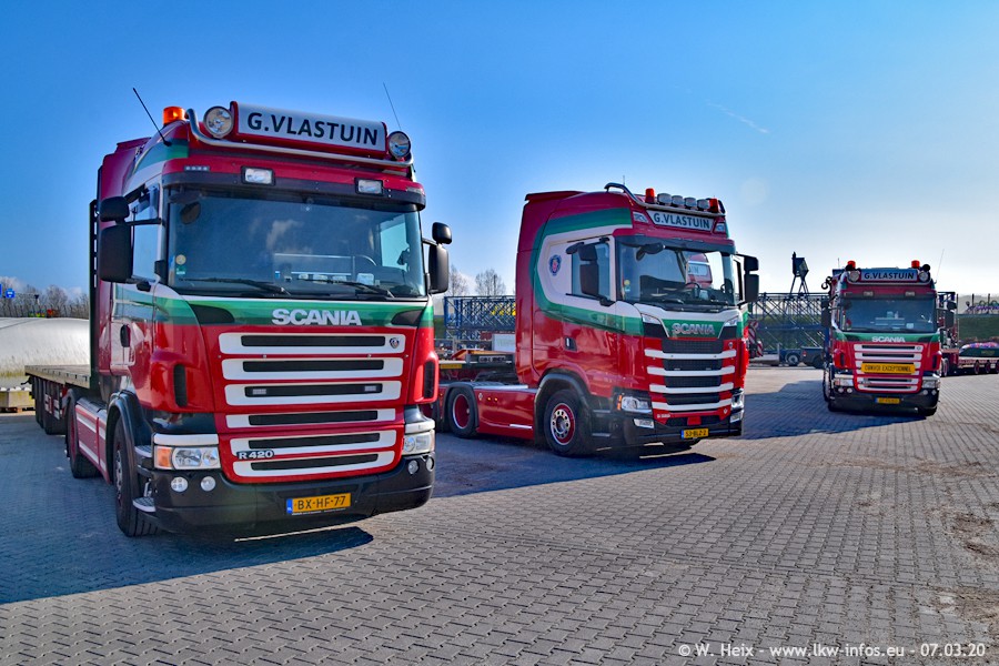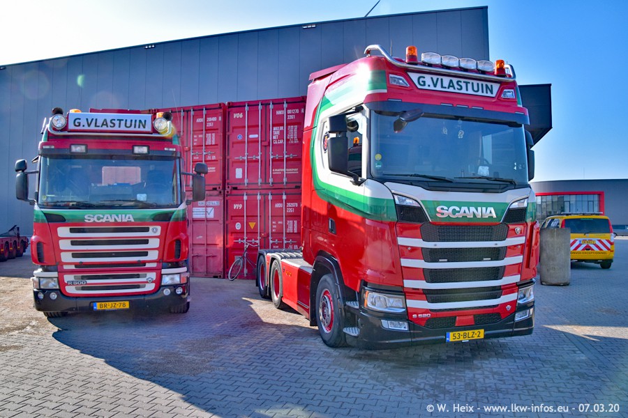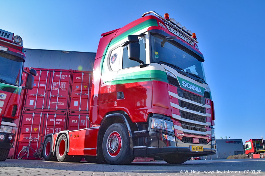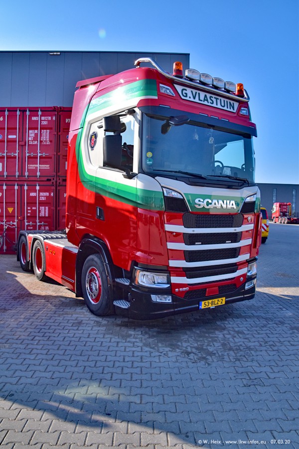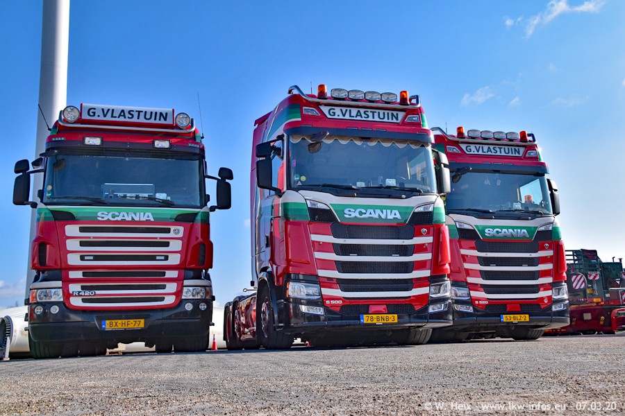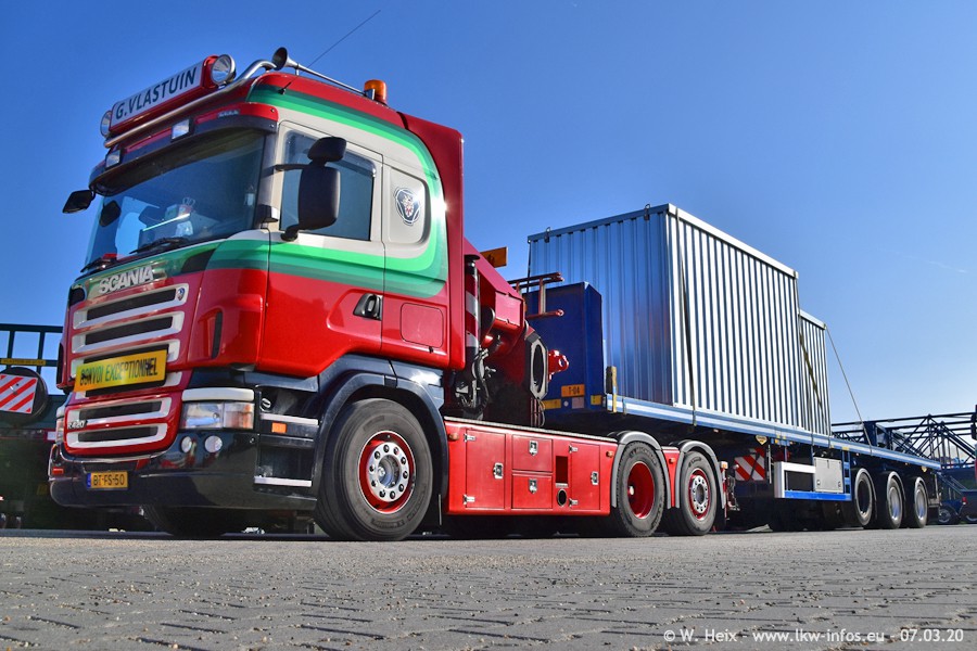 Ich war zwar erst vor vier Wochen bei G. Vlastuin. Aber dieser Besuch hatte einen Grund: der Mercedes-Benz Actros 4163 SLT war zuhause. Das ist der erste LKW und die erste Schwerlastzugmaschine von Mercedes-Benz im Fuhrpark von Vlastuin. Das Fahrzeug ist seit ca. Mitte 2019 im Einsatz. Diesmal war ein Teil der LKW nicht da, aber ich konnte nochmal von allen drei neuen SCANIA S NextGen schöne Fotos machen und auch vom "Rest". Auf dem neuen Gelände ist viel mehr Platz und somit kann man auch besser fotografieren.
