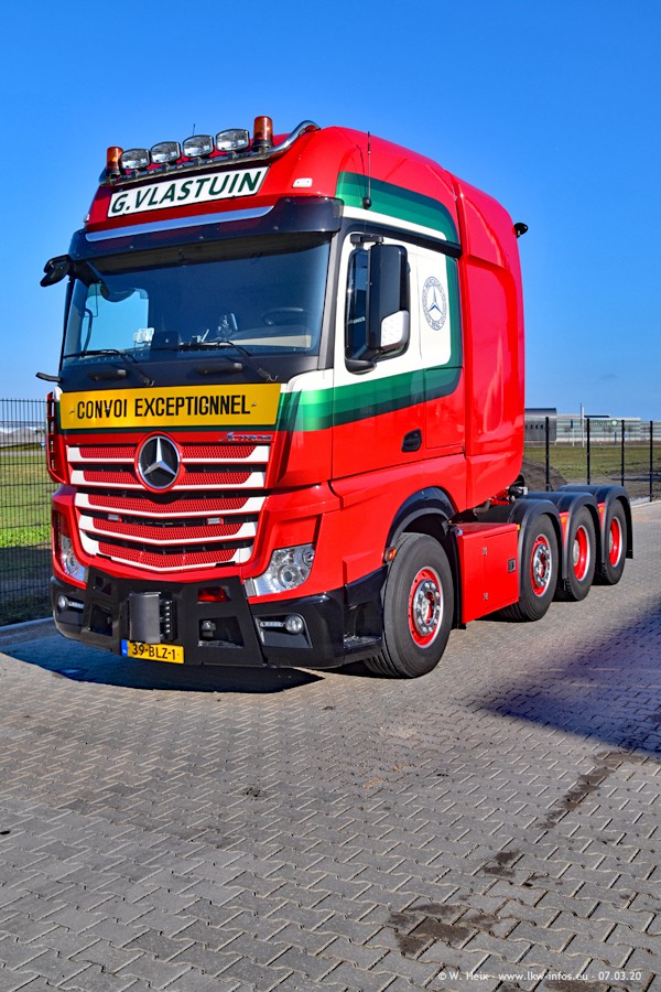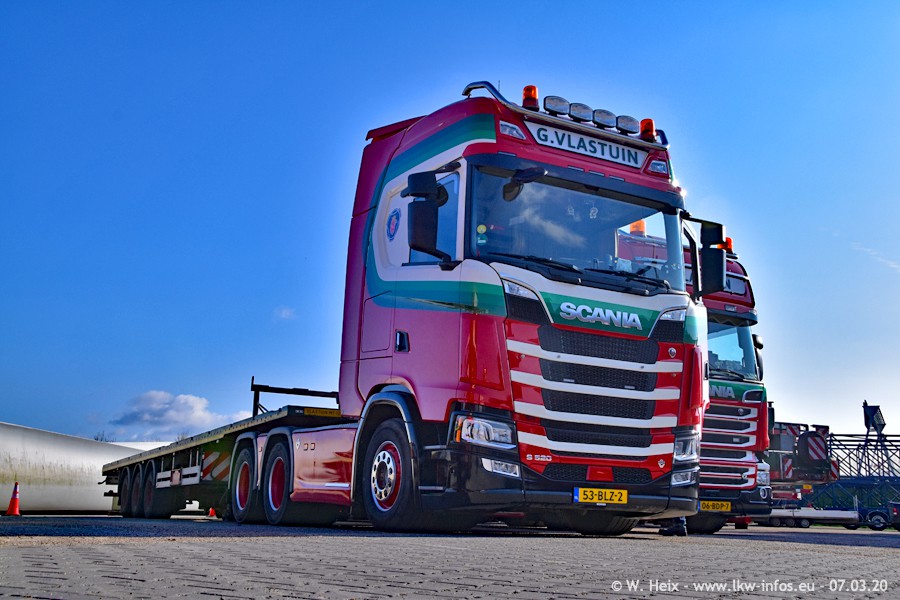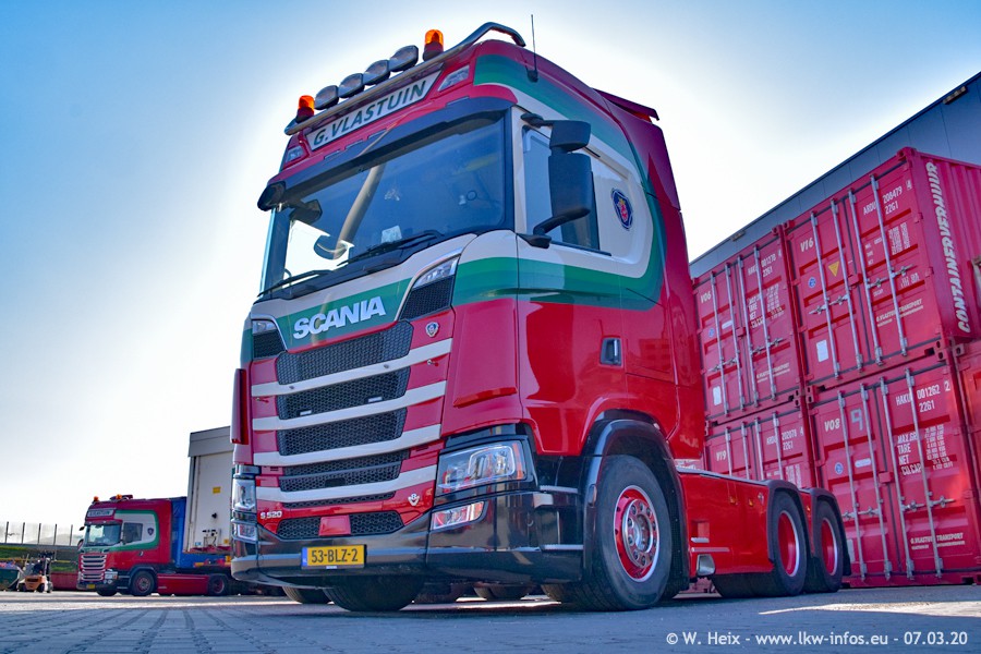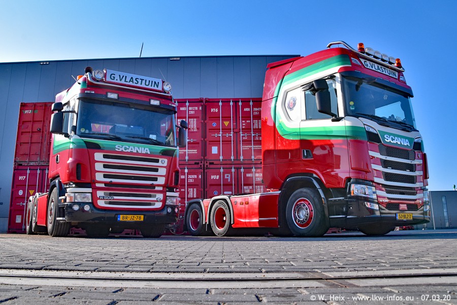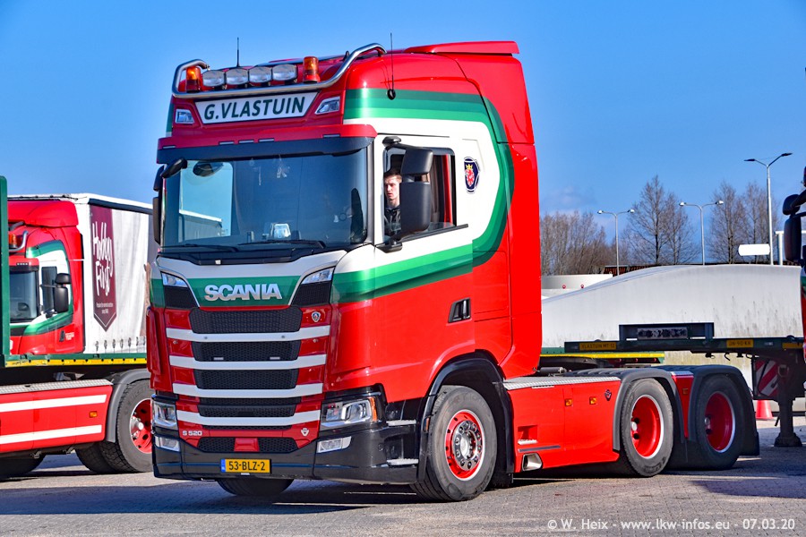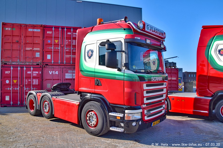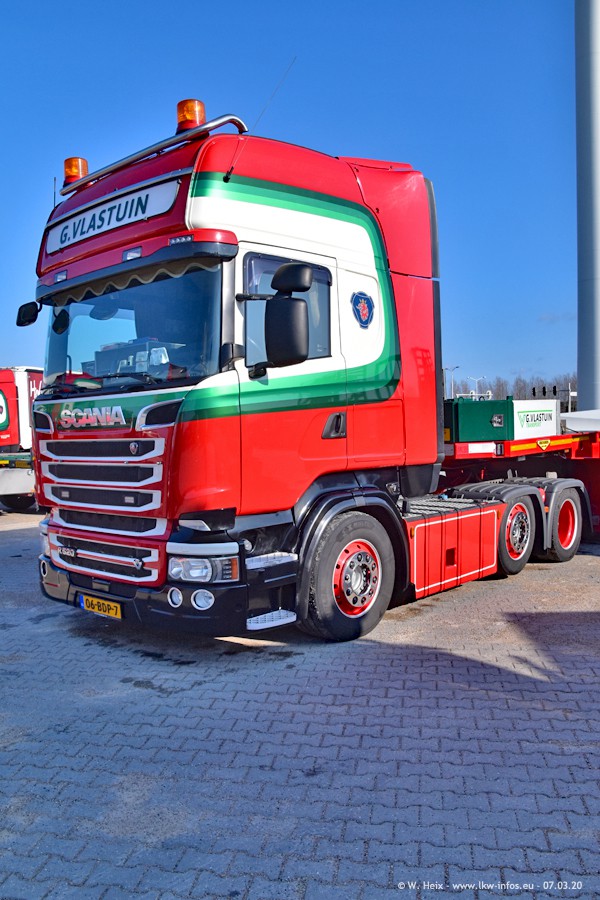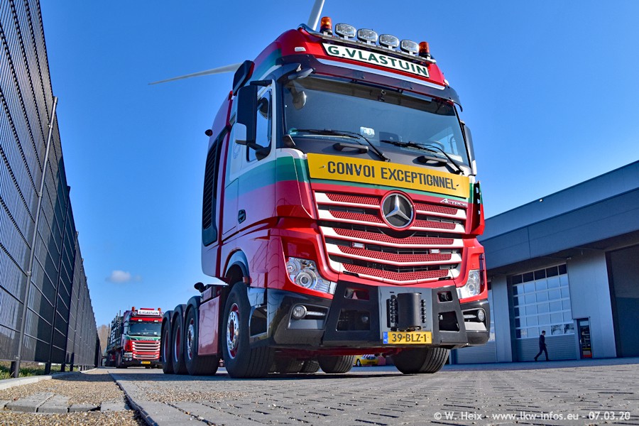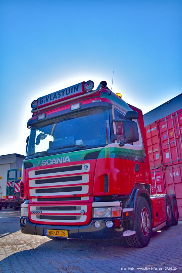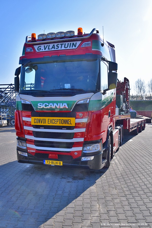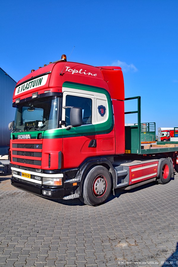Ich war zwar erst vor vier Wochen bei G. Vlastuin. Aber dieser Besuch hatte einen Grund: der Mercedes-Benz Actros 4163 SLT war zuhause. Das ist der erste LKW und die erste Schwerlastzugmaschine von Mercedes-Benz im Fuhrpark von Vlastuin. Das Fahrzeug ist seit ca. Mitte 2019 im Einsatz. Diesmal war ein Teil der LKW nicht da, aber ich konnte nochmal von allen drei neuen SCANIA S NextGen schöne Fotos machen und auch vom "Rest". Auf dem neuen Gelände ist viel mehr Platz und somit kann man auch besser fotografieren.