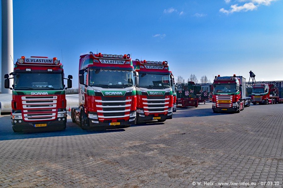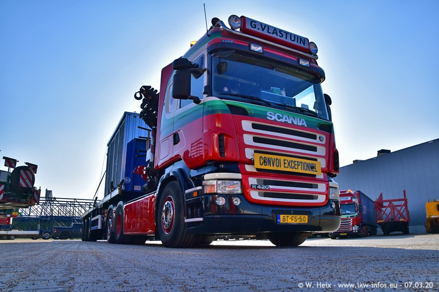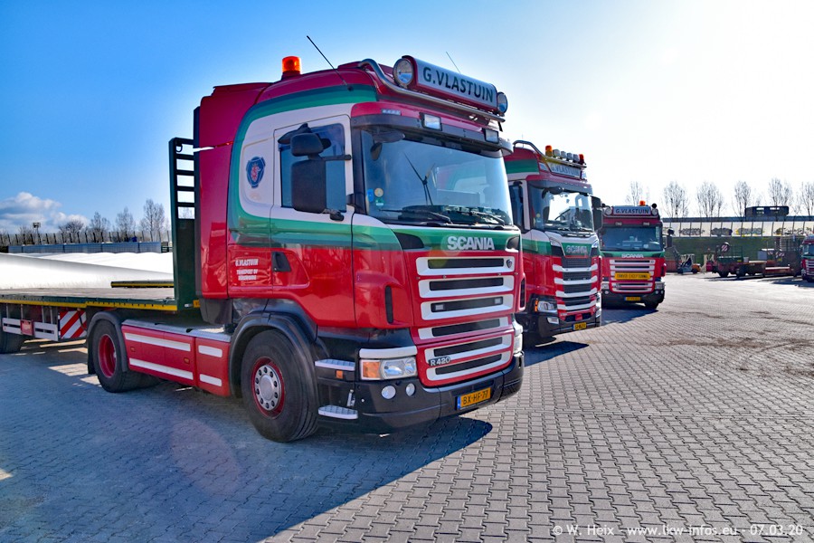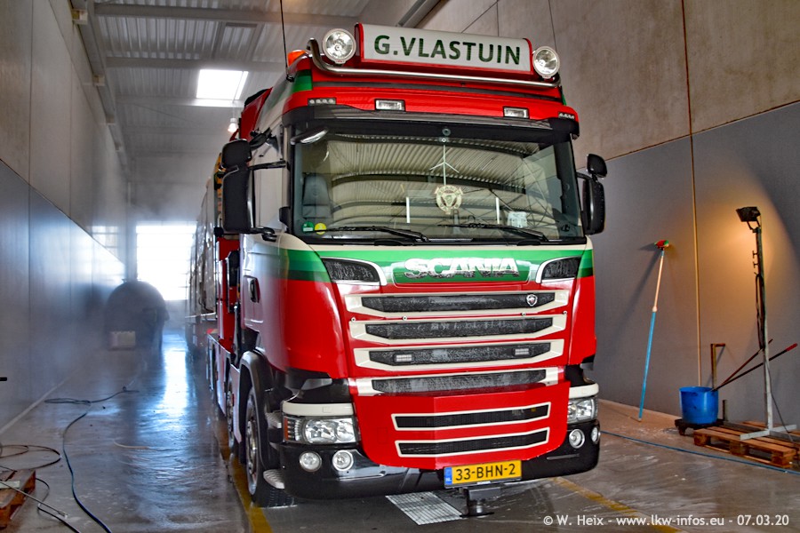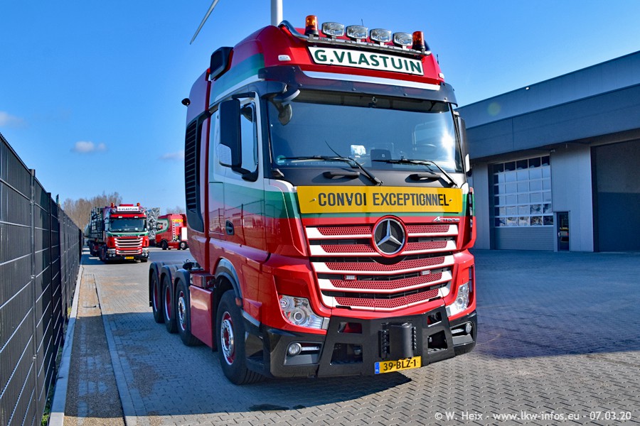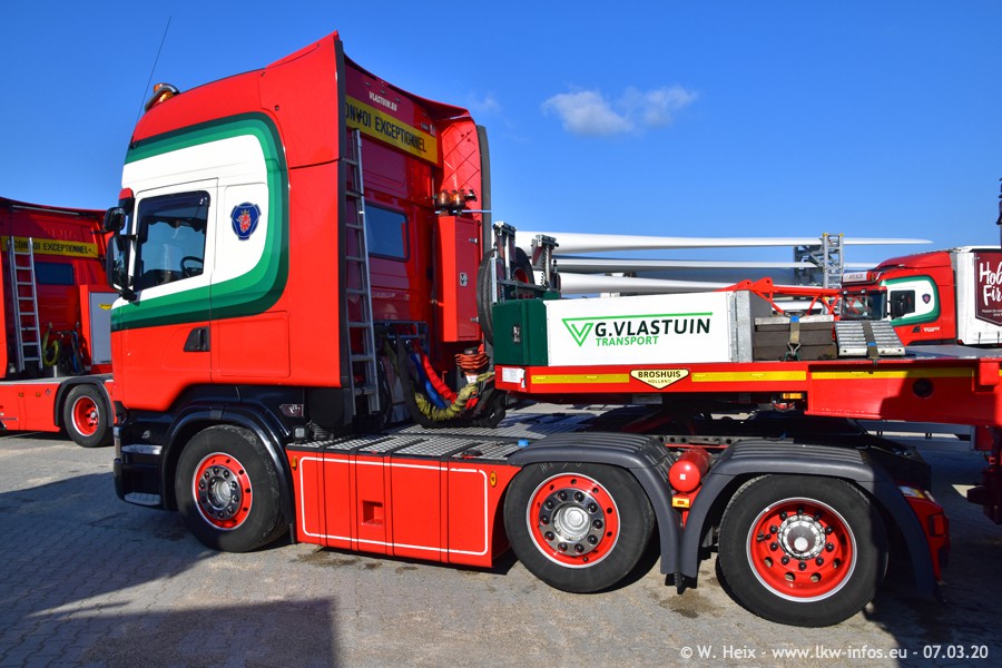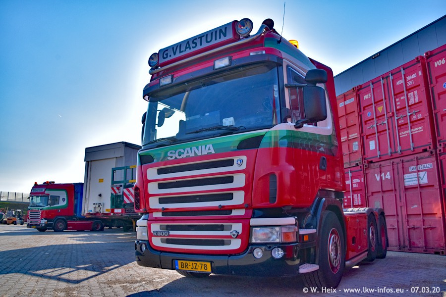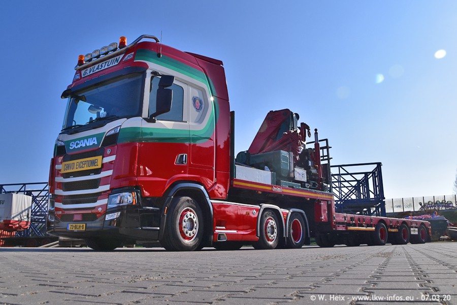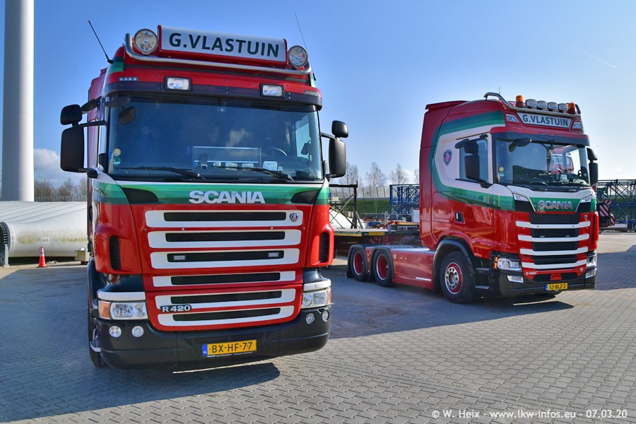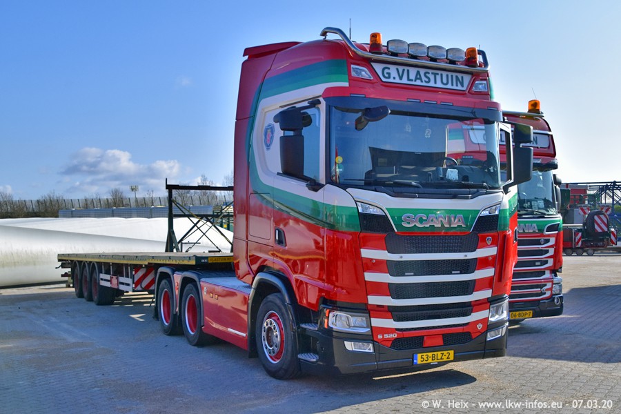 Ich war zwar erst vor vier Wochen bei G. Vlastuin. Aber dieser Besuch hatte einen Grund: der Mercedes-Benz Actros 4163 SLT war zuhause. Das ist der erste LKW und die erste Schwerlastzugmaschine von Mercedes-Benz im Fuhrpark von Vlastuin. Das Fahrzeug ist seit ca. Mitte 2019 im Einsatz. Diesmal war ein Teil der LKW nicht da, aber ich konnte nochmal von allen drei neuen SCANIA S NextGen schöne Fotos machen und auch vom "Rest". Auf dem neuen Gelände ist viel mehr Platz und somit kann man auch besser fotografieren.