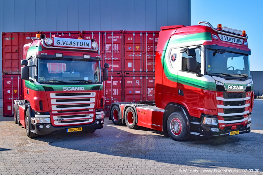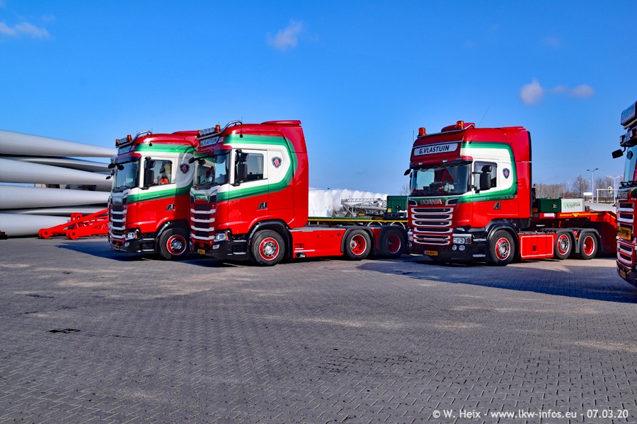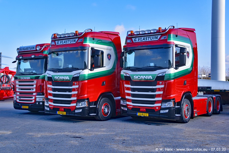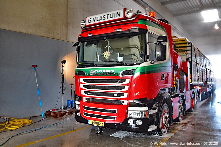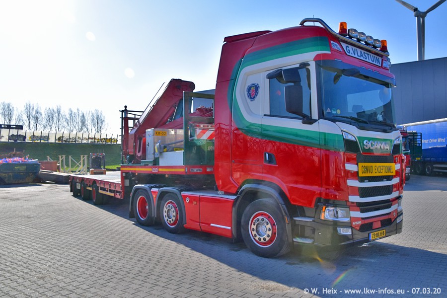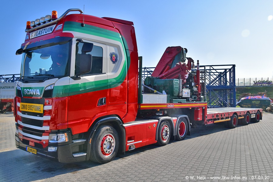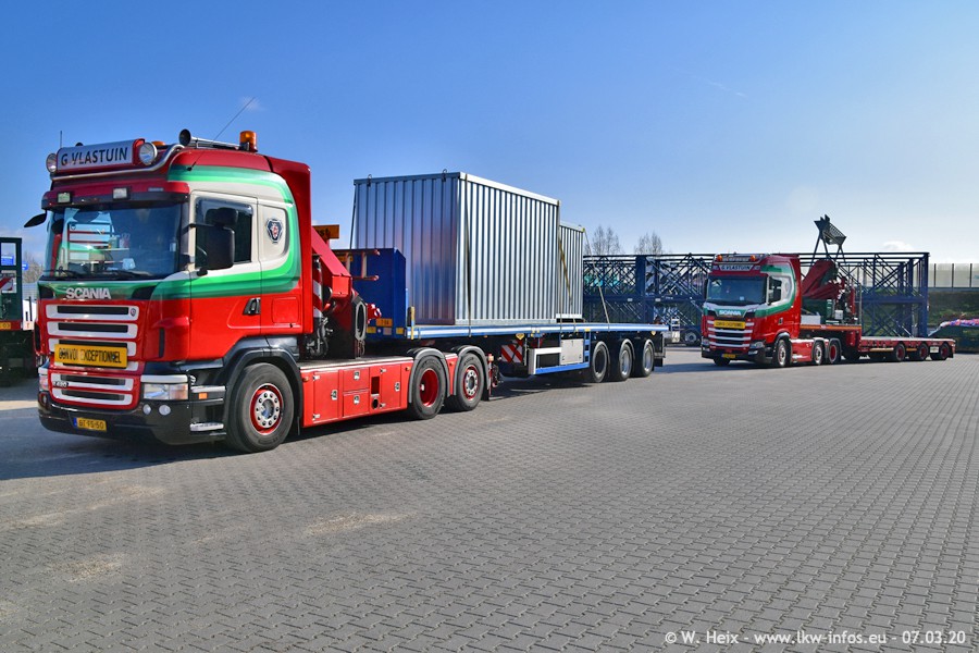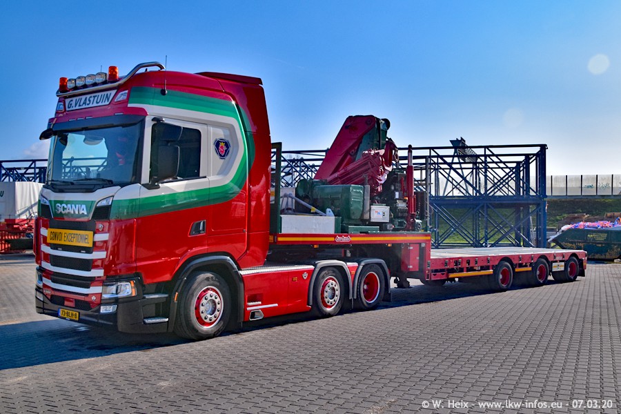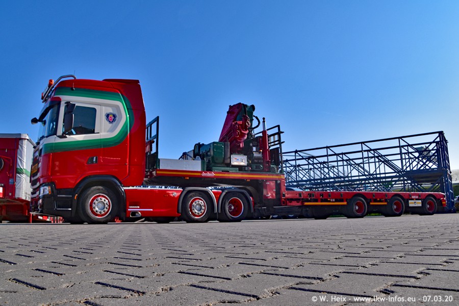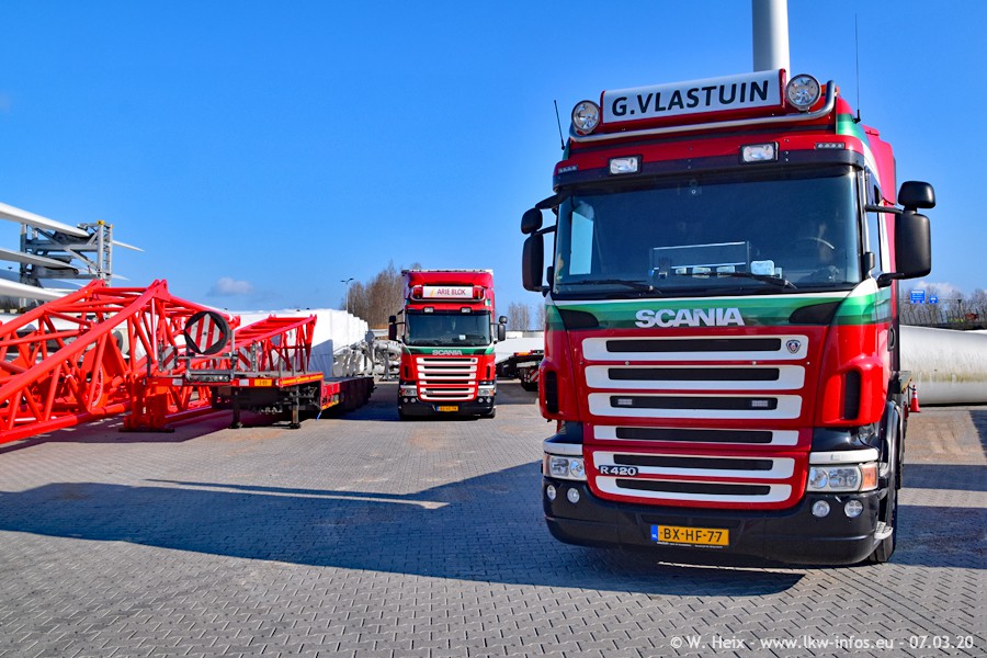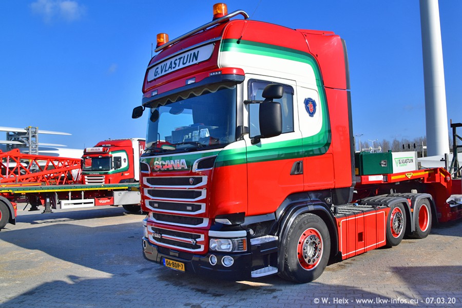 Ich war zwar erst vor vier Wochen bei G. Vlastuin. Aber dieser Besuch hatte einen Grund: der Mercedes-Benz Actros 4163 SLT war zuhause. Das ist der erste LKW und die erste Schwerlastzugmaschine von Mercedes-Benz im Fuhrpark von Vlastuin. Das Fahrzeug ist seit ca. Mitte 2019 im Einsatz. Diesmal war ein Teil der LKW nicht da, aber ich konnte nochmal von allen drei neuen SCANIA S NextGen schöne Fotos machen und auch vom "Rest". Auf dem neuen Gelände ist viel mehr Platz und somit kann man auch besser fotografieren.