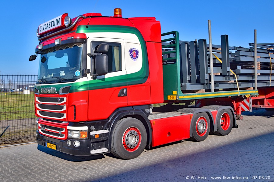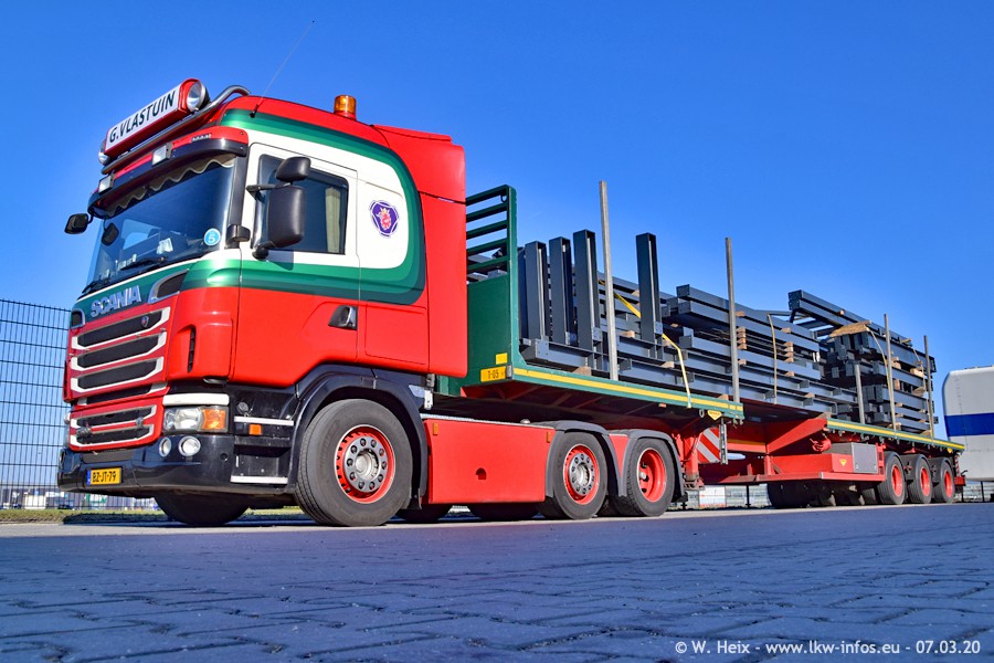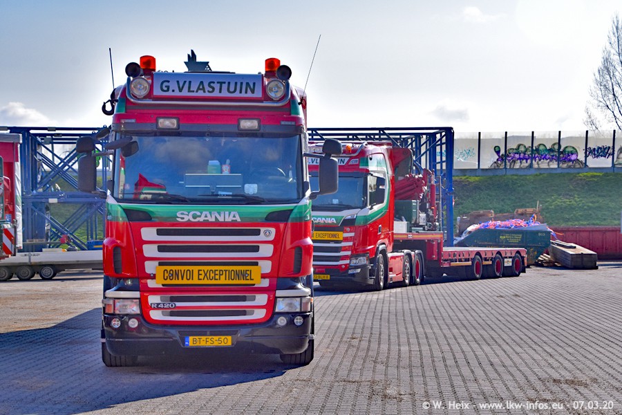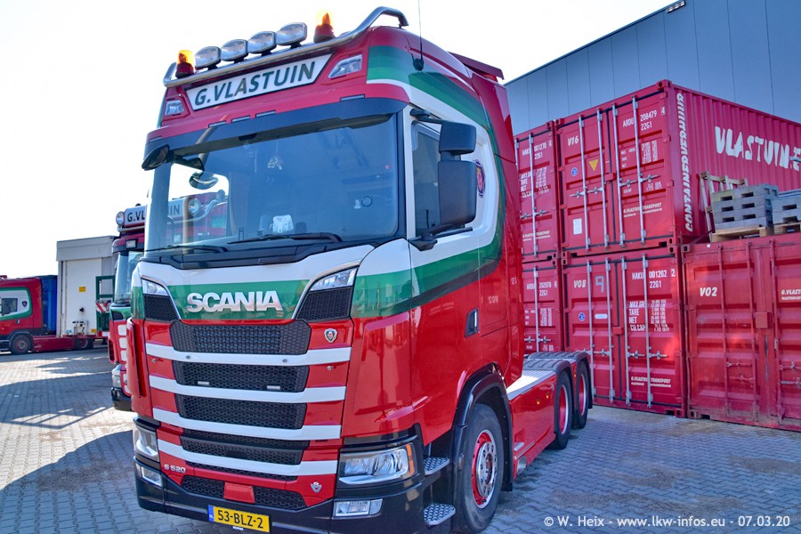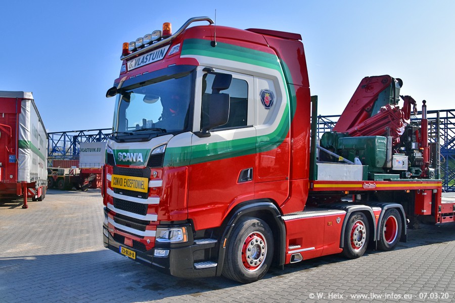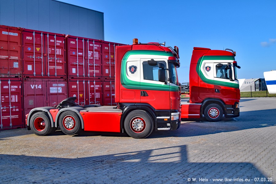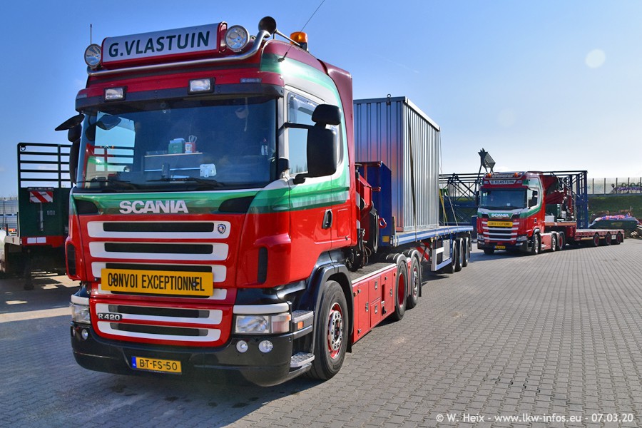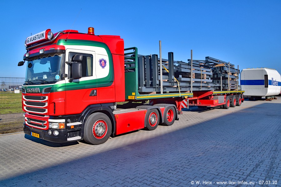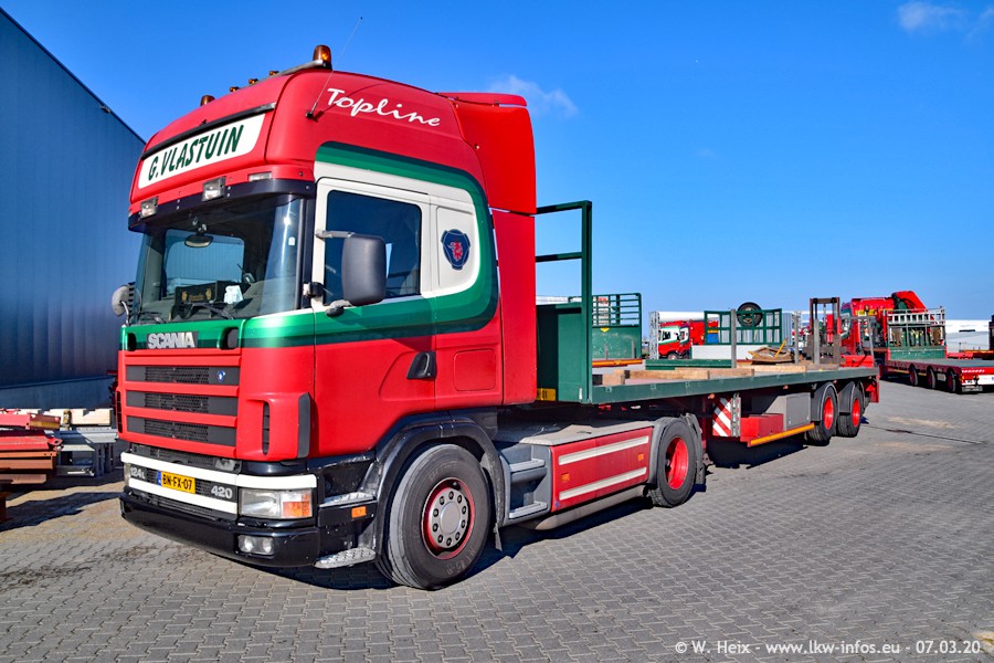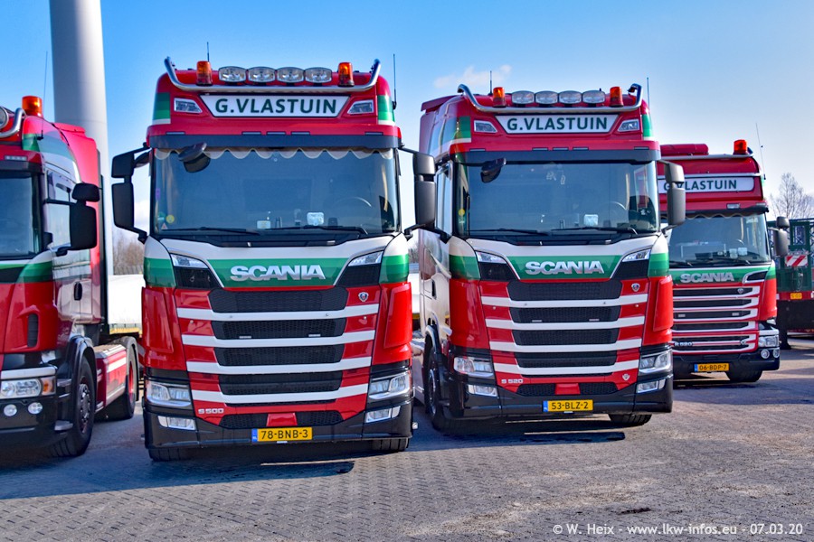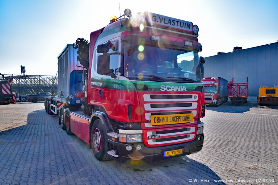 Ich war zwar erst vor vier Wochen bei G. Vlastuin. Aber dieser Besuch hatte einen Grund: der Mercedes-Benz Actros 4163 SLT war zuhause. Das ist der erste LKW und die erste Schwerlastzugmaschine von Mercedes-Benz im Fuhrpark von Vlastuin. Das Fahrzeug ist seit ca. Mitte 2019 im Einsatz. Diesmal war ein Teil der LKW nicht da, aber ich konnte nochmal von allen drei neuen SCANIA S NextGen schöne Fotos machen und auch vom "Rest". Auf dem neuen Gelände ist viel mehr Platz und somit kann man auch besser fotografieren.