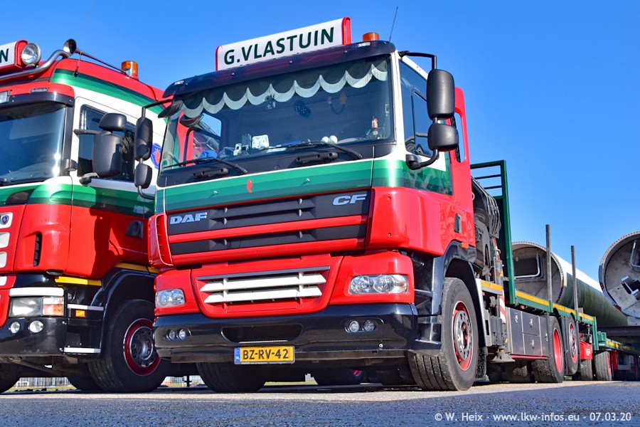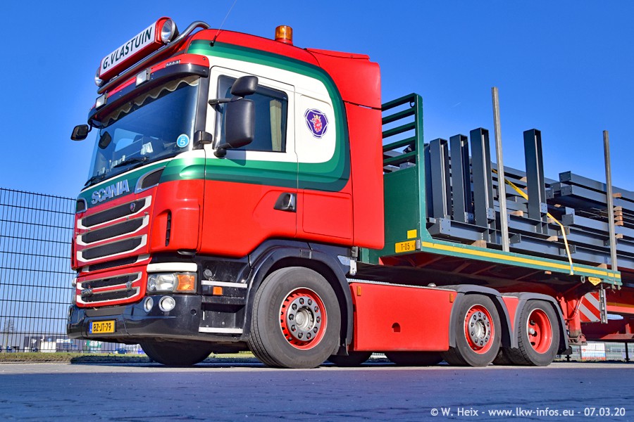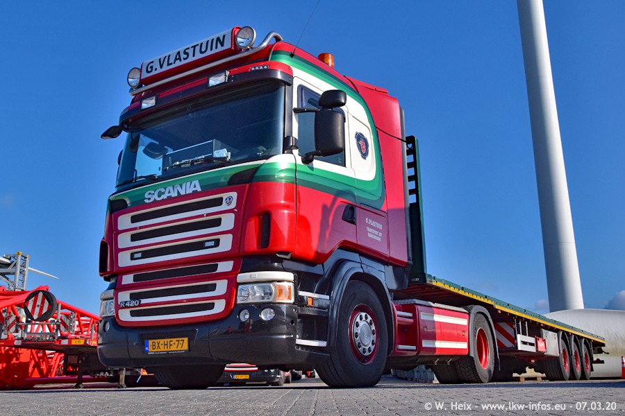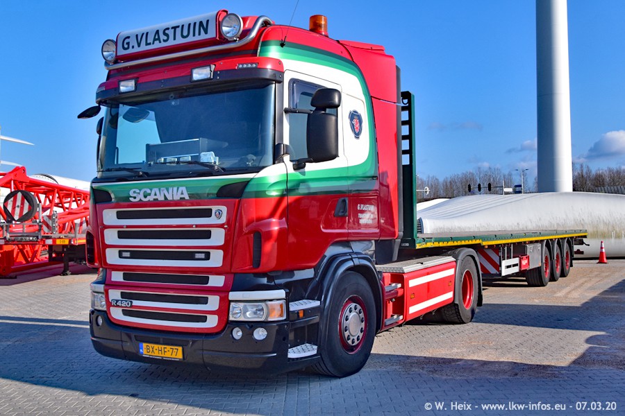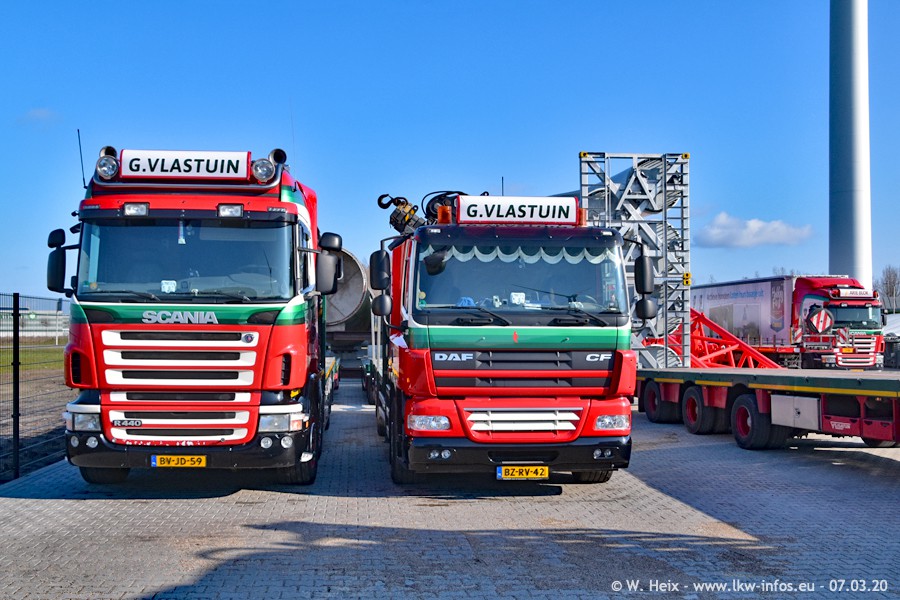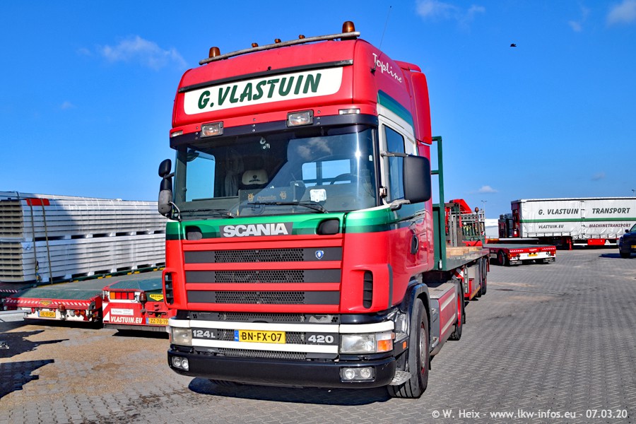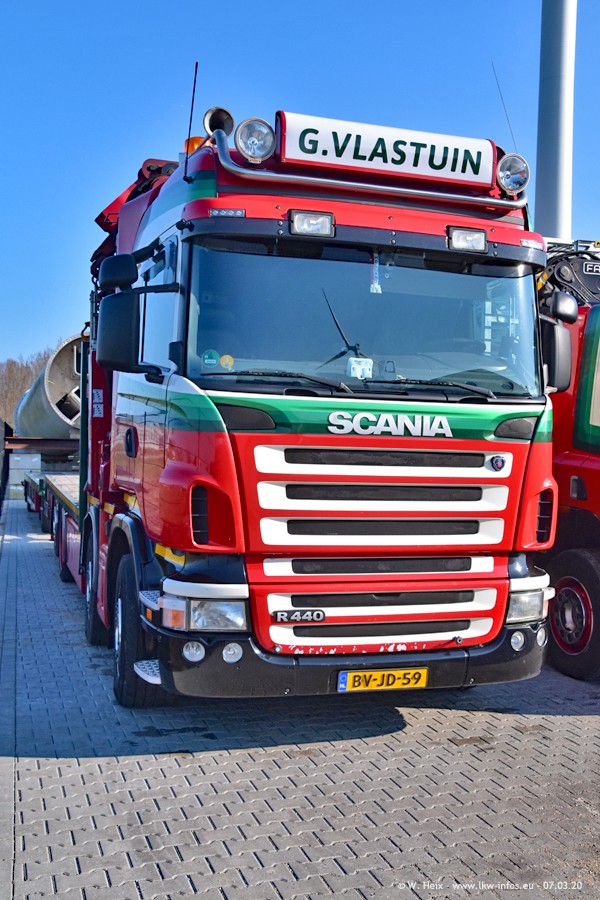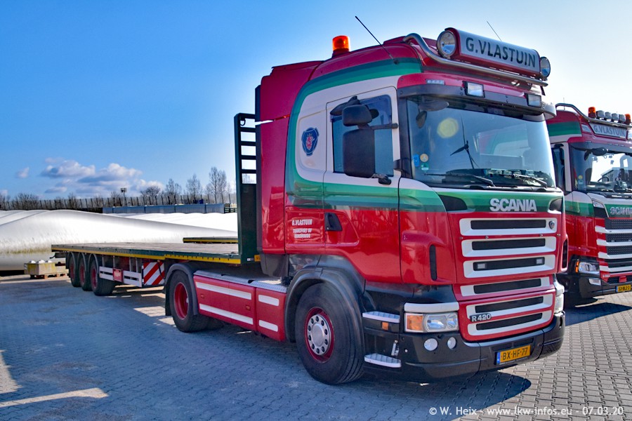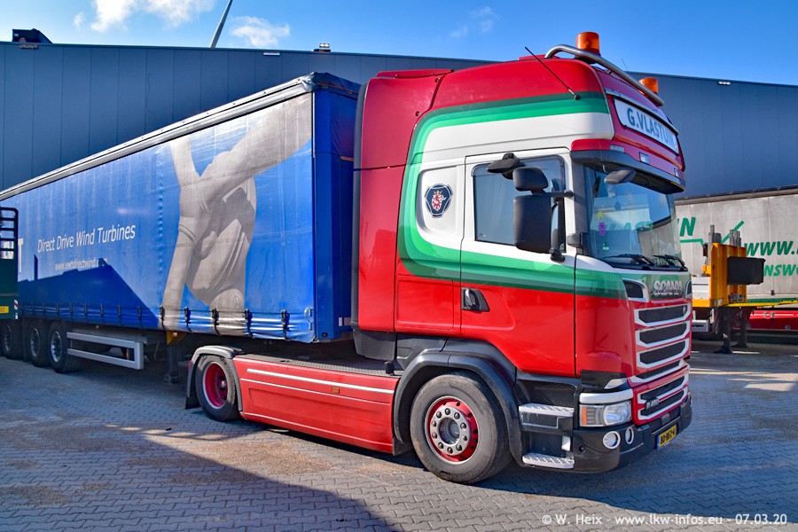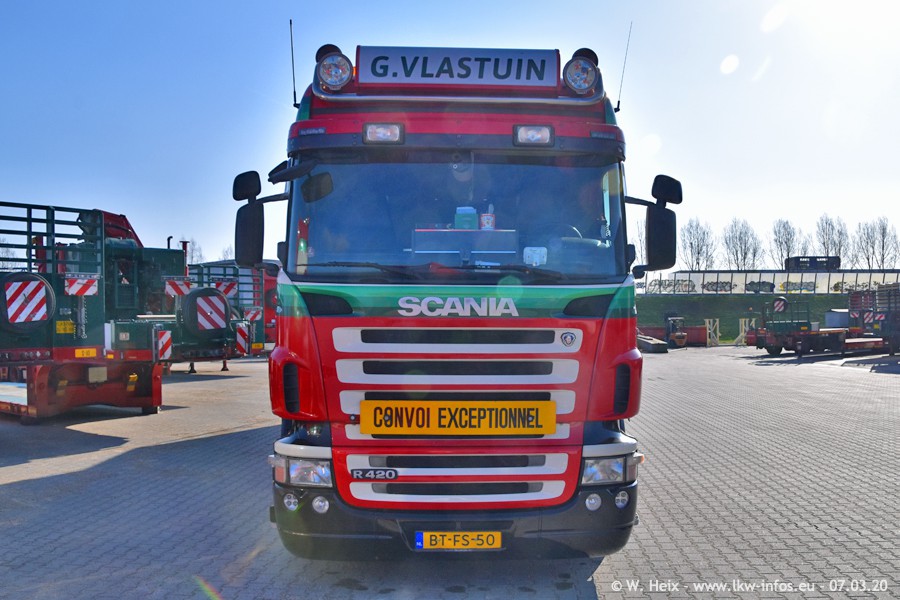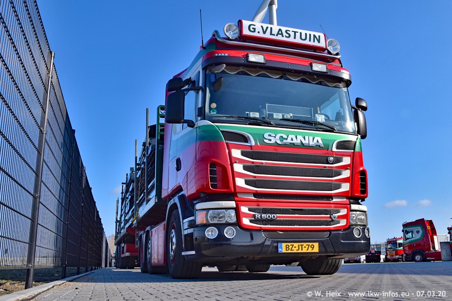Ich war zwar erst vor vier Wochen bei G. Vlastuin. Aber dieser Besuch hatte einen Grund: der Mercedes-Benz Actros 4163 SLT war zuhause. Das ist der erste LKW und die erste Schwerlastzugmaschine von Mercedes-Benz im Fuhrpark von Vlastuin. Das Fahrzeug ist seit ca. Mitte 2019 im Einsatz. Diesmal war ein Teil der LKW nicht da, aber ich konnte nochmal von allen drei neuen SCANIA S NextGen schöne Fotos machen und auch vom "Rest". Auf dem neuen Gelände ist viel mehr Platz und somit kann man auch besser fotografieren.